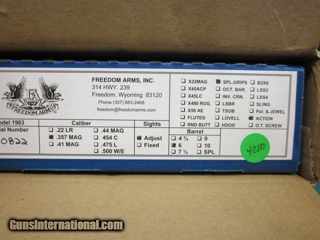 Freedom Arms Model 83 Premier .357 mag. 6" New in box