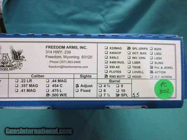 Description: Freedom Arms Model 83 premier .500 Wyoming with custom length 5 1/2" barrel, Round butt grip with black micarta grips, Factory action job with 3lb trigger, Hammer and trigger are polished and jewelled,. has fired 10 rds. 100 % like new with full factory warranty. Small amount of ammo available to purchaser .ADD 3% for credit cards,shipping is 35.00. 260 409 9828 SOLD |