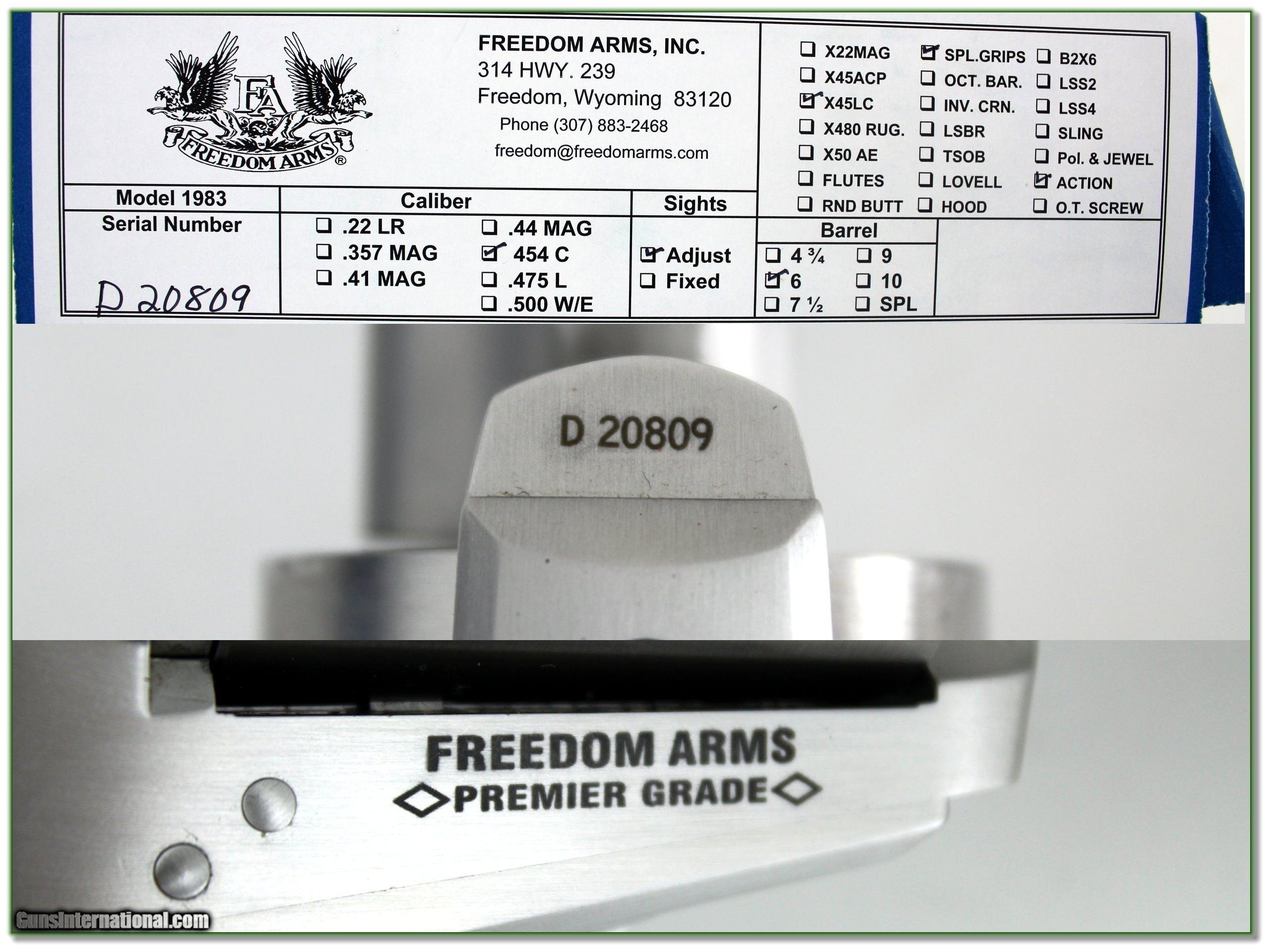 Freedom Arms Model 83 Premier Grade 6in 454 Casull and 45LC in box!