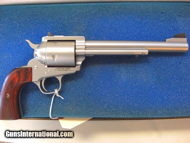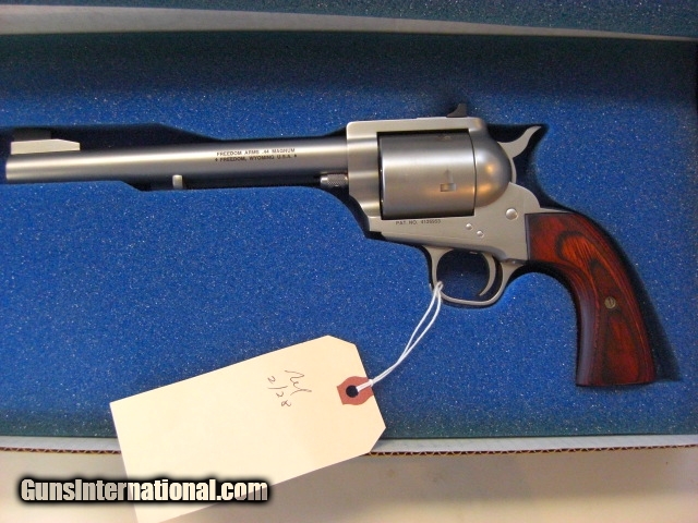 Description: Freedom Arms Model 83. New in Blue factory box with all manuals and paperwork. NIB/Unfired with 7.5" bbl, with non fluted cylinder.Stainless steel in 44 mag caliber. FFxx52. Shipping (min of 35) and insurance and 3% cc fee. Dealer to dealer transfer. 2095. Have same gun in 454 Casull. 2195. SOLD |
