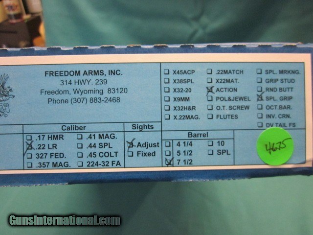 Freedom Arms Model 97 Premier .22LR 7 1/2" New in box