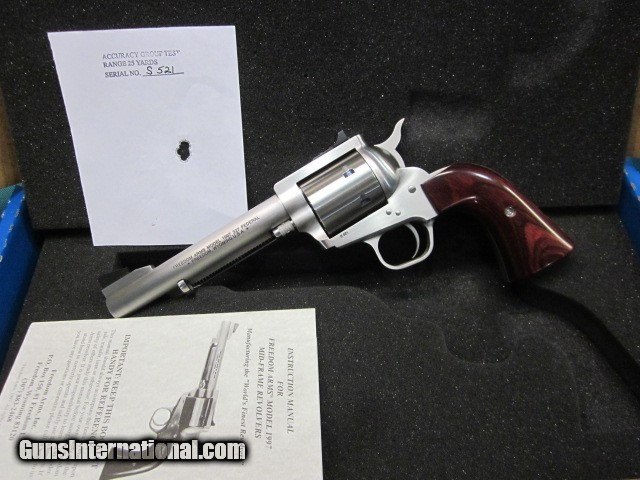 Description: Freedom Arms Model 97 Premier .327 Federal with 5 1/2" barrel,winewood grips, factory action job with 3lb trigger. 100% new in box with full factory warranty.ADD 3% for credit cards, shipping is 35.00 , 260 409 9828 SOLD |