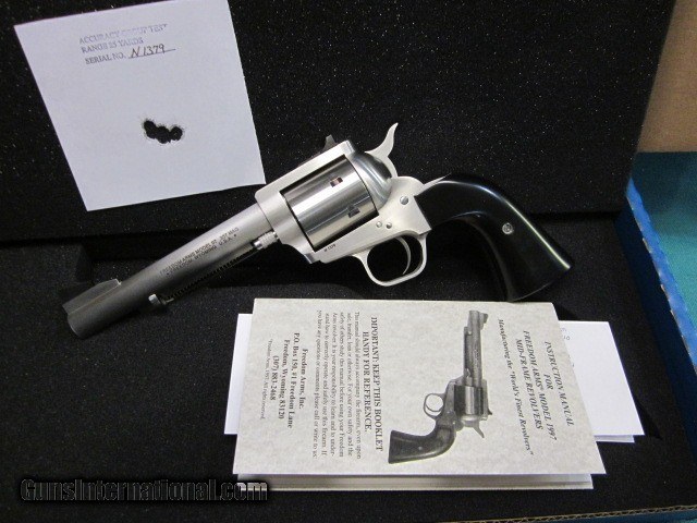 Description: Freedom Arms Model 97 Premier .357 Mag. with 5 1/2" Barrel, Black Micarta grips, factory action job with 3lb trigger.100% new in box with full factory warranty.ADD 3% for credit cards,shipping is 35.00. 260 409 9828 SOLD |