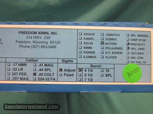 Freedom Arms Model 97 Premier .45LC. ROUND butt 4 1/4" New in box evergreen grips,express sights