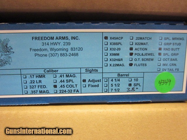 Freedom Arms Model 97 Premier DUAL cylinder .45LC/.45acp 3 1/2"