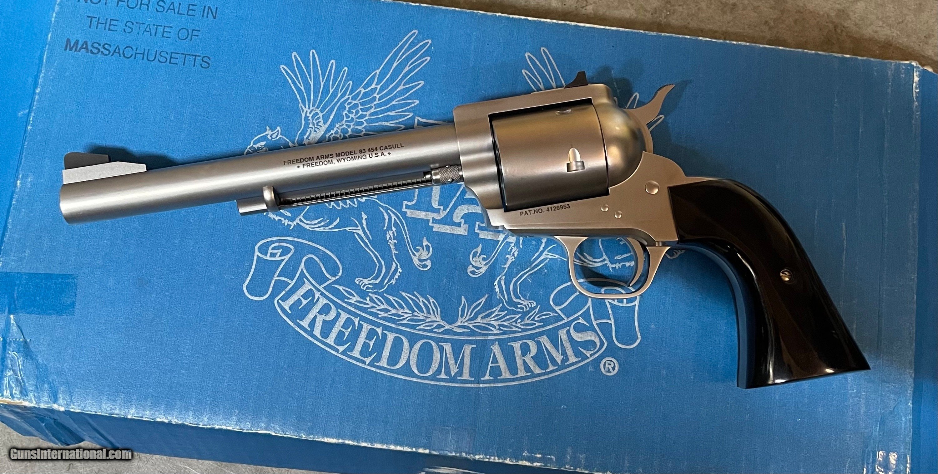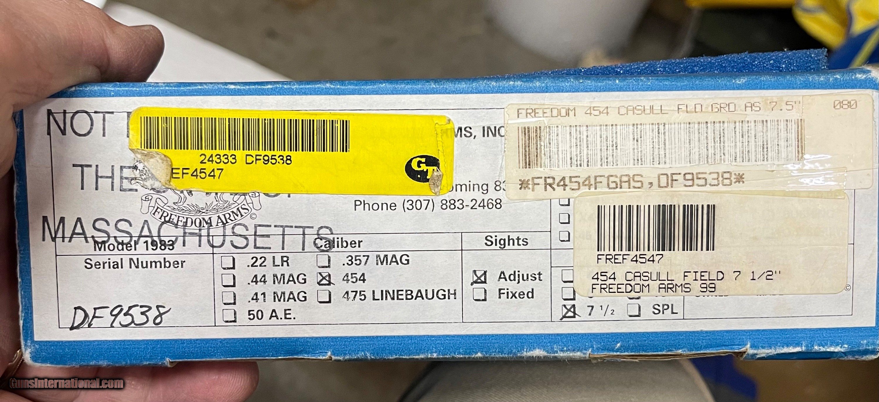 Description: One of the finest single action revolvers ever made! This freedom arms is unfired in the original box. 7 1/2 inch barrel, stainless steel, fixed sights, field grade. Comes with a custom set of black bull horn grips. Also comes with papers and barrel lock. Please email with questions. Shipping and insurance included (west coast add $75). Venmo and cash app accepted. SOLD Manufacturer: Freedom Arms Model: 83 Barrel Length: 7.5 inch Condition: LNIB Metal Condition: Excellent Bore Condition: Excellent Action: SA Finish: Stainless Sights: Fixed Manufacture Date: 2006 Case: Yes Item Location: 37075 |