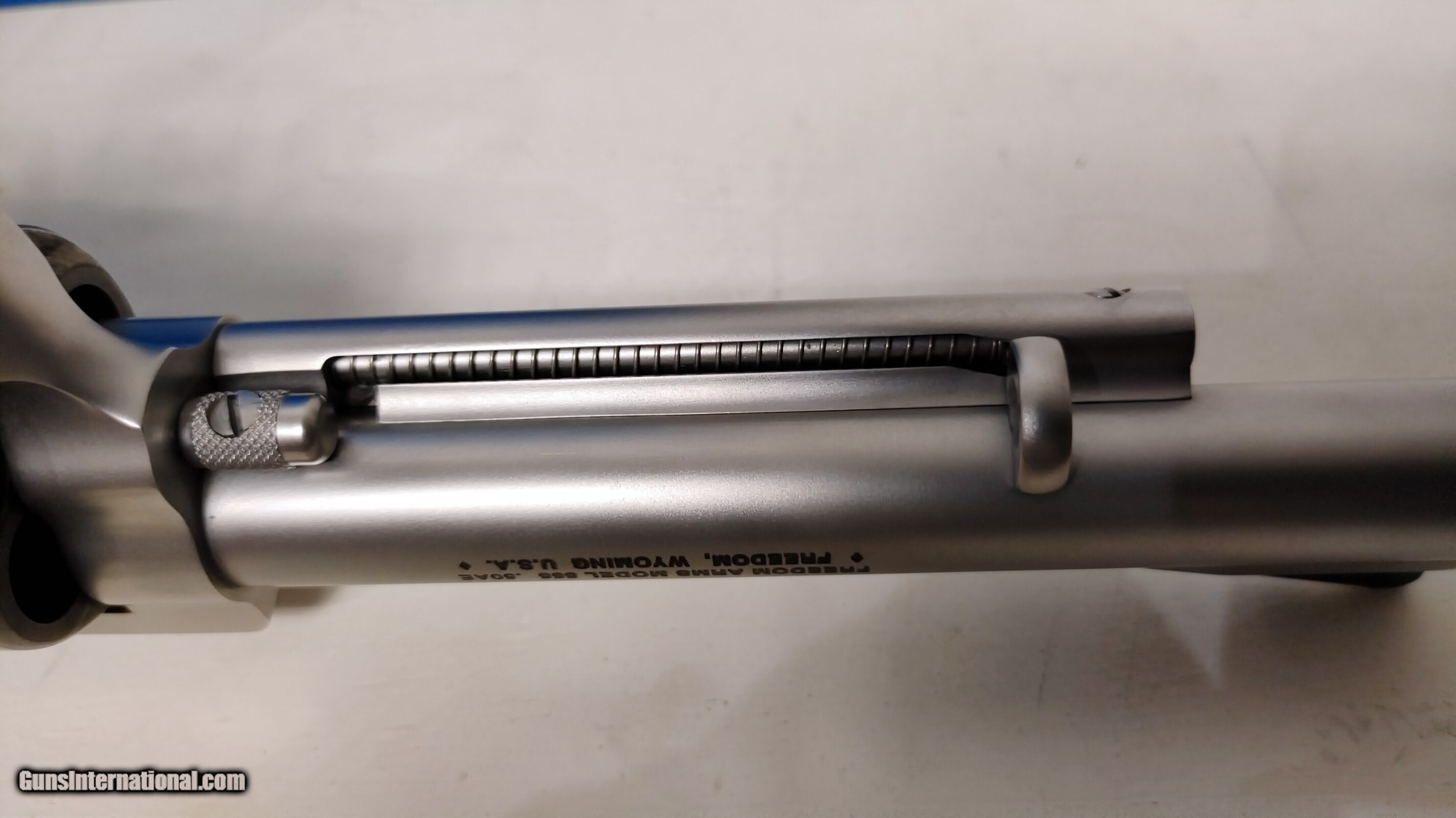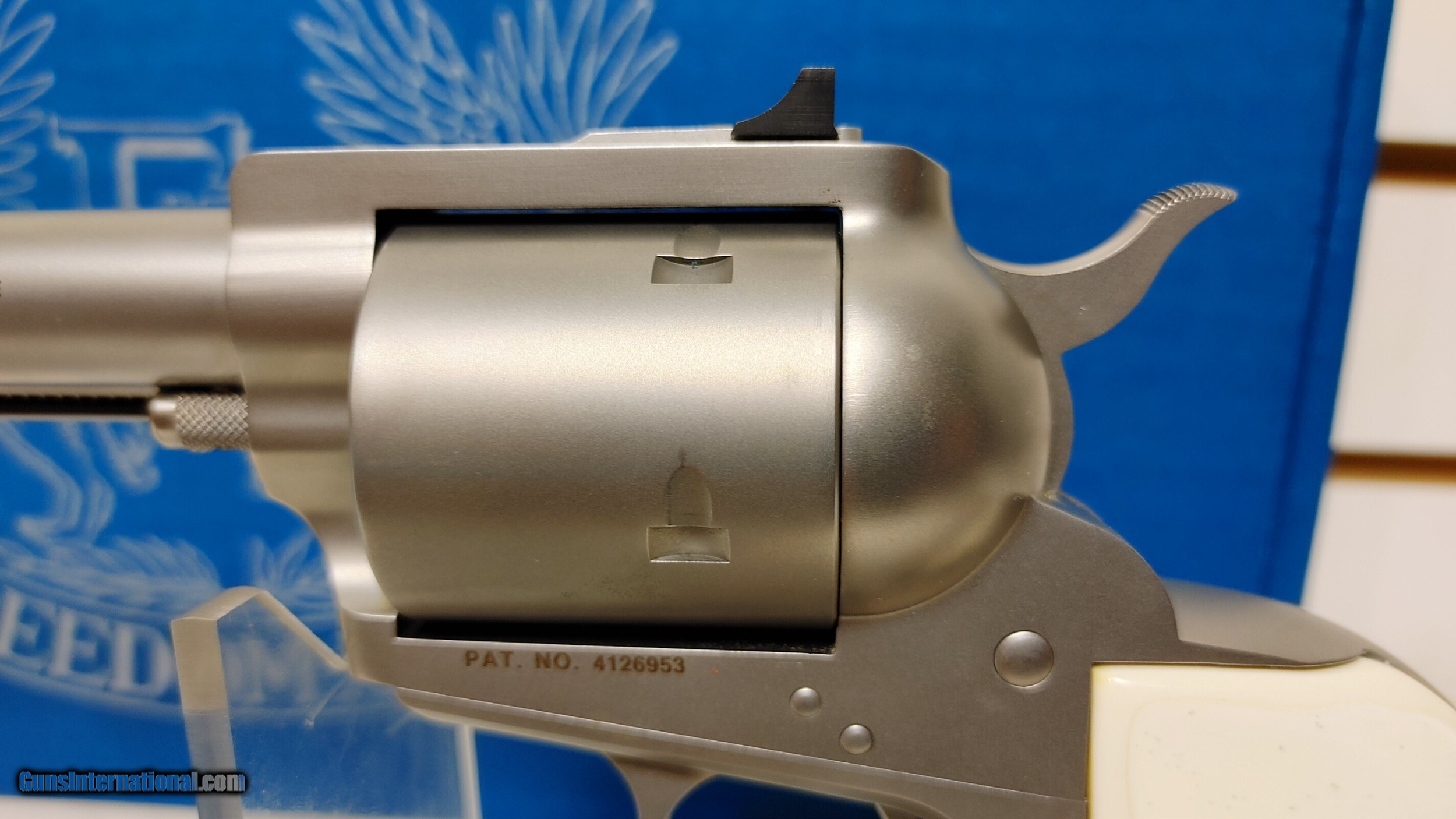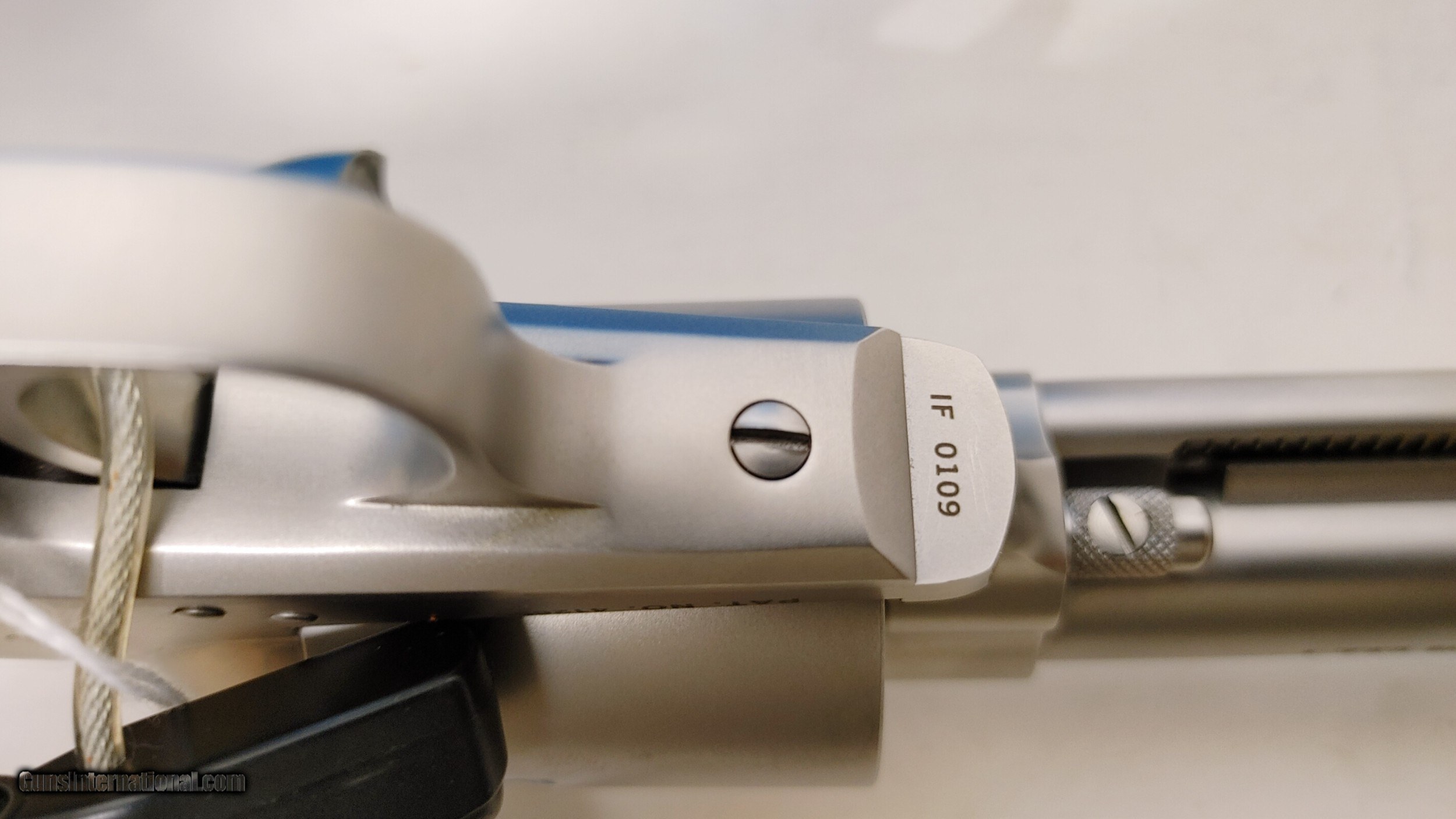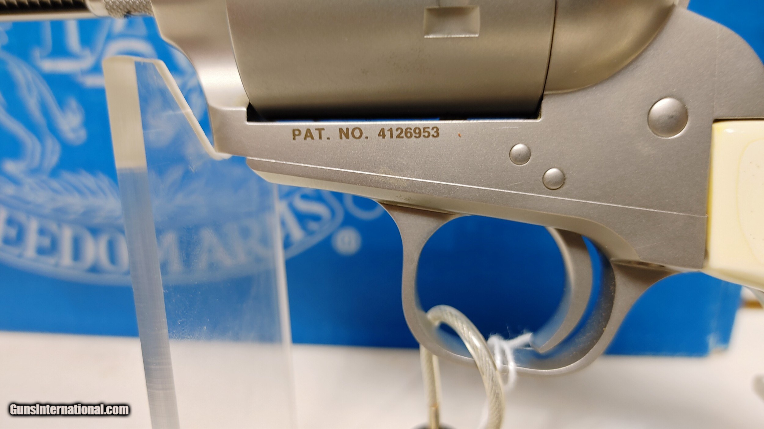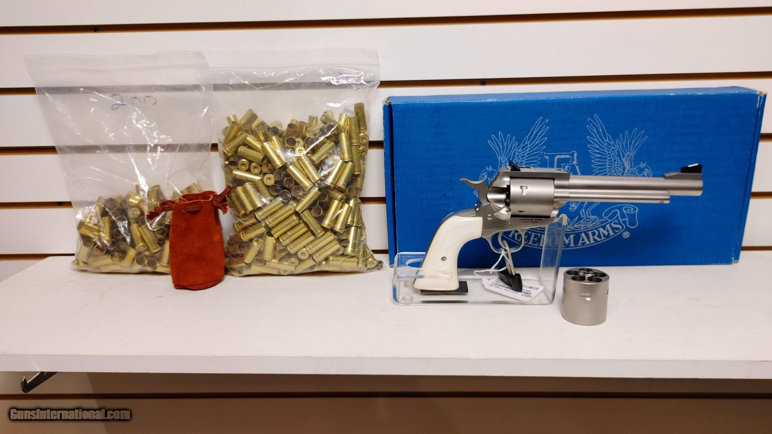 Description: Lightly Used Freedom Arms Revolver 6" barrel convertable 2 cylinders 1 5 shot 50 AE 1 5 shot 500 Wyoming Express with 450 brass cartridges leather pouch original box very good condition Buyer pays shipping Millers Gun Center Located in New Castle, Delaware "Home of TAX-Free shopping" No Credit Card Fees SOLD Serial Number: 1F0109 |