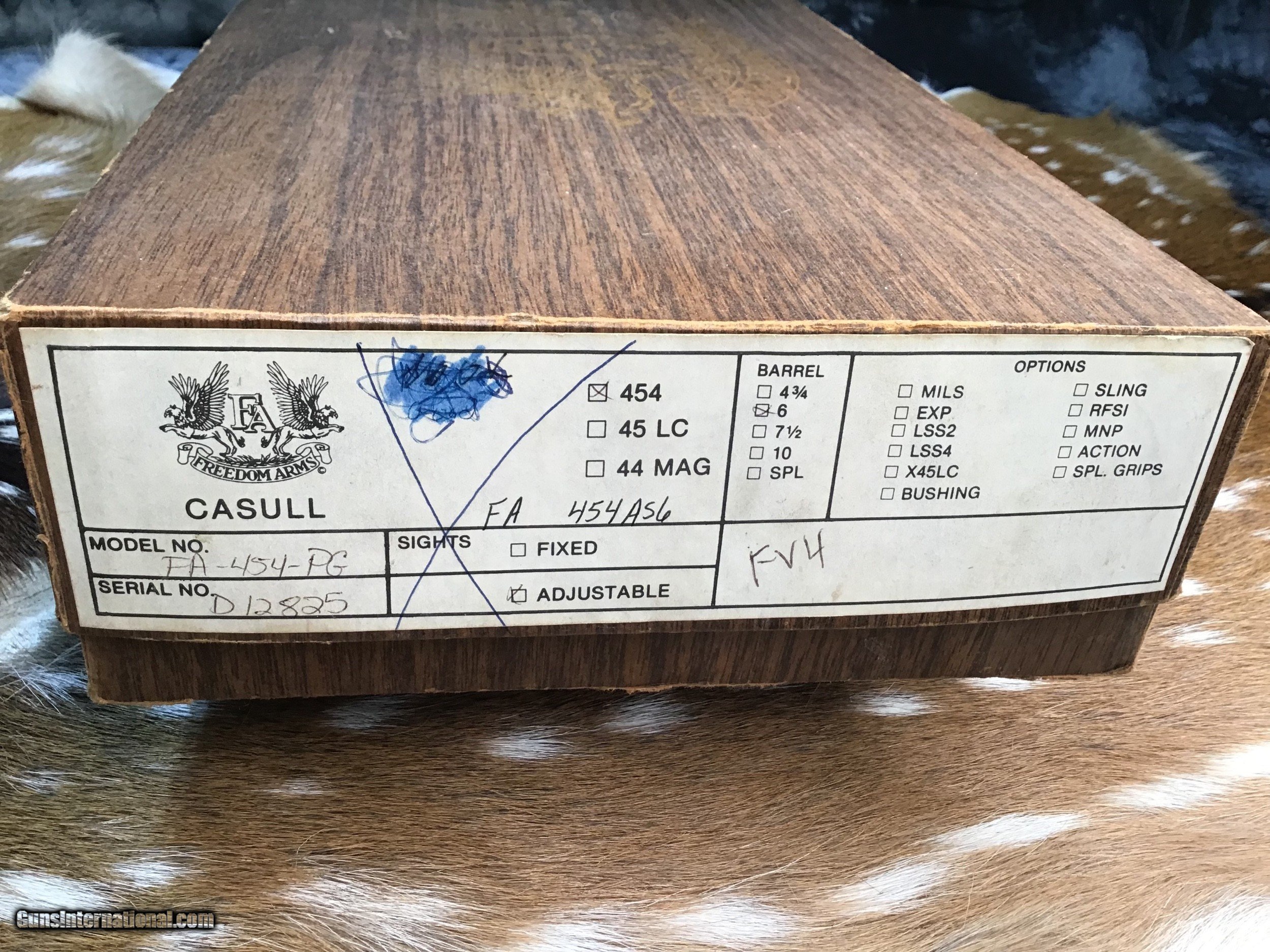LNIB Freedom Arms 454 Casull Revolver , 6 inch Stainless, Early Model W/Box & Papers