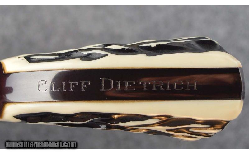 Description: Great Western Arms CO. .357 Atomic frontier six shooter Cliff Dietrich edition. Have matching gun with sequential serial number SOLD Curio/Relic: Yes Manufacturer: Pre 1958 Caliber Info: .357 Atomic Metal Condition: Great condition few minor marks Bore Condition: Strong rifling Barrels: 5.5 Triggers: SA Stock: Faux stag grips Weight: 37 oz Sights: Blade front rear inletted groove Extras: None Item Location: Sidney, NE |