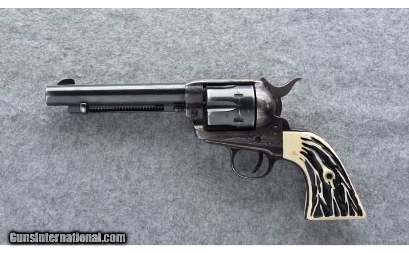 Description: Great Western Arms Company's Frontier Six Shooter .22 Caliber. The Great Western Arms Company was founded in the mid-'50s in Los Angeles, and produced good quality, Old West-oriented revolvers and derringers for about a decade. Hey, if they were good enough to catch the eyes of "The Duke" and Audie Murphy maybe you should give this one a spin. SOLD Caliber Info: .22 Caliber Metal Condition: Shows very good factory finish with light handling marks. Cylinder is stamped with the last for digits of the serial number. Bore Condition: Clean with sharp lands. Barrels: 5 1/2 Weight: 44 oz. Item Location: Post Falls, ID |