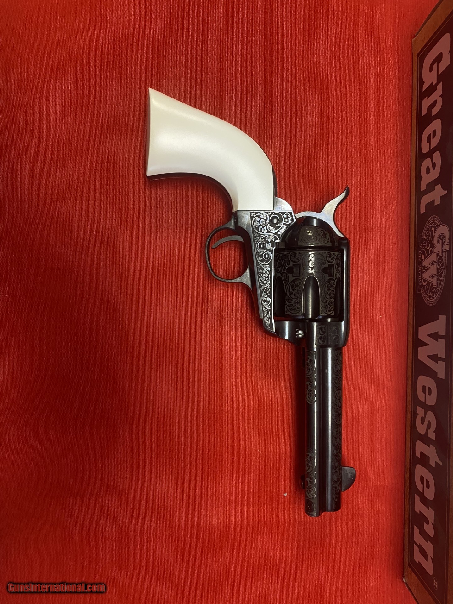 Description: Guns Listing ID: 1311572 FACTORY BOX IN GOOD CONDITION ENGRAVED WITH IVORY WHITE GRIPS SOLD Manufacturer: GREAT WESTERN ARMS CO. Model: THE SHOOTIST Caliber Info: .45 COLT Condition: Used - Non-Certified Barrels: 4.75 BARREL Finish: BLACK |