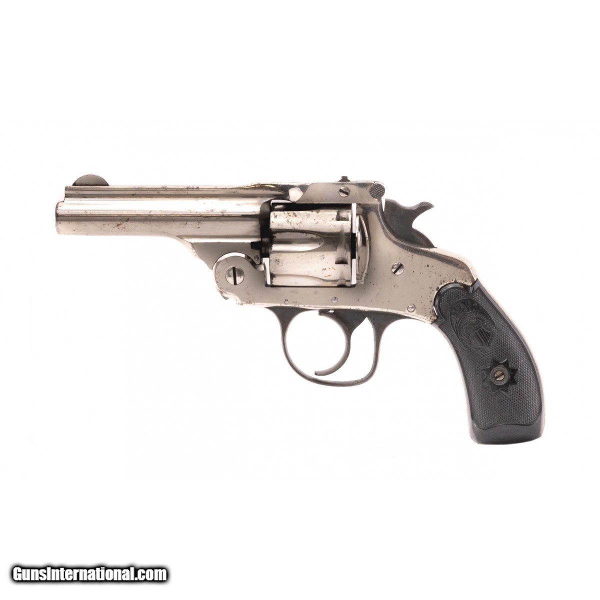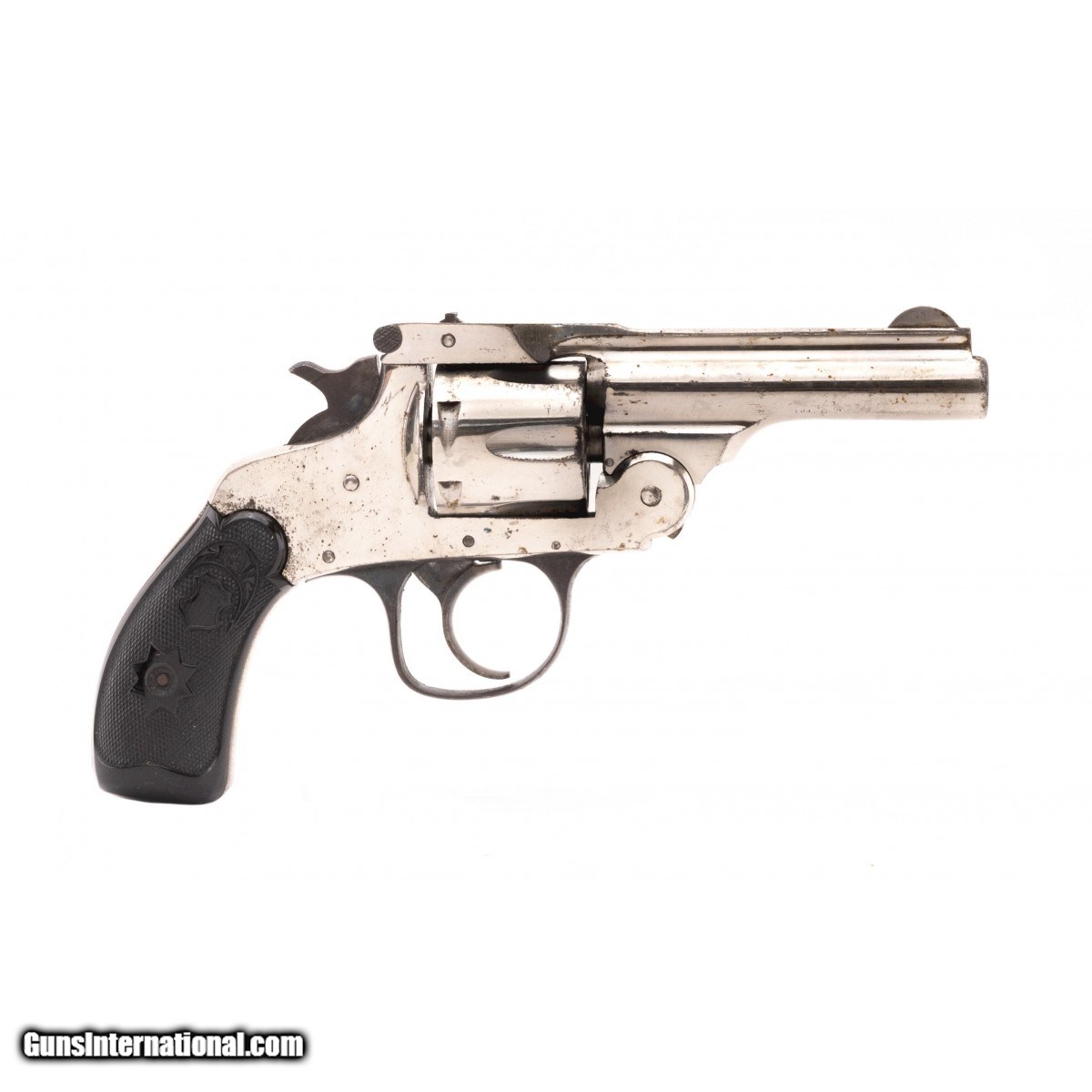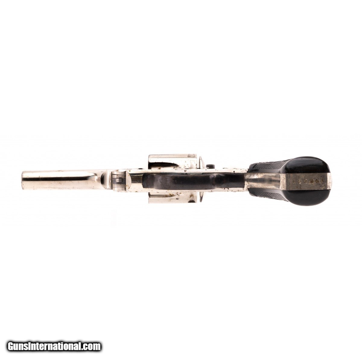 Description: " SN: 192343. This Forehand Arms Company double action .32S&W revolver is in its rare original box. The end label reads from top to bottom ""AUTOMATIC EXTRACTING"" over FOREHAND ARMS COMPANY over DOUBLE 32 ACTION over NICKEL AND RUBBER. The revolver matches the box. It has a 3.25"" round barrel with top rib. The bore is good with firing erosion in the grooves. The top rib is marked FOREHAND ARMS CO WORCESTER MASS USA over PAT'D DEC. 7.86 & JAN'11'87. Approx. 95% of the original nickel finish remains with areas of light spotting and edge wear. The hard rubber F&W grips are excellent with no chips or cracks. The action functions correctly. The box is in good condition with repairs to the bottom corners and the center inside of one side of the top. This is a very nice looking Forehand Arms Company revolver with its original box. SOLD |