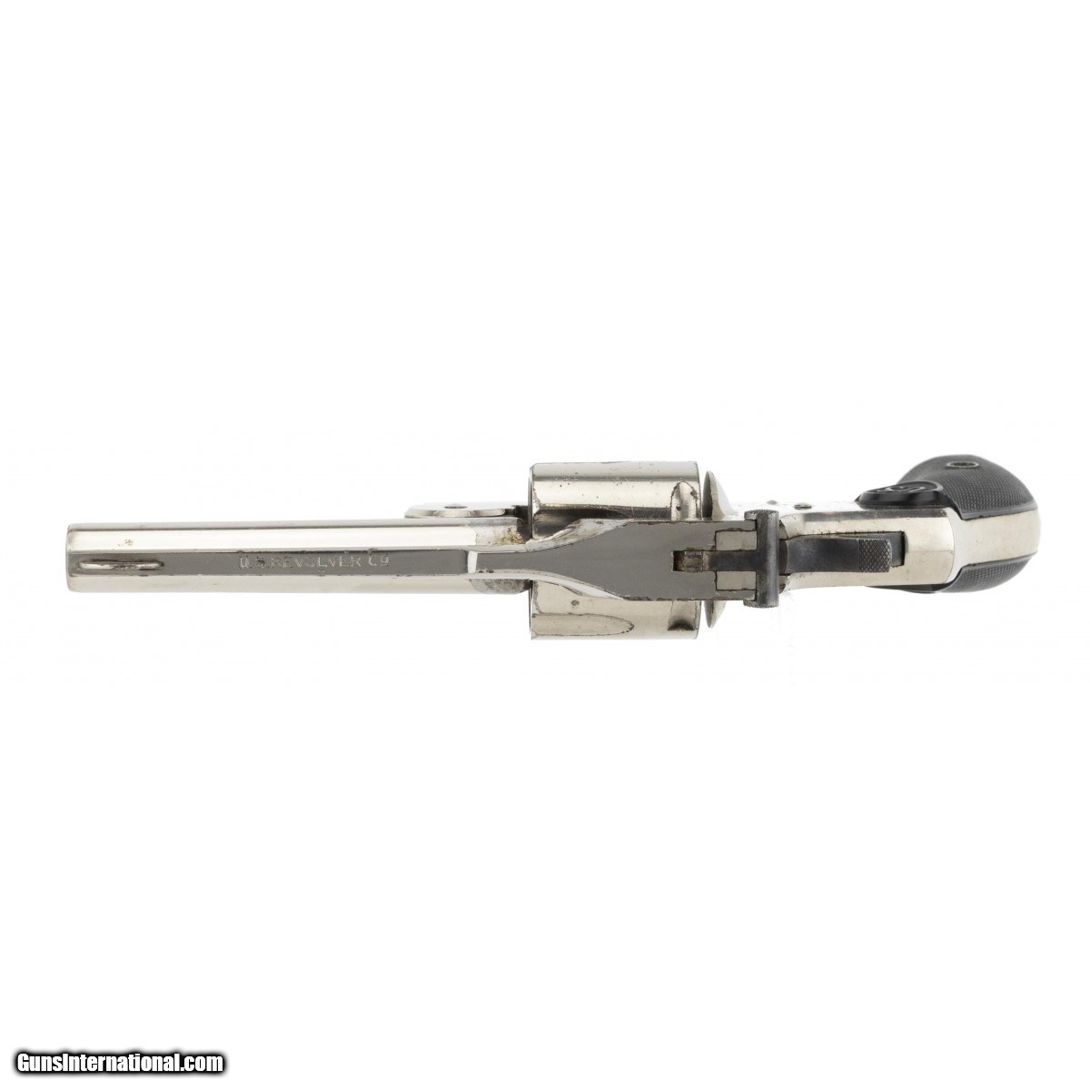 Description: " Very nice U.S. Revolver Co. Top Break .38 double action revolver. The top barrel rib is marked ""U.S. Revolver Co."" The 3 1/4"" barrel has a very good bore. Approximately 90% of the nickel finish is remaining. The grips are checkered with ""U.S."" at the top. They are very fine with no chips or cracks. They cylinder is five shot. The action functions correctly. Case colors are visible on the hammer and trigger. This a nice example. SOLD |