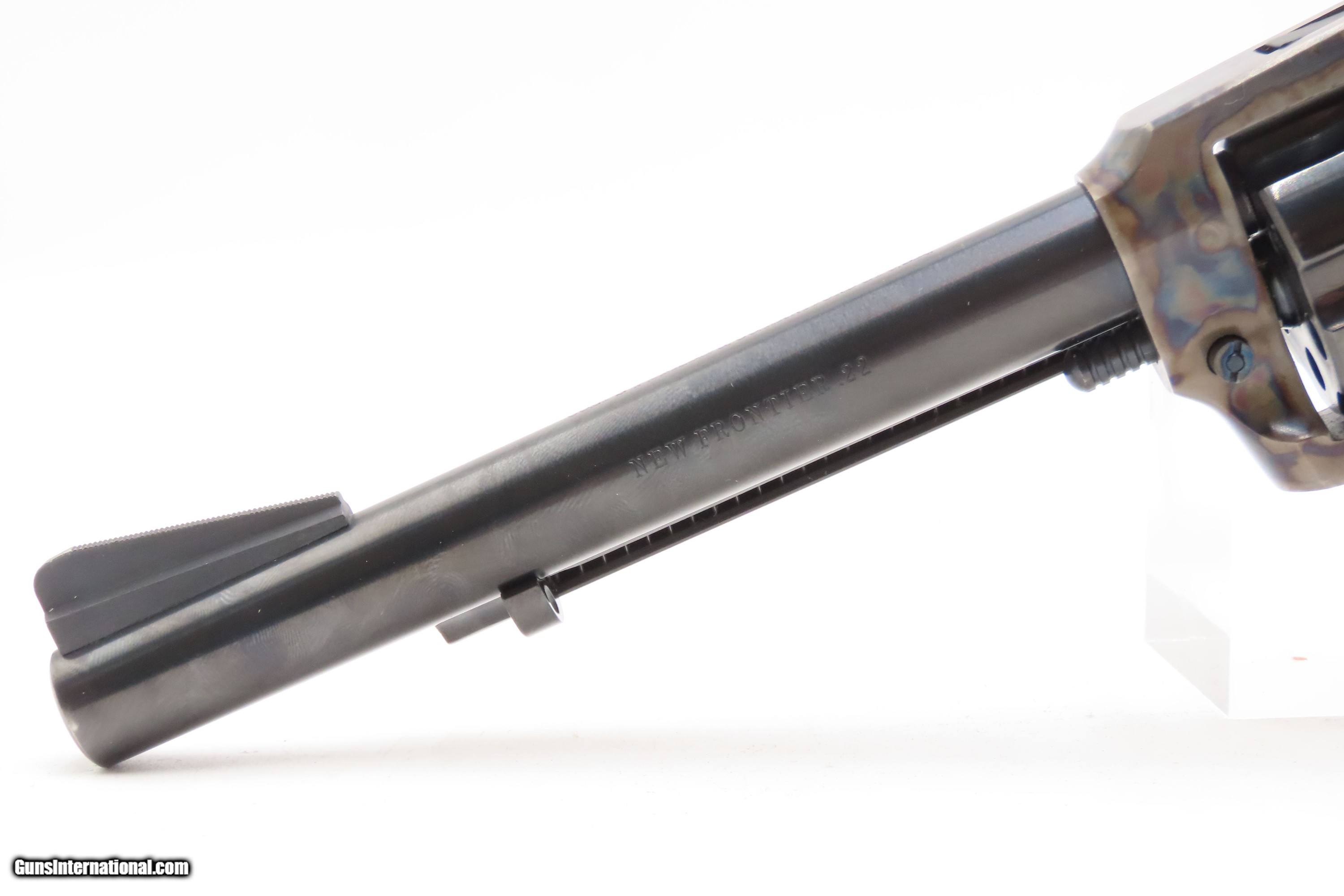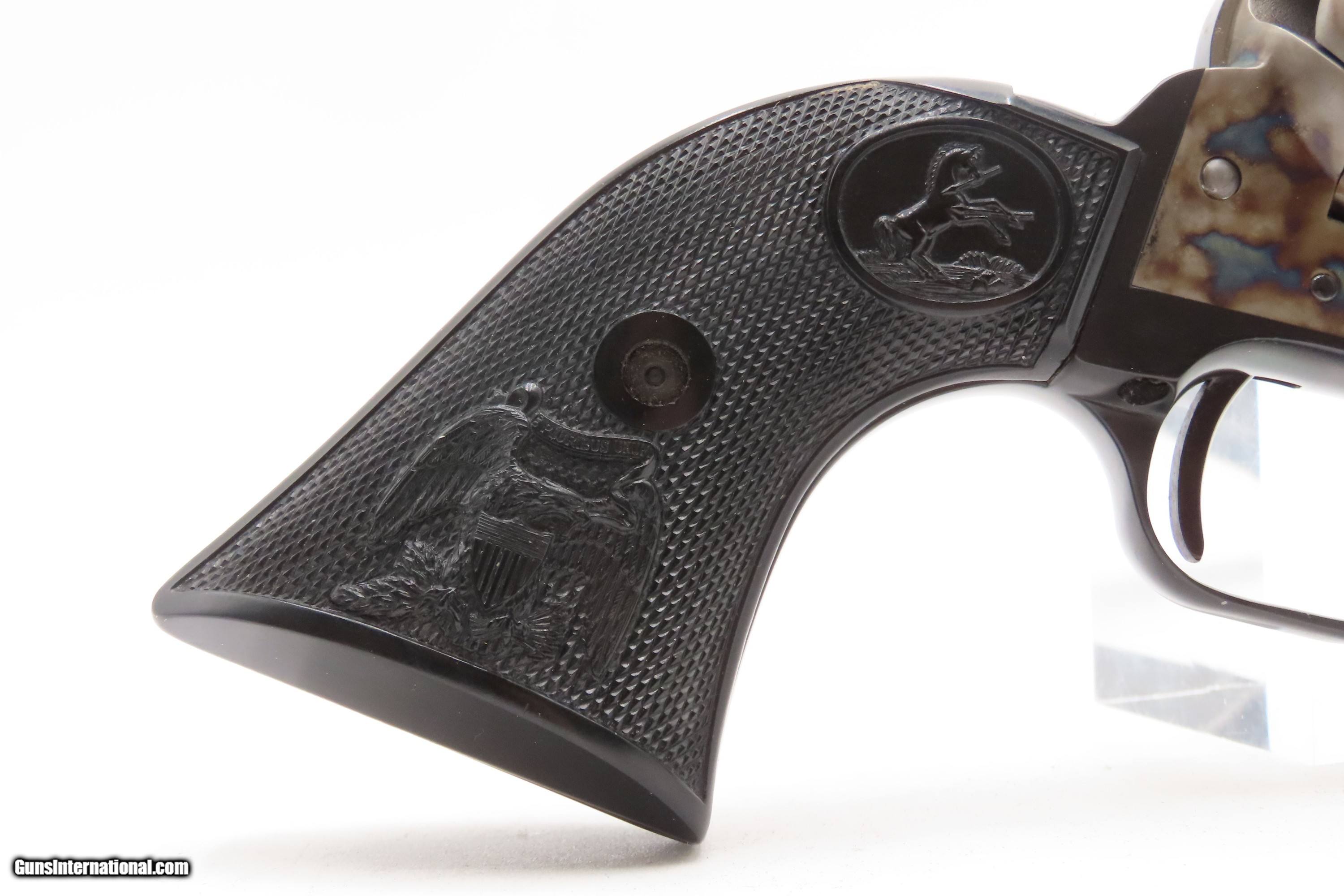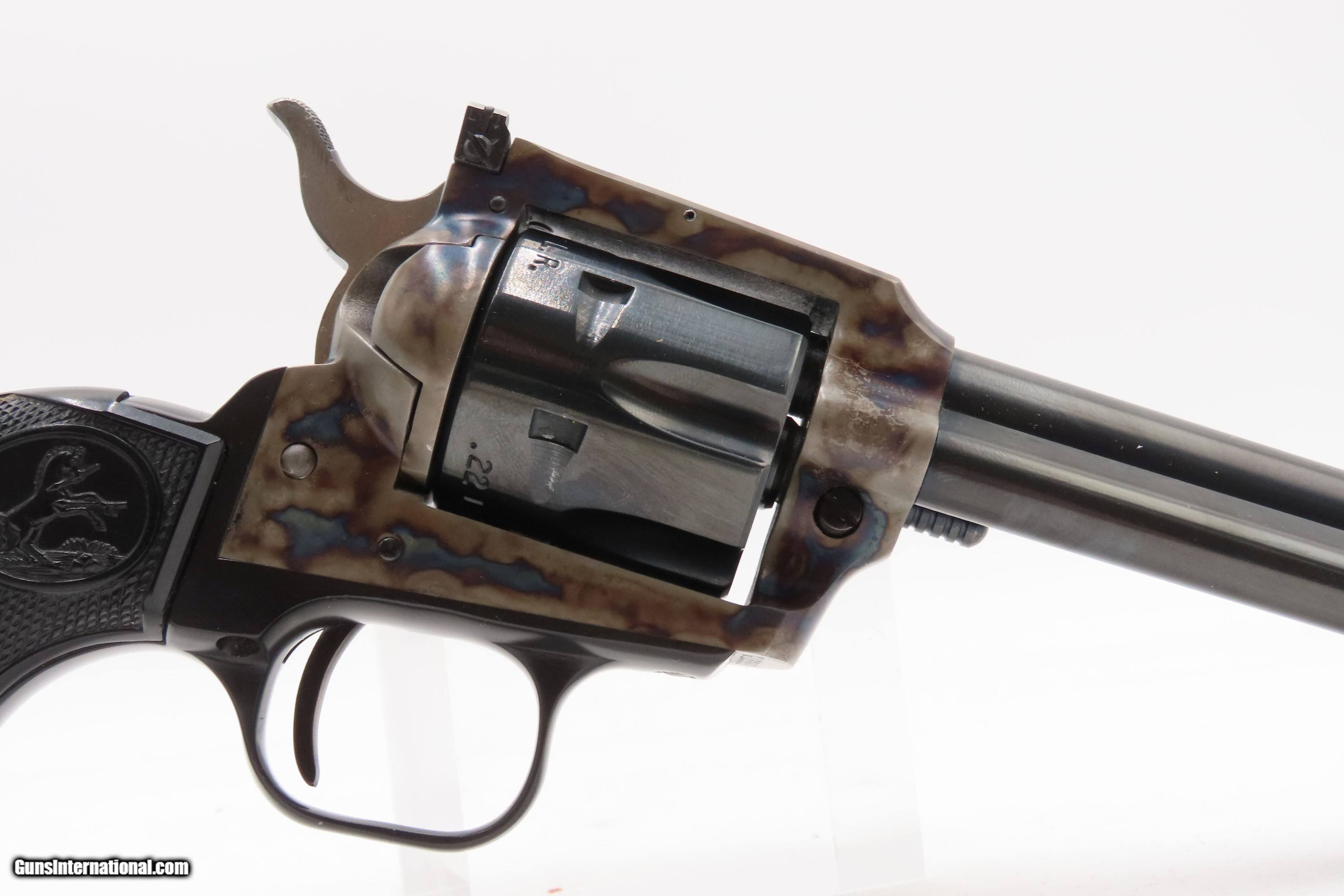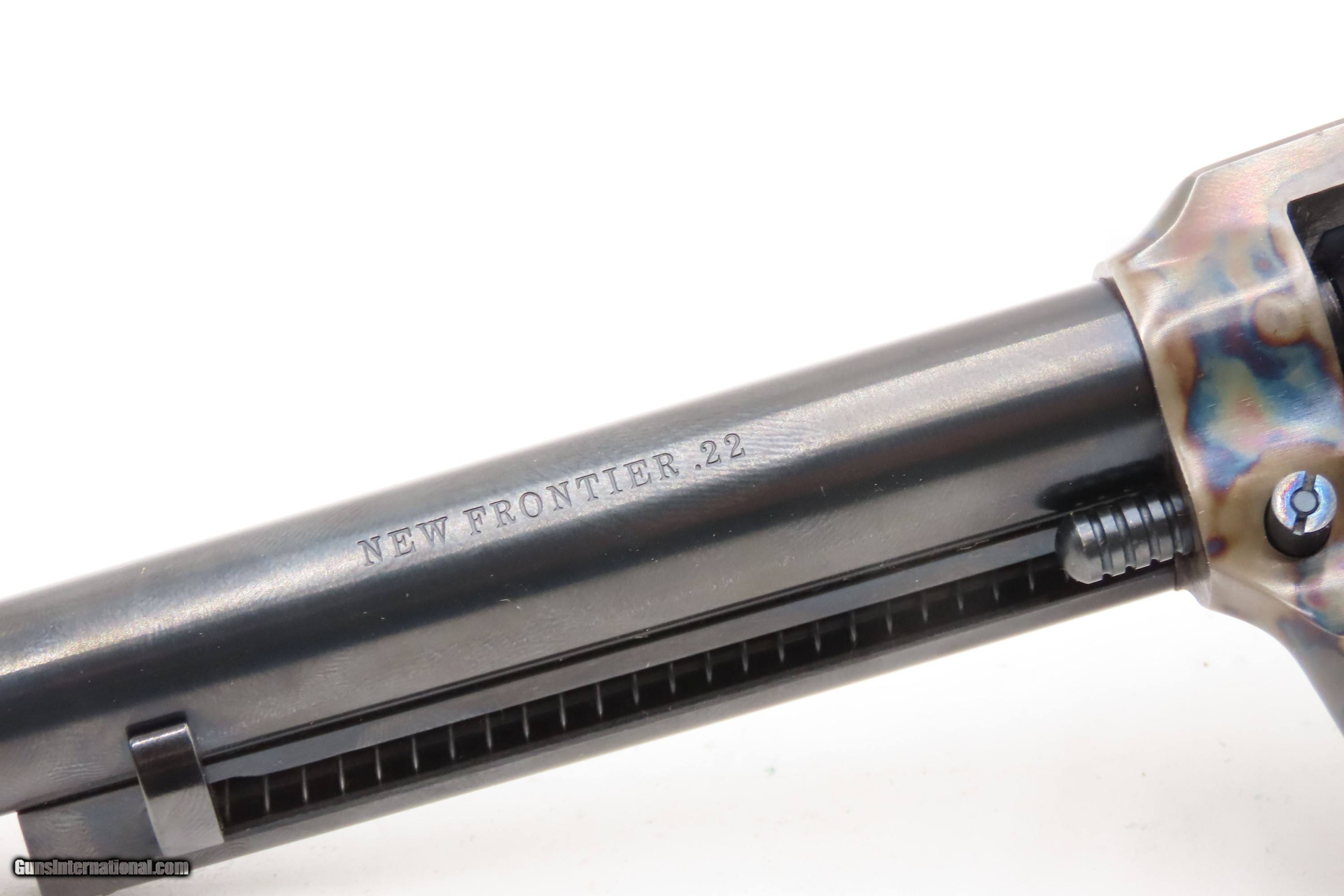Description: 1971 mfr. COLT Single Action “NEW FRONTIER” .22 RF C&R Revolver 8-ShotTarget Shooter w/ EXTRA .22 MAGNUM CYLINDER Here Ancestry Guns presents a C&R Colt New Frontier Single Action Revolver, made circa 1971 by the Colt Manufacturing Company. The G series Peacemaker .22 and New Frontier .22 revolvers were introduced in 1970, and the first production serial number was G10001. These guns were a major change in Colt's .22 single action revolver line. They more resembled the full-size Single Action Army revolvers because the receivers and loading gates were made of steel and were case hardened in colors. The Peacemaker .22 had fixed sights like the previous Frontier Scouts, but the New Frontier .22 used a ramped front sight and the same adjustable Accro rear sight that was used on many other Colt handguns at the time. All revolvers were marked “.22” on the barrels but were shipped either with the .22 LR cylinder alone or as combinations with .22 LR and .22 Magnum cylinders, as is this example. There were no .22 Magnum-only G series revolvers produced. The overall condition is excellent. Original finishes and case colors. Excellent action. Bright, shiny bore with crisp rifling. Very fine grips. Markings are sharp. The included .22 Mag. Cylinder is excellent. The box is fine. Own the original! This firearm is classified as a Curio & Relic. Barrel is 6 inches. Caliber: .22 Long Rifle Rimfire and .22 Magnum Rimfire Overall condition as seen in photos. Very Fast. Very Safe. FREE SHIPPING. Will need to be sent to your local FFL or C&R licensee. This firearm is classified as a Curio & Relic. Guaranteed AUTHENTIC & Includes CERTIFICATE OF AUTHENTICITY. $1500 #259773 Curio/Relic: Yes Price: $1,500.00 Buy Now Pay with