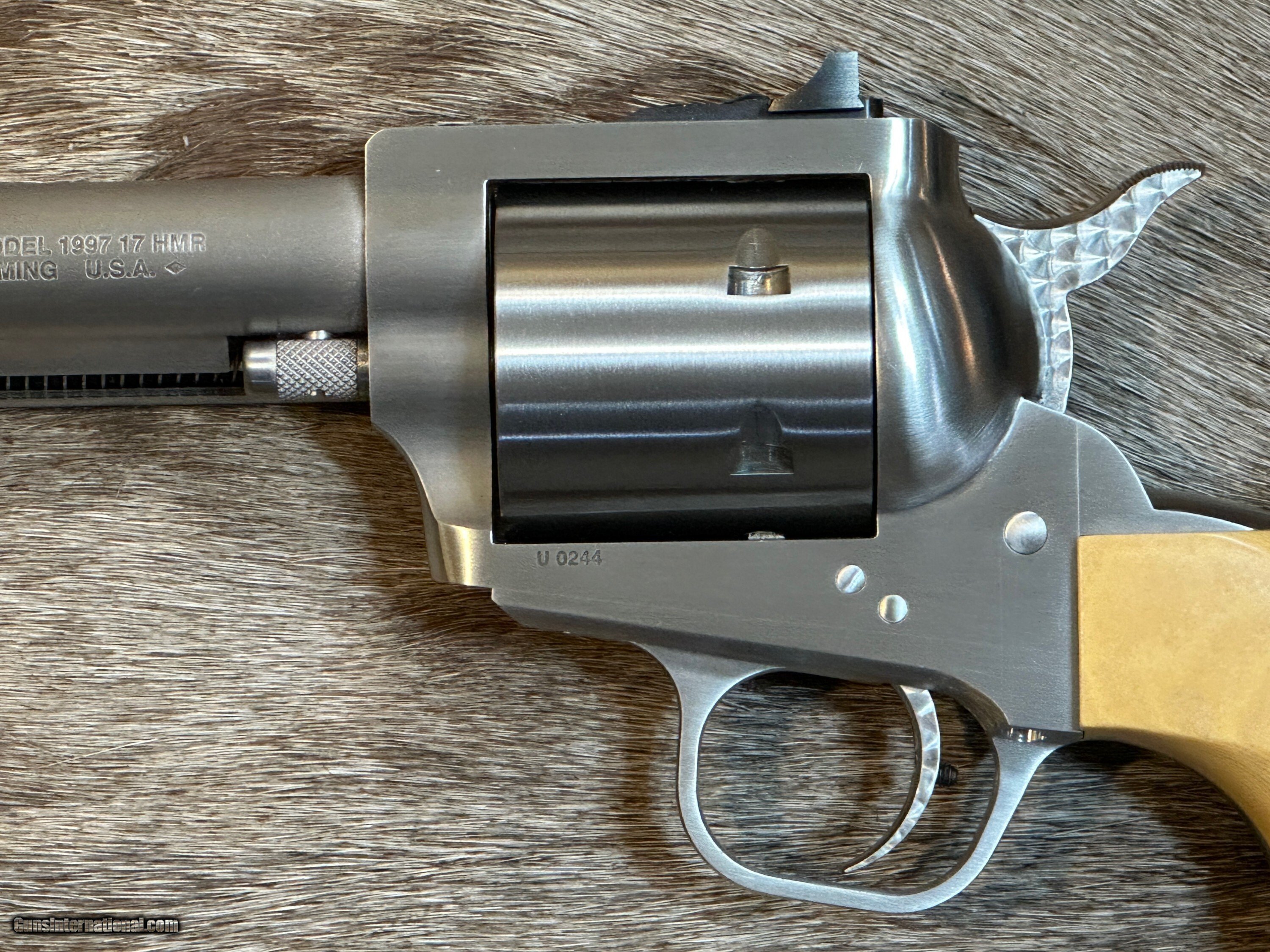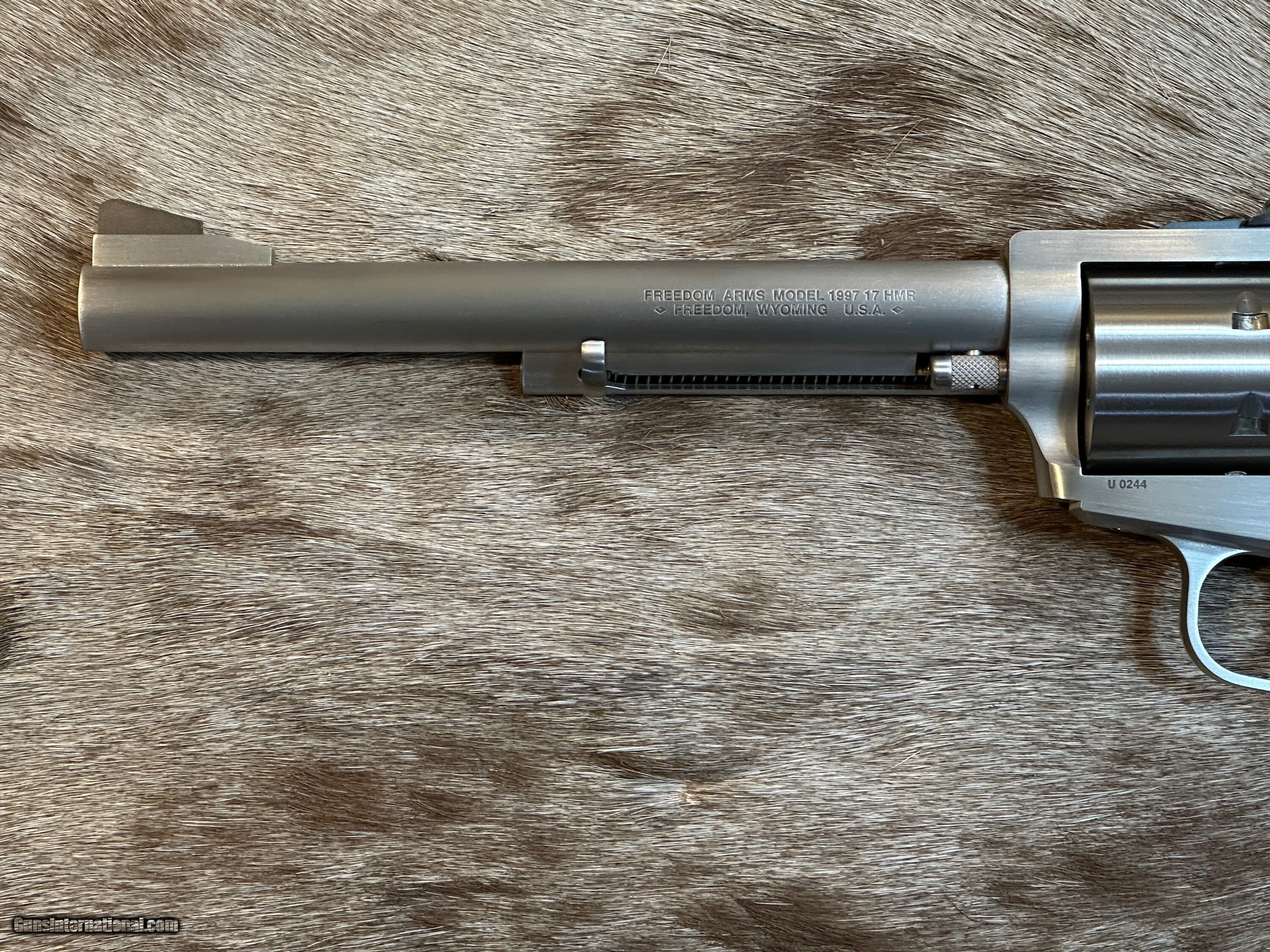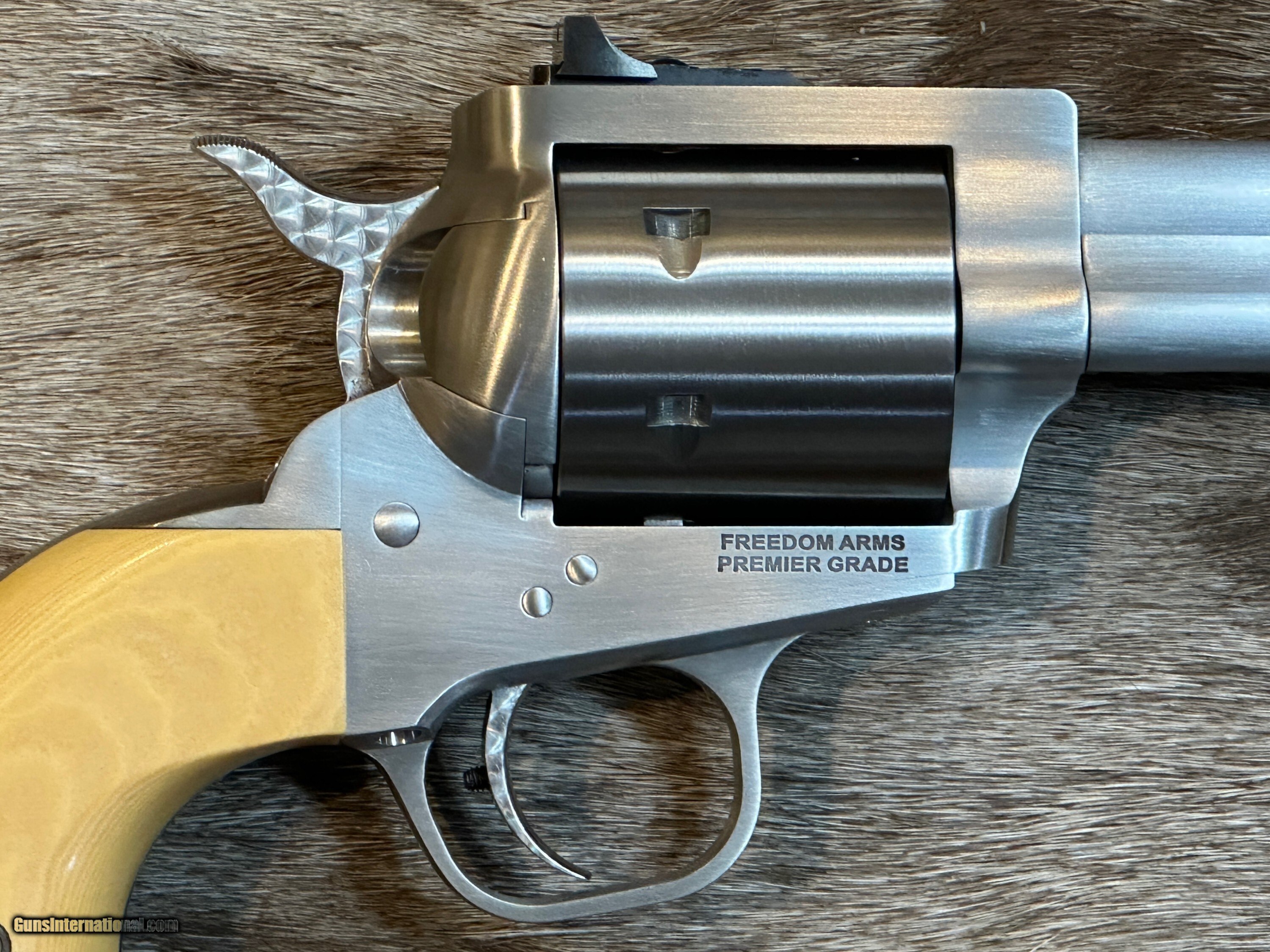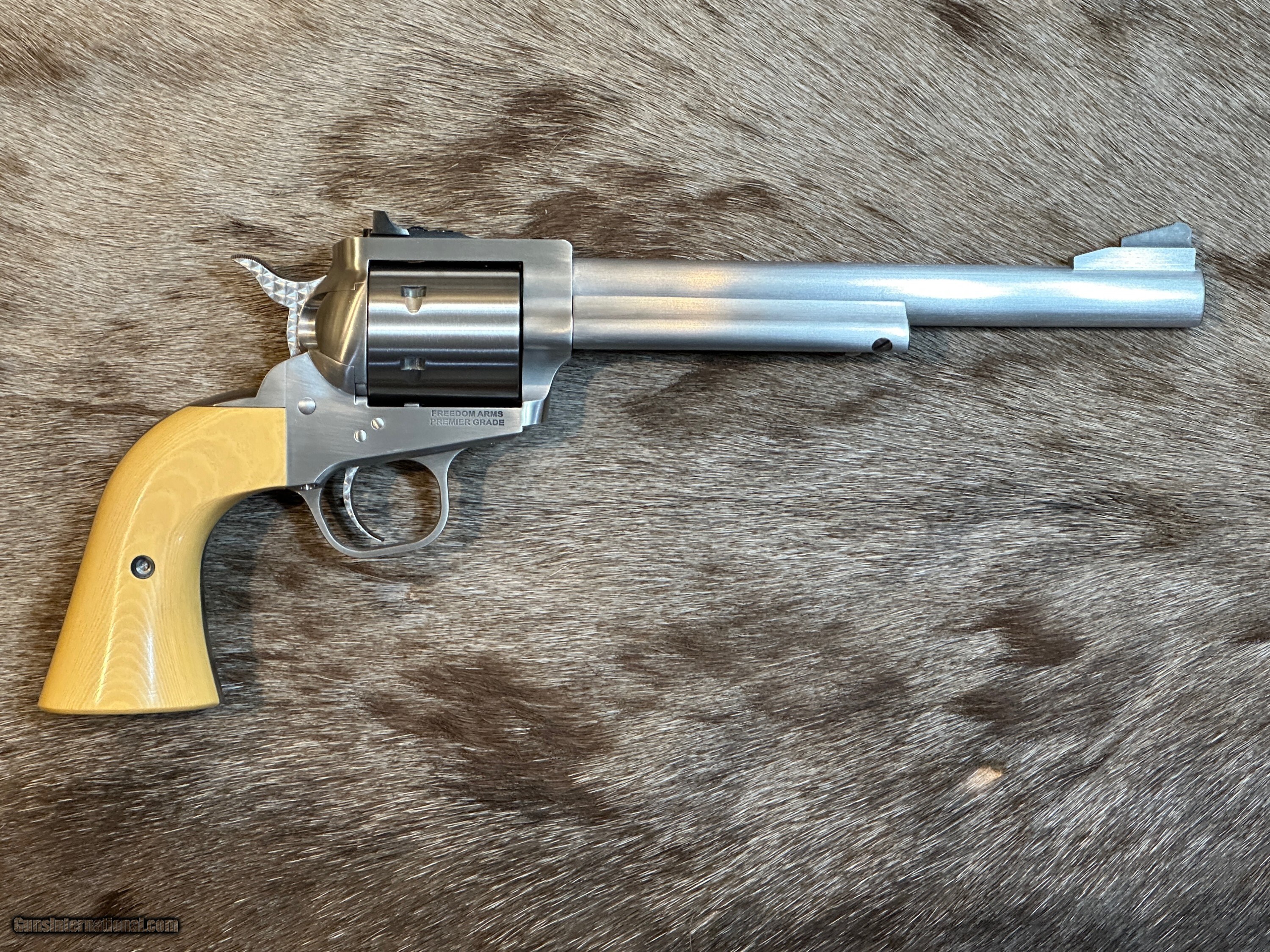 Description: NEW FREEDOM ARMS MODEL 97 PREMIER GRADE 17HMR 7.5" BARREL WITH MANY UPGRADES - LAYAWAY AVAILABLE FREE AFRICAN SAFARI WITH KUCHE SAFARIS (: KUCHE.CO.ZA) INCLUDED WITH THIS RIFLE! SAFARI IS FOR 1-HUNTER / 5-DAYS / 3-ANIMALS (IMPALA, BLESBUCK, WARTHOG). SAFARI IS CUSTOMIZABLE WITH AS MANY ADDITIONAL DAYS AND ANIMALS AS YOU WANT. THE CERTIFICATE IS GOOD FOR 3-YEARS FROM DATE OF PURCHASE AND WILL BE EMAILED TO YOU. NOTE: THE SAFARI IS FREE AND DOES NOT ADD ANY COST TO THE FIREARM. The Premier Grade has a bright, brushed finish with more attention to cosmetic details. Premier Grade rear sights are screw adjustable for elevation and windage. Premier Grades have a limited lifetime warranty to the original owner. All Model 97’s have a transfer bar safety. FEATURES OF THIS GREAT AMERICAN-MADE REVOLVER INCLUDE:
