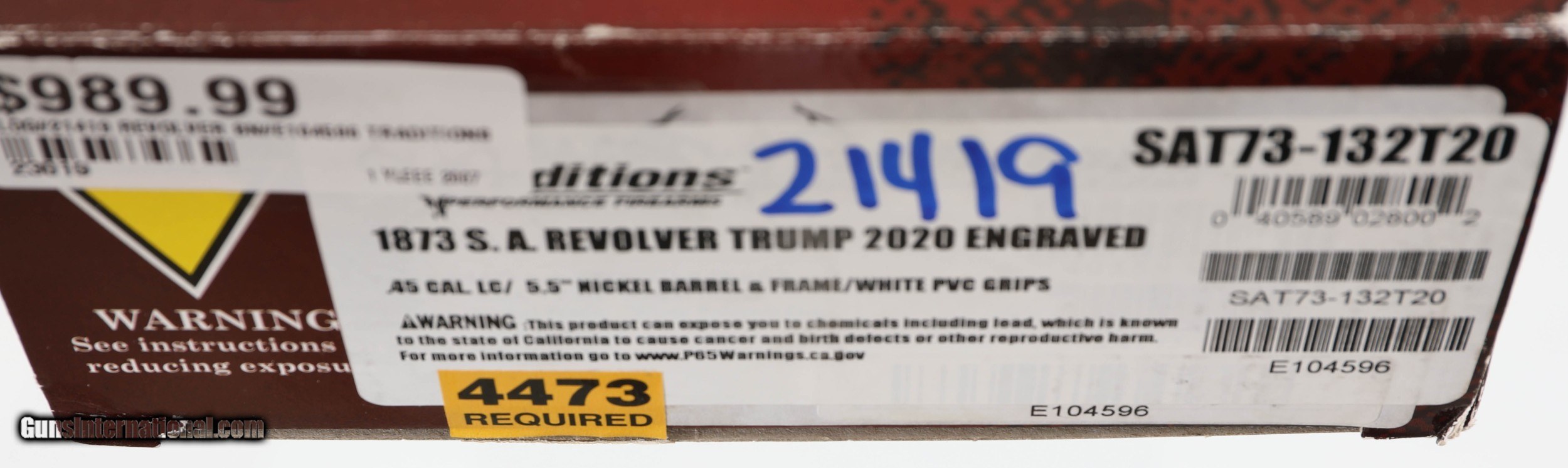 SOLD Handgun Caliber: .45 Colt Manufacturer: TRADITIONS Model: 1873 Serial Number: E1045?? Barrel Length: 5 1/2 Condition: EXCELLENT |