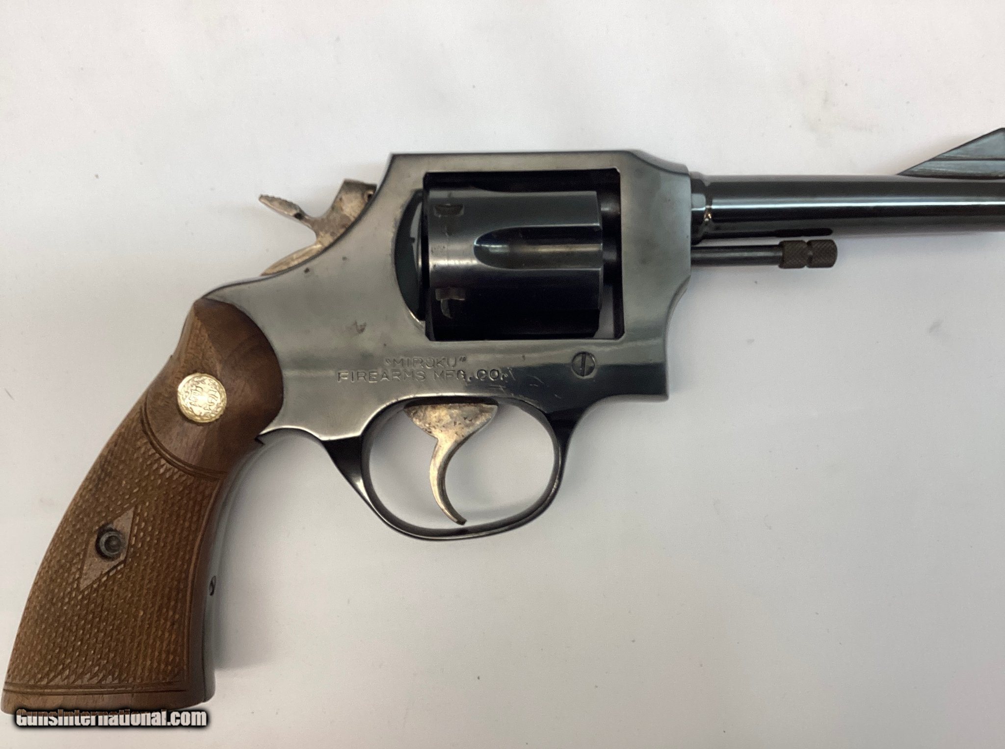 Description: Guns Listing ID: 512391 The Miroku \"Special Police\" model .38 Special revolver was primarily produced for the Japanese police force during the 1960s and 1970s, with some models also exported to other Asian countries. It was a well-regarded revolver, particularly known for its quality and finish. SOLD Manufacturer: MIROKU Model: 38 SPECIAL Caliber Info: .38 SPL Condition: Used - Non-Certified Barrels: 4 Action: REVOLVER Finish: blue |