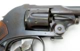 Description: Kynoch Type 2 .476 caliber revolver. Schlund patent. Bore is fair. Action works perfectly. Double trigger. Lower trigger cocks the gun. Upper trigger fires it. Grips are very good. Gun in rare with approximately 100-200 made. Very good overall condition. SOLD |