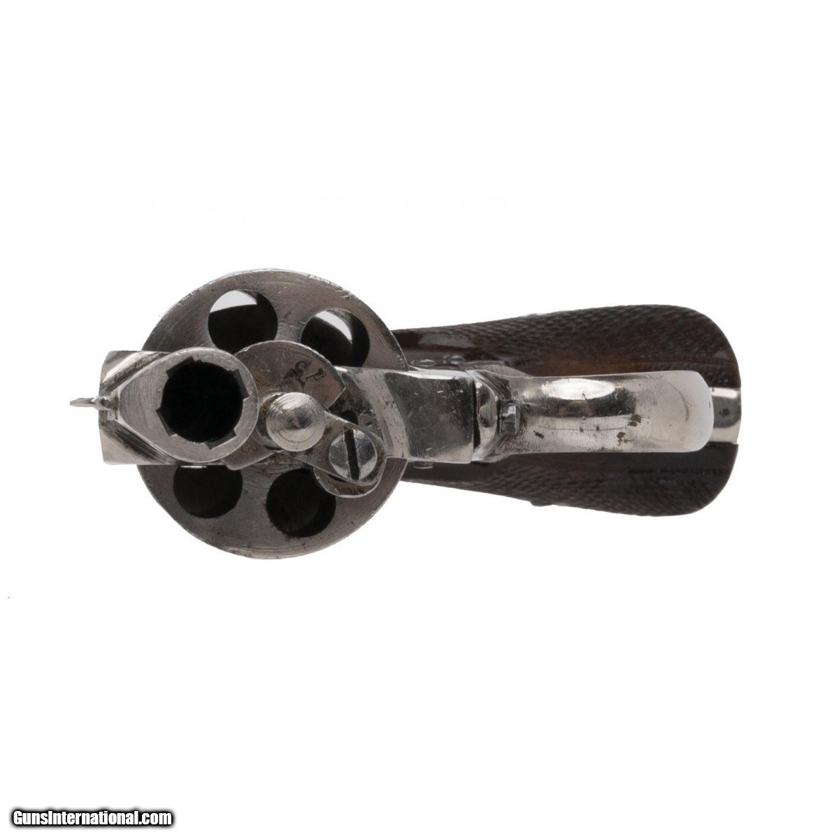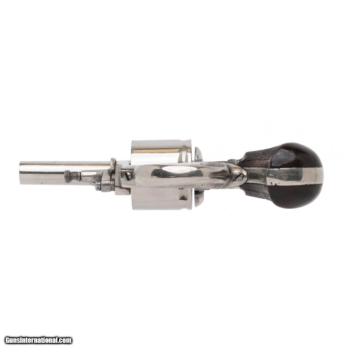 Description: " Belgian copy of a British Bull Dog revolver. Double action functions properly. Approximately 97% nickel finish. Cylinder has Belgian proofs. SOLD |