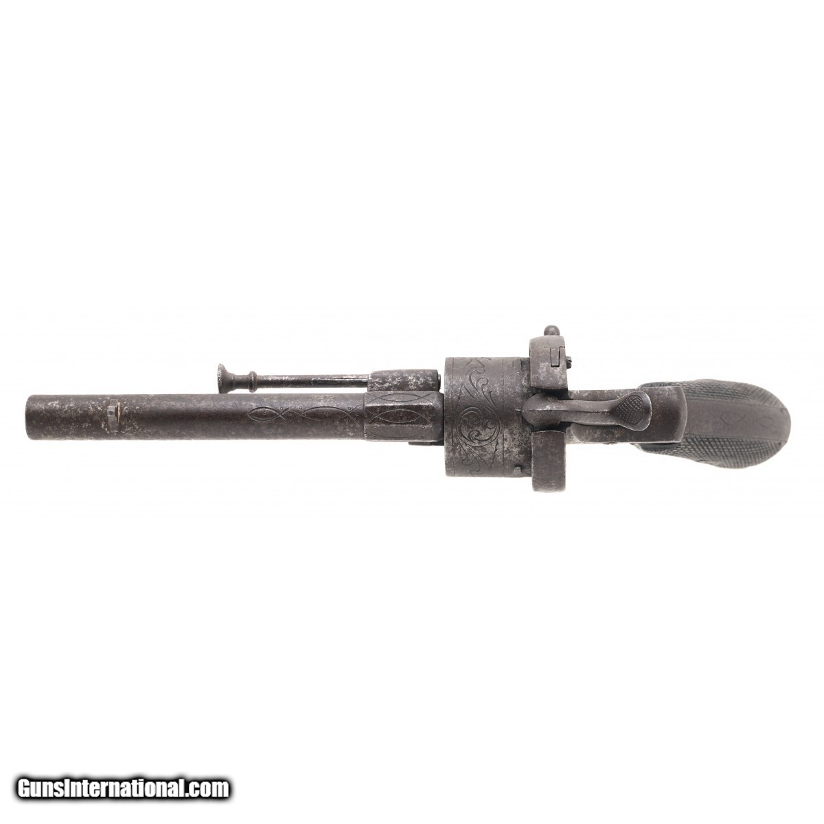 Serial No. 16647, circa 1860's, 12mm, 5.5"" round barrel. Metal is a dark brown patina with surface oxidation noted throughout. Bore has pitting, frosting visible in grooves. Rifling remains strong. Brown checkered grips are dark with handling and usage wear noted. Action functions but trigger needs to be reset manually for DA to work. CONSIGNMENT