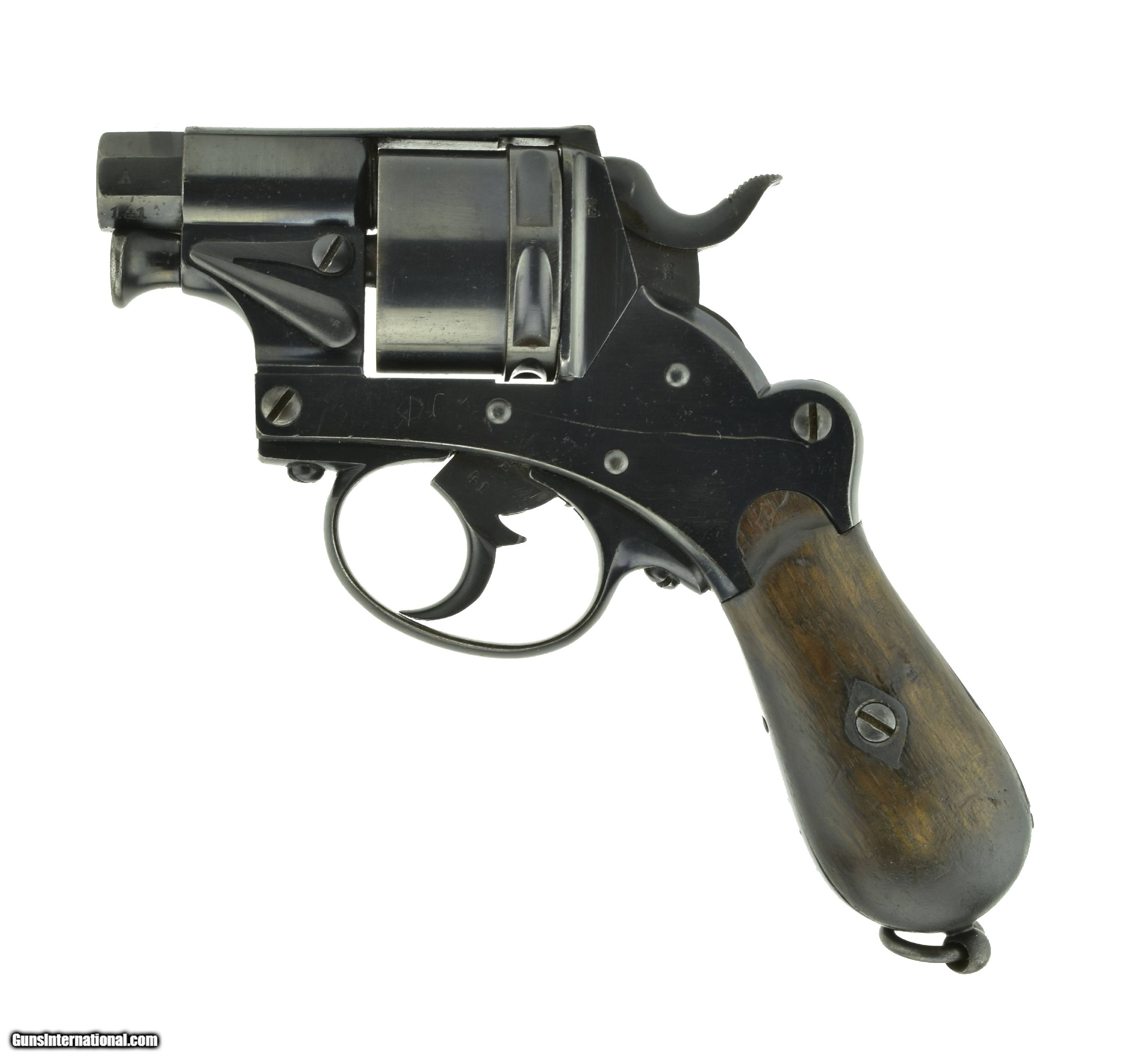 Description: "Dutch Gas Gun 12mm caliber revolver. Dutch Gas Gun, Nembrug marked on frame. Very scarce gas or flare revolver. 6-Shots. Caliber is 12mm barrel is 2 inches and the octagonal part is half an inch. Gun has 98% original blue. Action works perfectly, single or double action. Grips are very good. Serial number A141 on barrel flats. If you collect flare or gas or oddity guns this one is for you! Price: $1,650.00 Contact Seller |