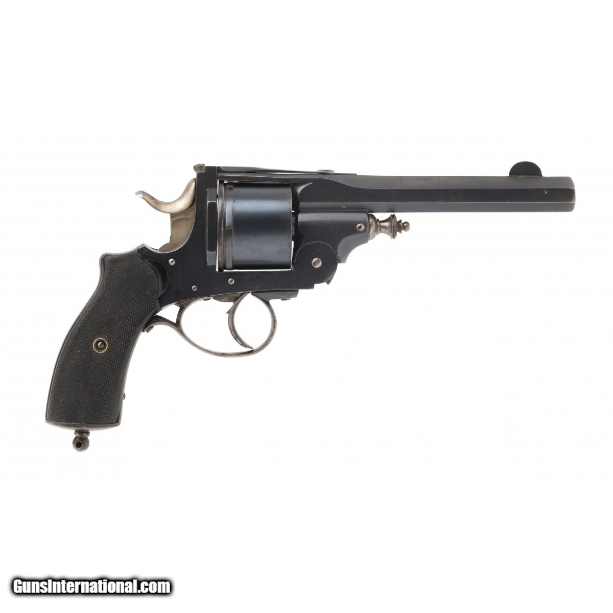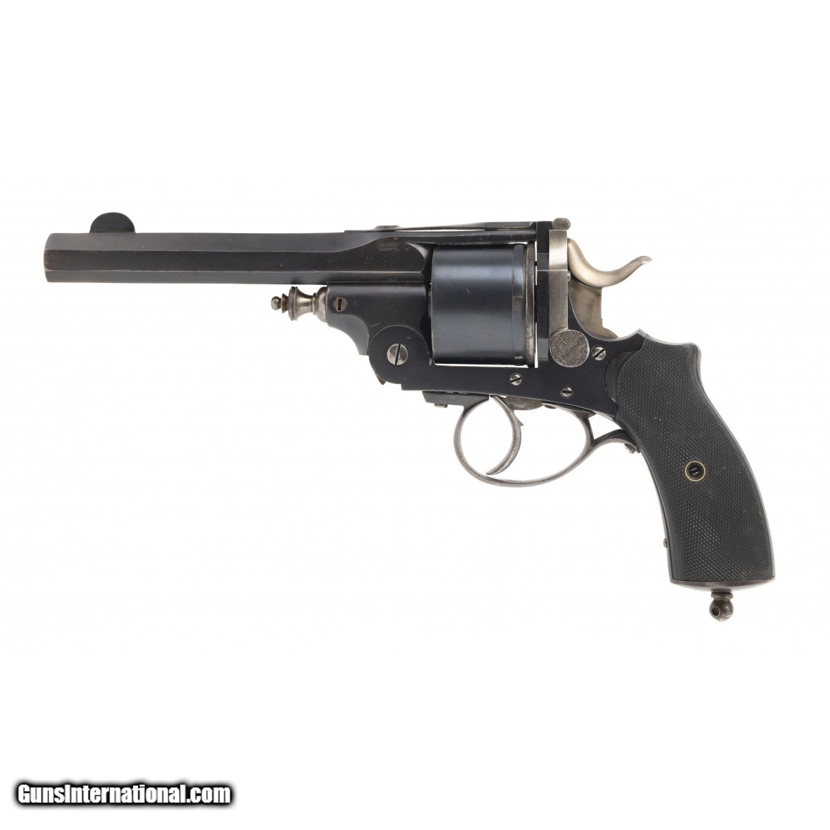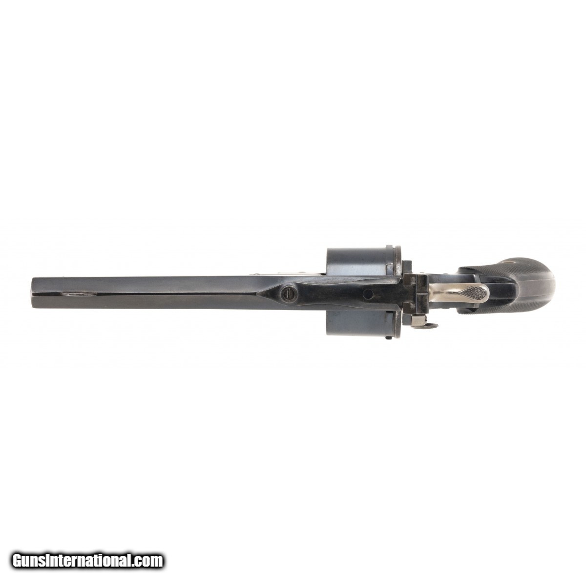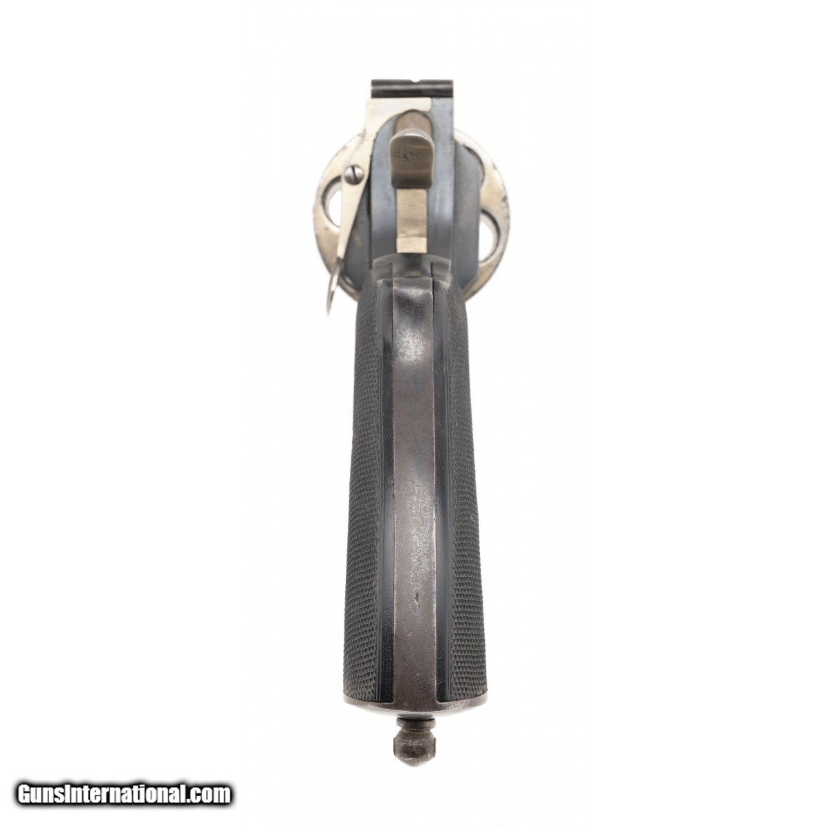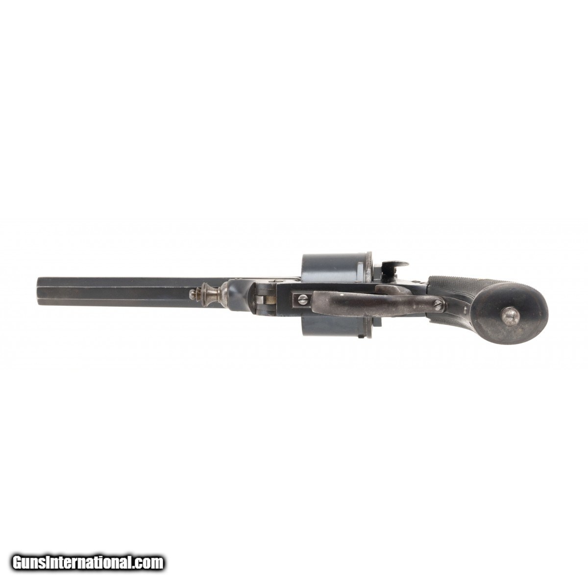 Six shot, double action revolver with 5.75"" octagonal barrel. The bore is excellent. The cylinder has both the ""Crown U"" and Belgian Liege proof marks. This revolver has approximately 98% bright original blue. The straw color parts have very good color. action works perfectly. The barrel tips down to open by depressing the single ""Pryse"" type lever. Grips are excellent. Very well machined revolver in excellent condition.