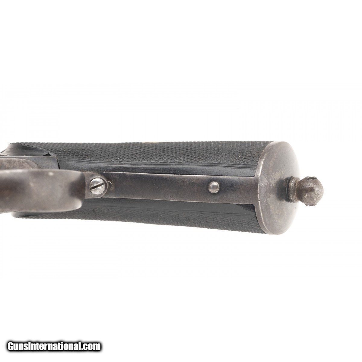 Description: " Six shot, double action revolver with 5.75"" octagonal barrel. The bore is excellent. The cylinder has both the ""Crown U"" and Belgian Liege proof marks. This revolver has approximately 98% bright original blue. The straw color parts have very good color. action works perfectly. The barrel tips down to open by depressing the single ""Pryse"" type lever. Grips are excellent. Very well machined revolver in excellent condition. SOLD Curio/Relic: Yes |