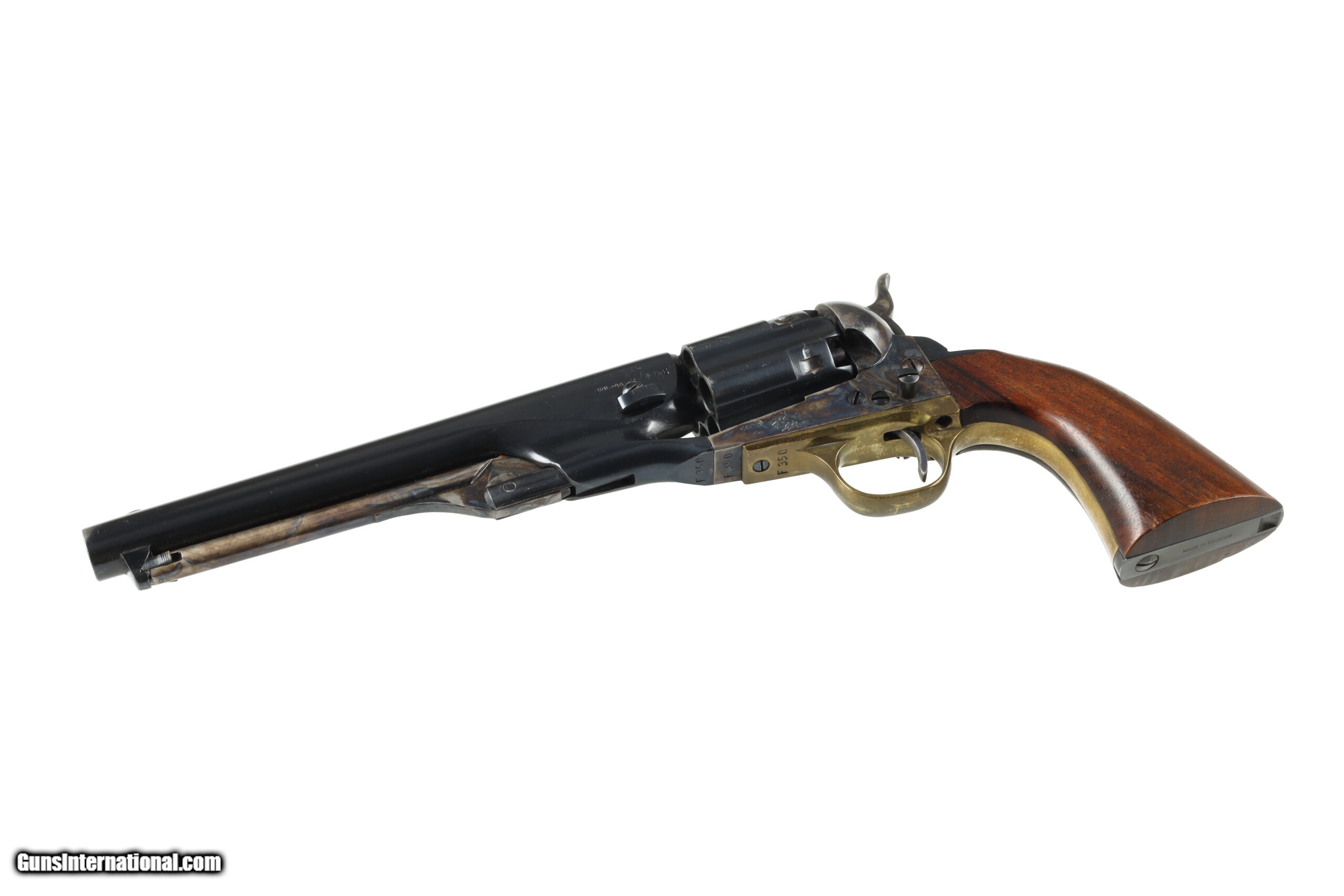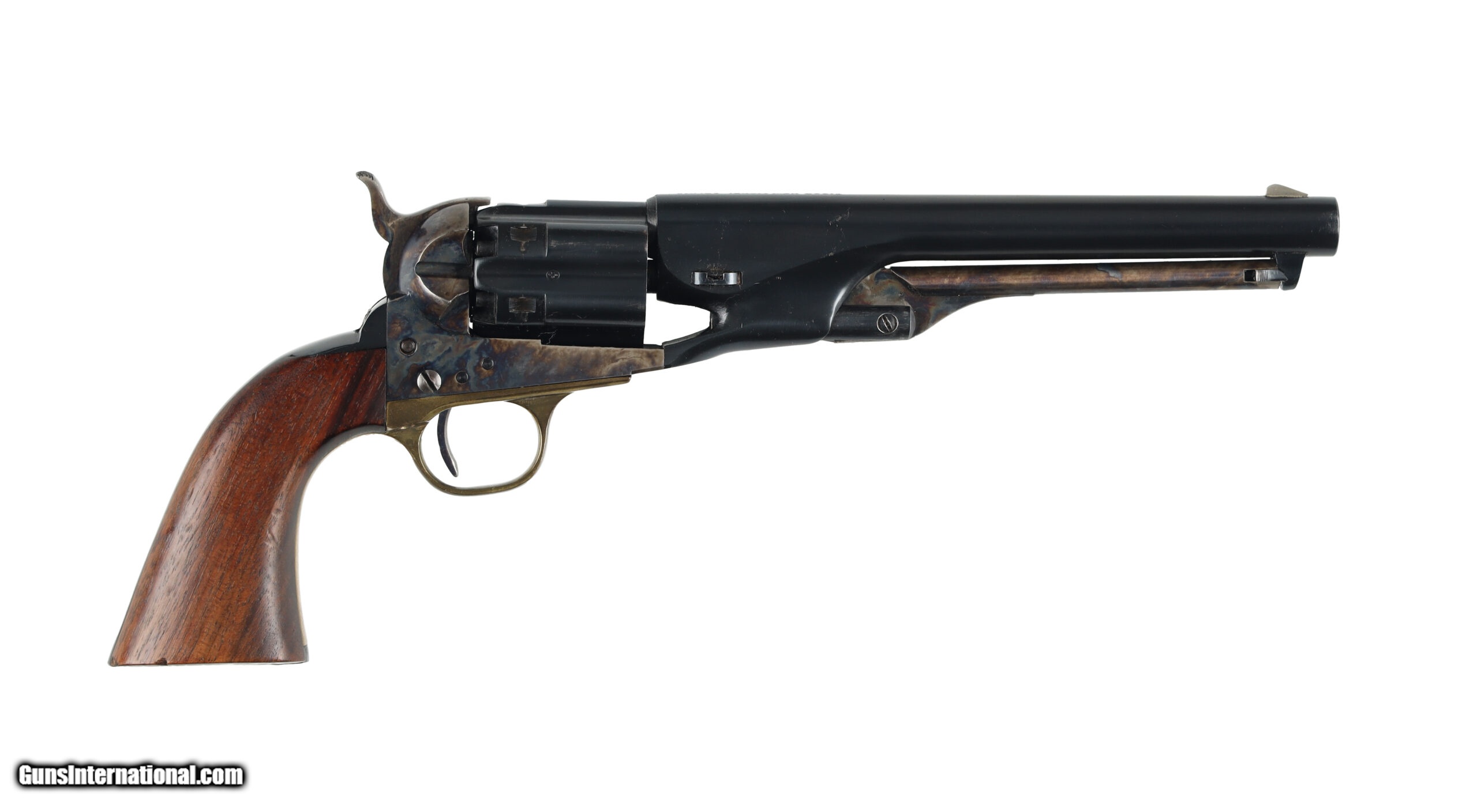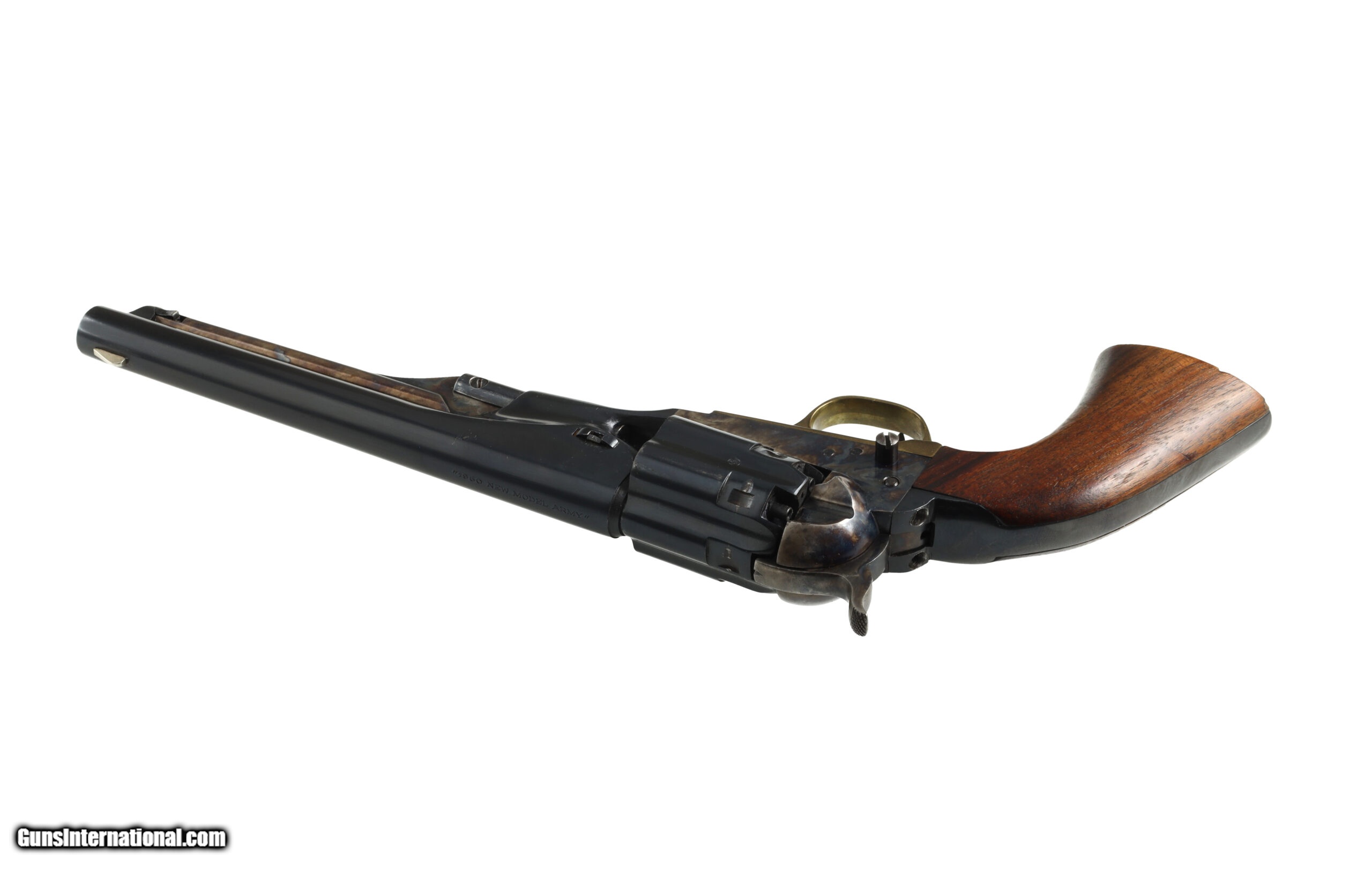 Description: This Pistol is a Belgian copy of the Colt Model 1860 Army that has been marked "1960 New Model Army". The overall condition of this pistol is very good, with no serious wear. Manufactured in: Belgium Hand: Right Hand Action Finish: Case Colored & Blue Metal Finish: Original Barrel Length: 7.5 Inches Barrel Condition: Very Good Stock Finish: Original Stock Condition: Very Good Grip: Pistol SOLD Manufacturer: Belgian Model: 1860 Army Caliber Info: .44 Condition: Preowned Metal Condition: Very Good Action: Revolver Triggers: Single Finish: Original Weight: 2.6 lbs Case: NONE |