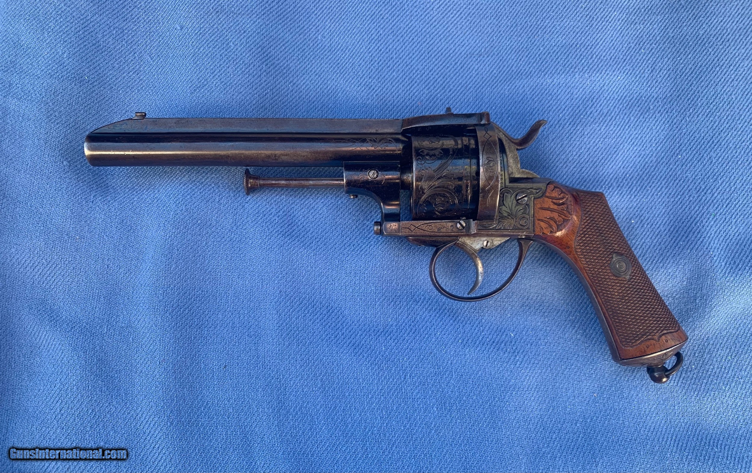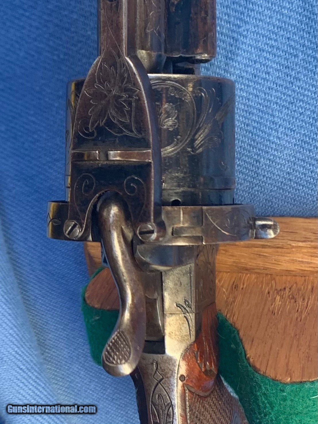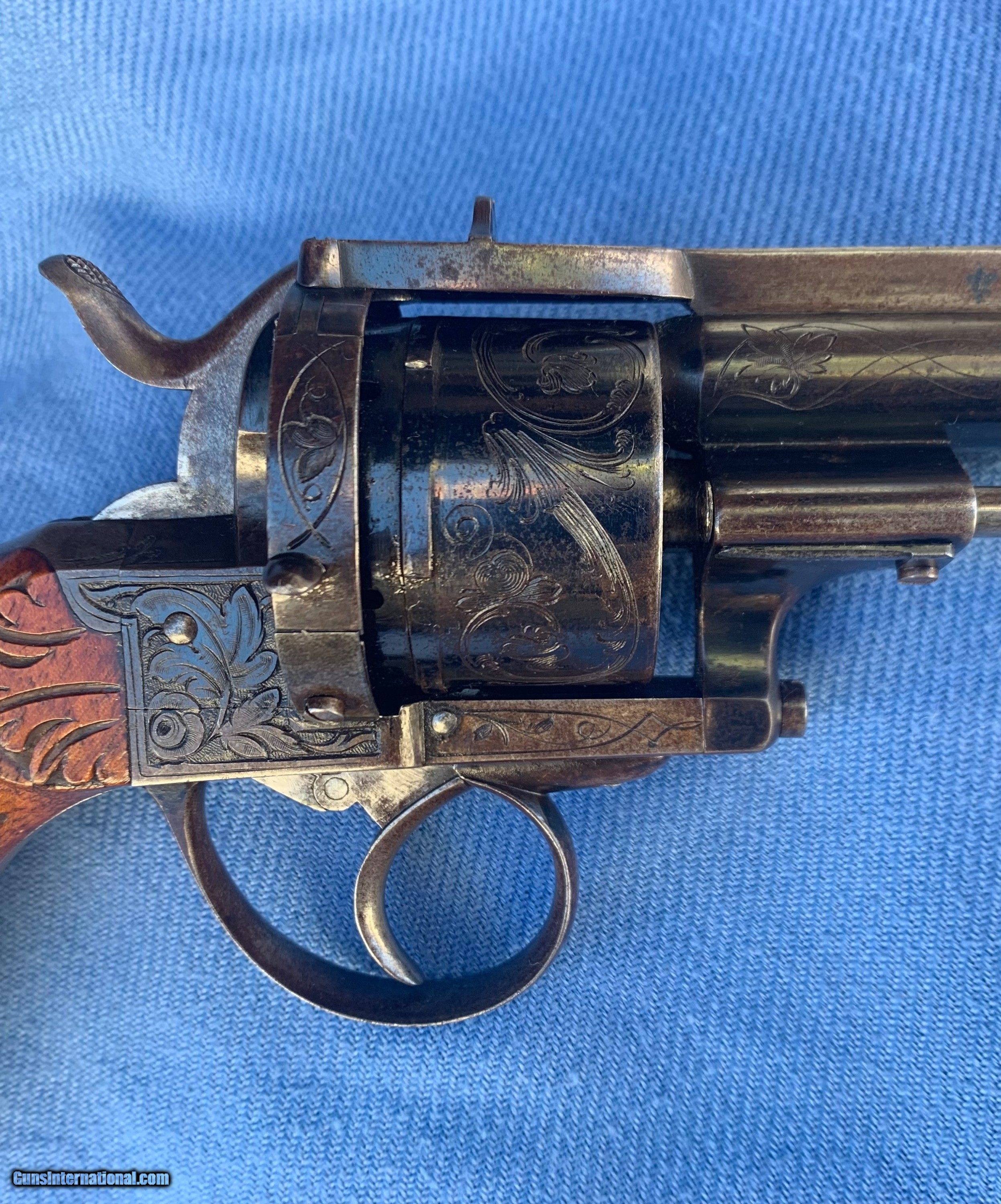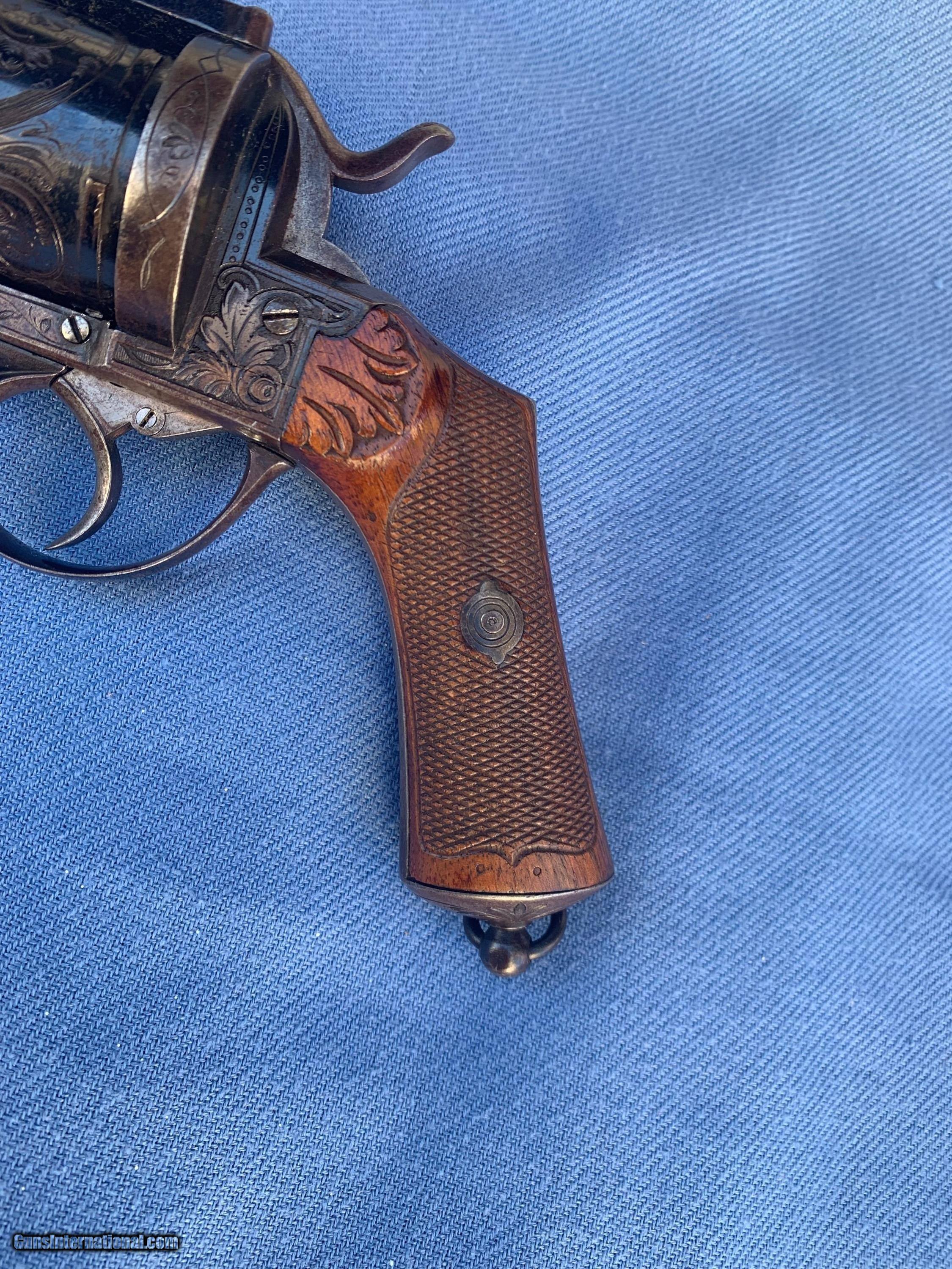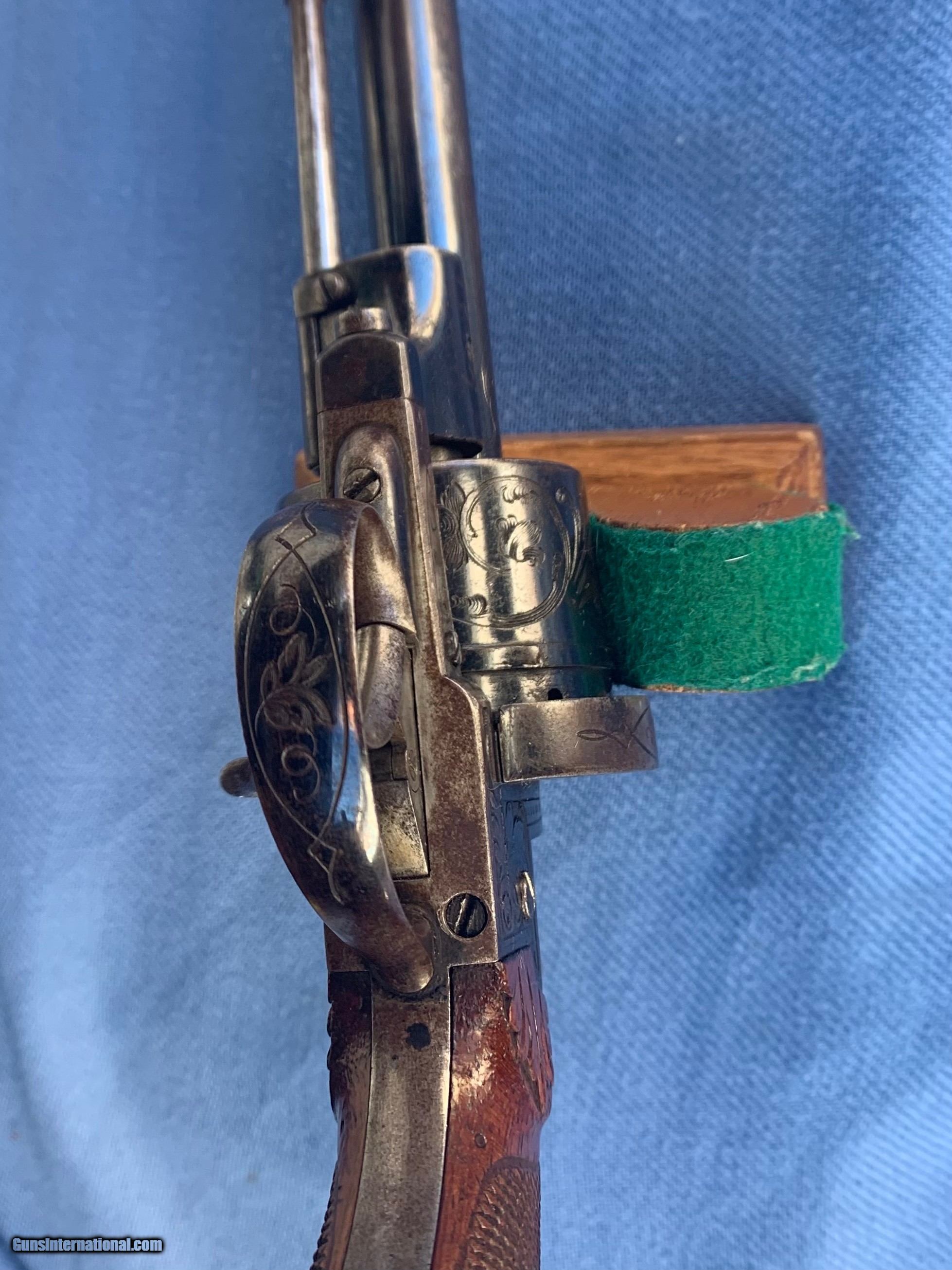 Description: Here's a Stunning Example of a Presentation Grade PINFIRE Revolver in 44 caliber! Super nice original condition . Gun has full coverage engraving and fancy wood stocks . Gun has most all of its original bright finish still remaining. Thinning on the barrel . Frame has most all it's original case colors still remaining . Fancy wood stocks are perfect. Bore and mechanics are in excellent plus condition . Gun is in excellent working condition. Please review my photos and please email me with any questions ? 3 day inspection as allways ! Thank you for looking, Little Jo SOLD Antique: Yes Handgun Caliber: .44 Manufacturer: European Model: PINFIRE Serial Number: Nsn Barrel Length: 6” Condition: Excellent plus |