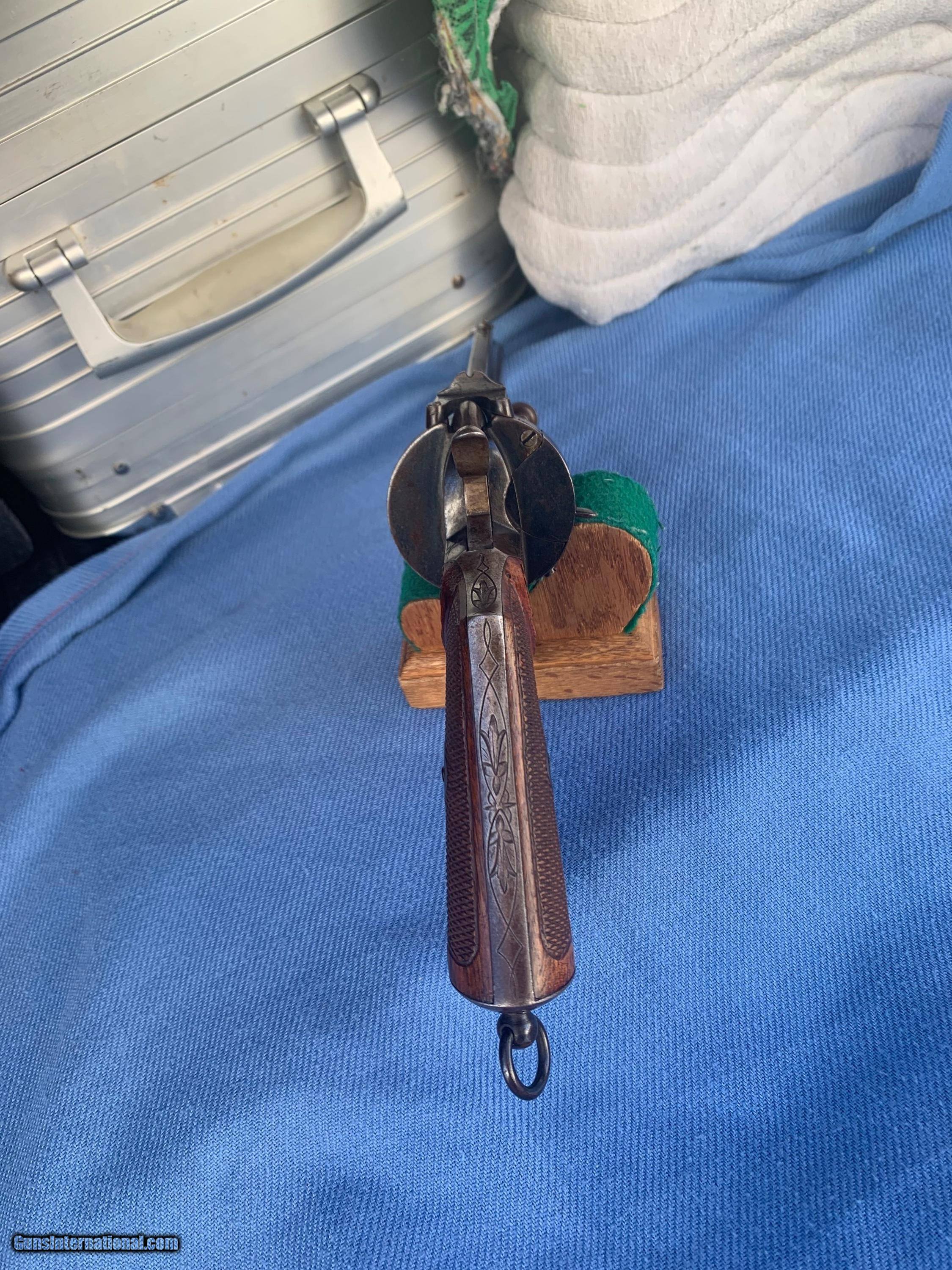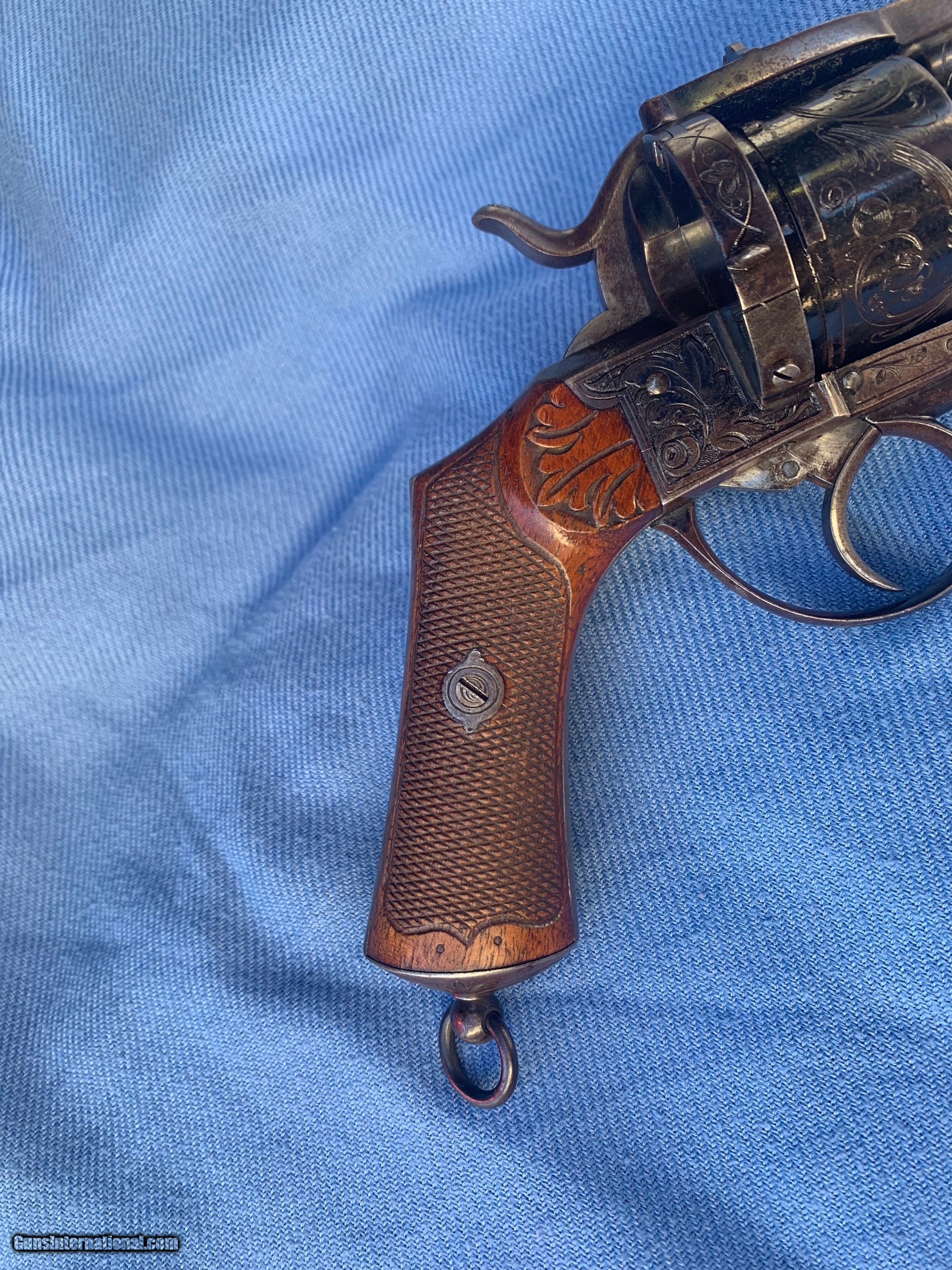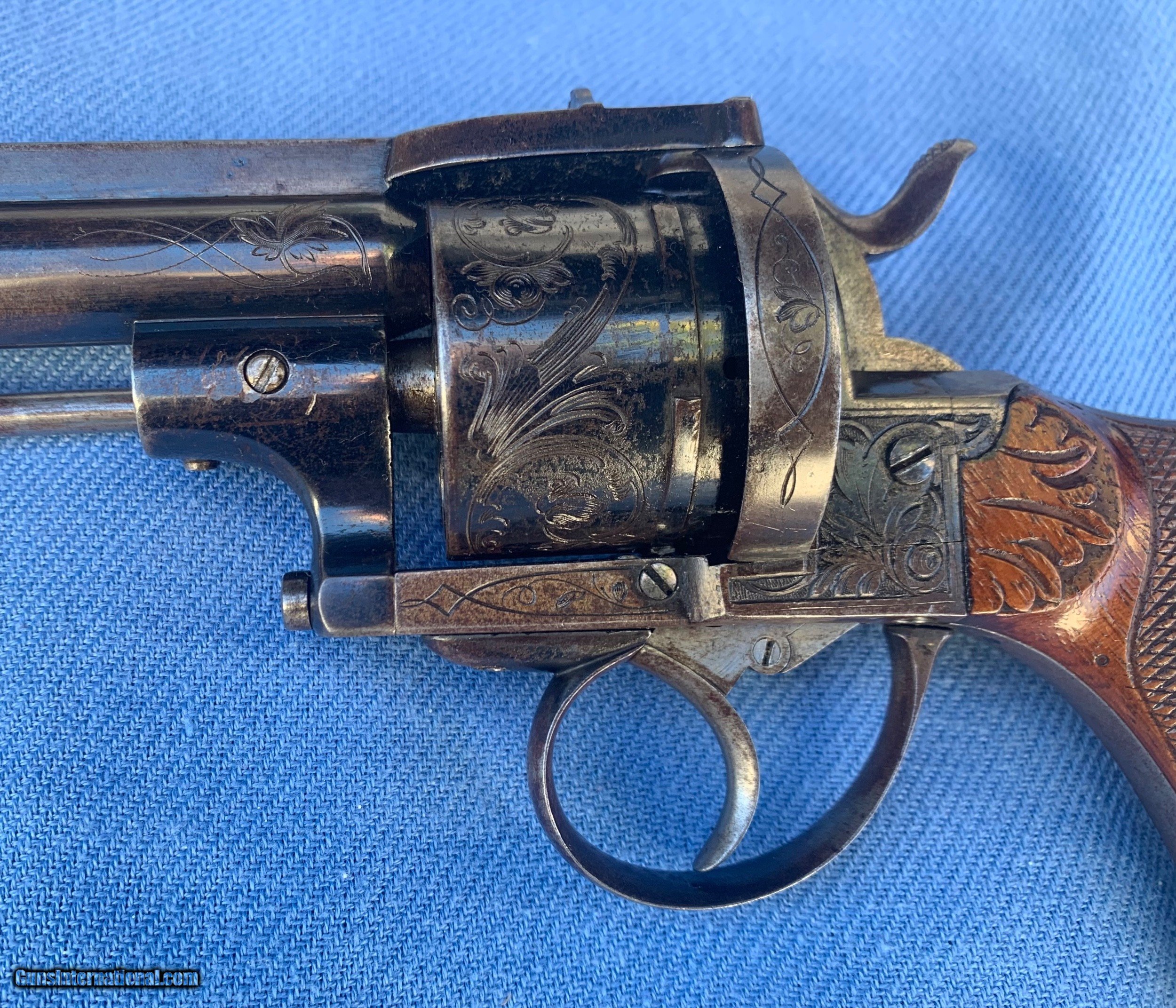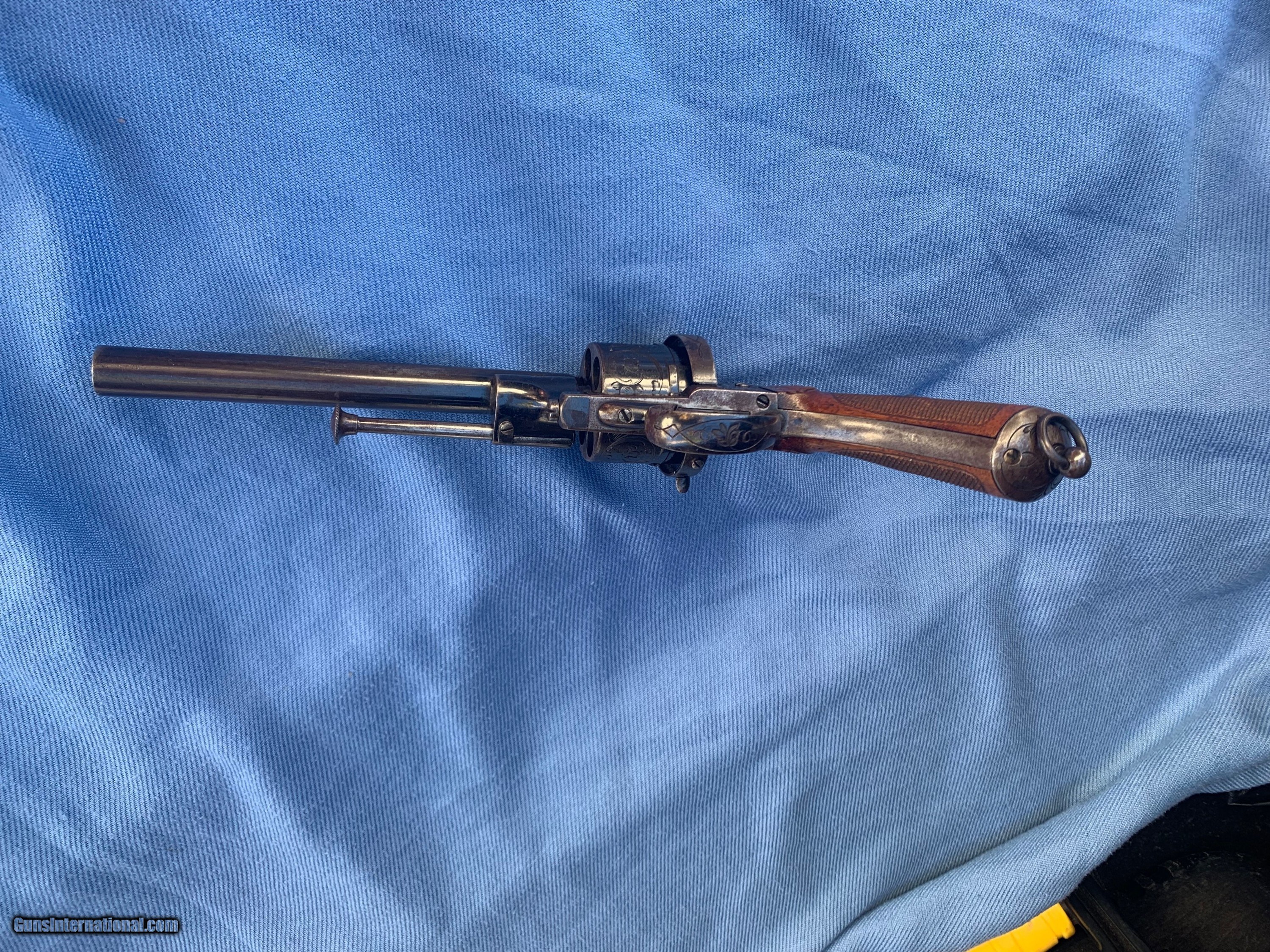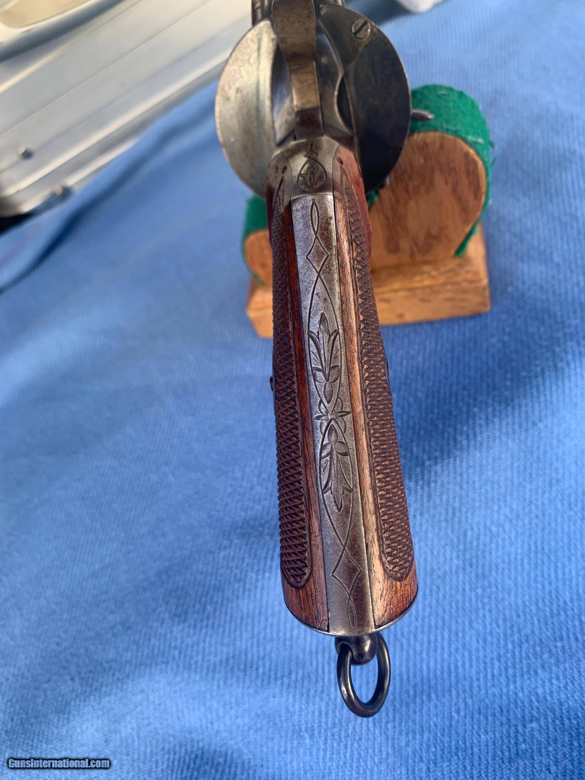 Description: Here's a Stunning Example of a Presentation Grade PINFIRE Revolver in 44 caliber! Super nice original condition . Gun has full coverage engraving and fancy wood stocks . Gun has most all of its original bright finish still remaining. Thinning on the barrel . Frame has most all it's original case colors still remaining . Fancy wood stocks are perfect. Bore and mechanics are in excellent plus condition . Gun is in excellent working condition. Please review my photos and please email me with any questions ? 3 day inspection as allways ! Thank you for looking, Little Jo SOLD Antique: Yes Handgun Caliber: .44 Manufacturer: European Model: PINFIRE Serial Number: Nsn Barrel Length: 6” Condition: Excellent plus |
