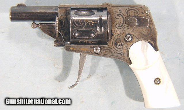 FANCY BELGIAN VELO DOG 6.35MM (.25ACP) SMALL SIZE POCKET REVOLVER WITH MOTHER OF PEARL GRIPS.