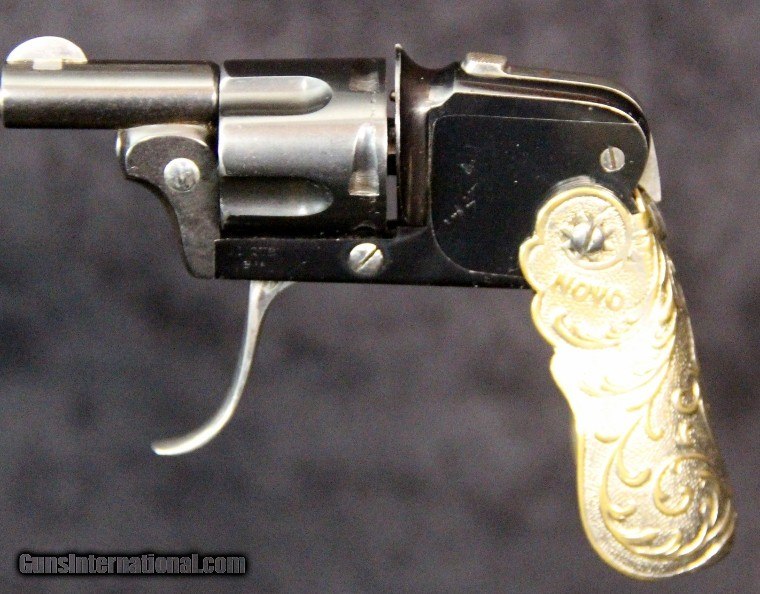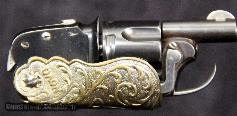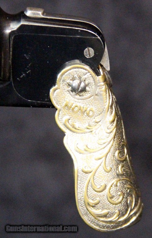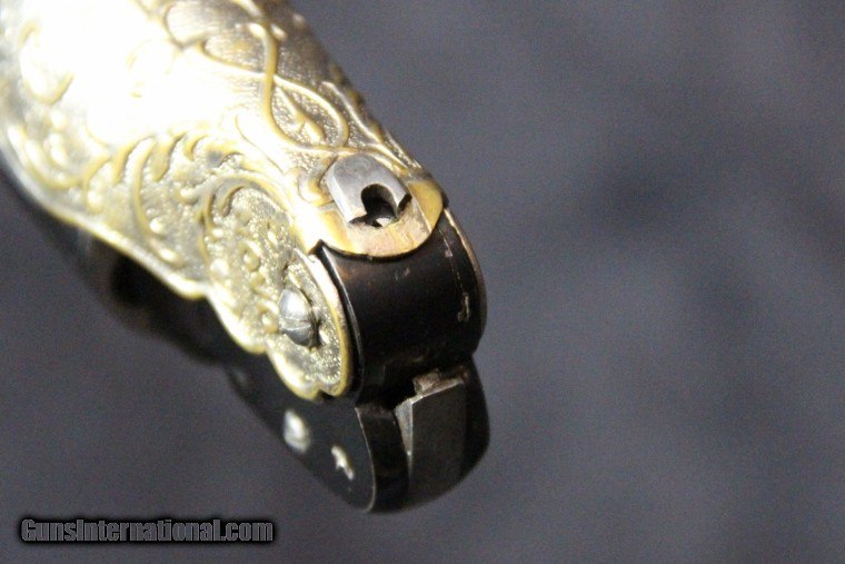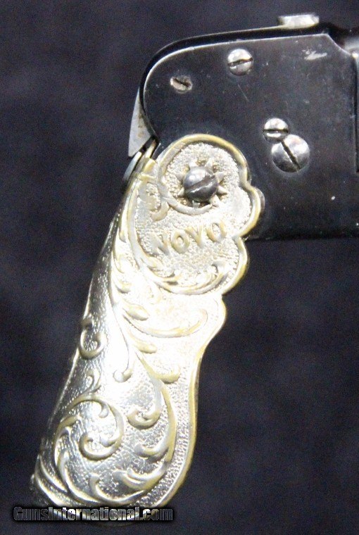 Description: 6.35mm, #170, 1 1/4 inch barrel, blue and nickel plate finish, light sheet metal folding grip with pressed floral design, folding trigger. Condition: 99% SOLD Curio/Relic: Yes |