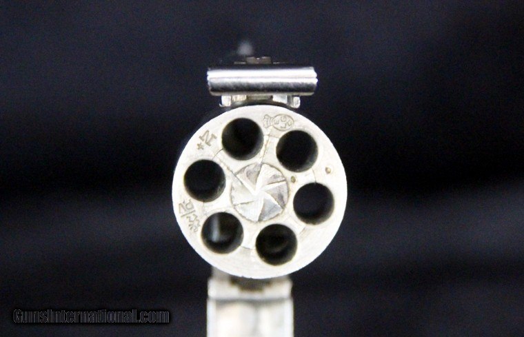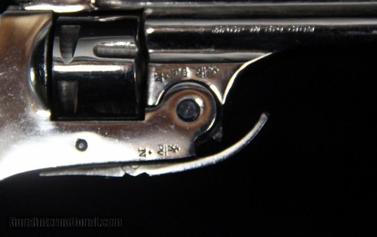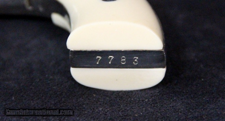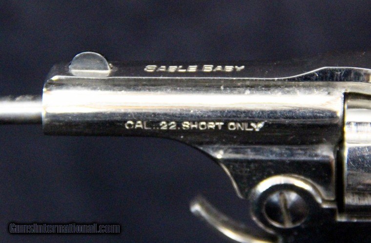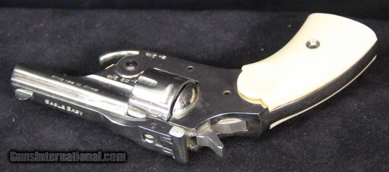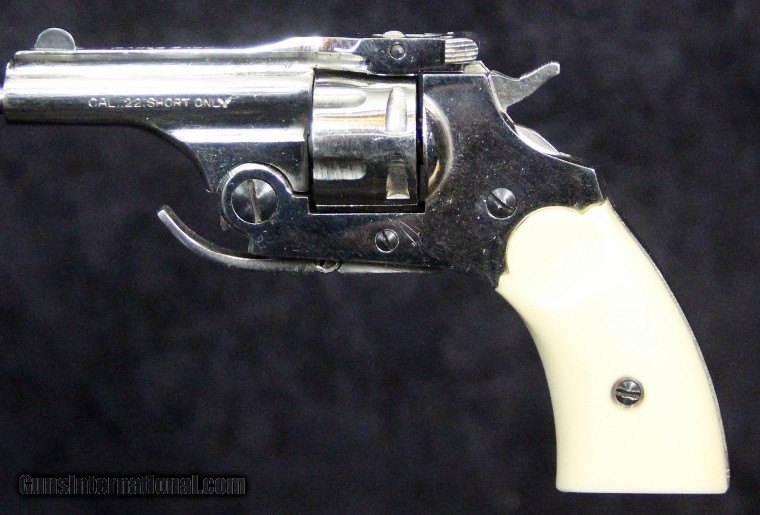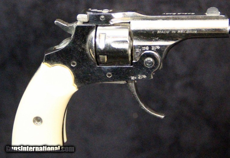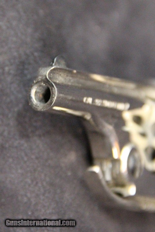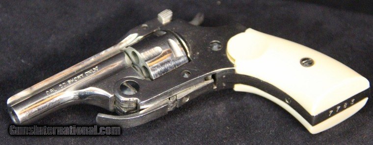Description: .22rf, short only, #7783, Belgian, 2 inch barrel, nickel finish, top break, faux ivory grips, folding trigger, exposed hammer. Condition: excellent, 99% overall. SOLD Curio/Relic: Yes |