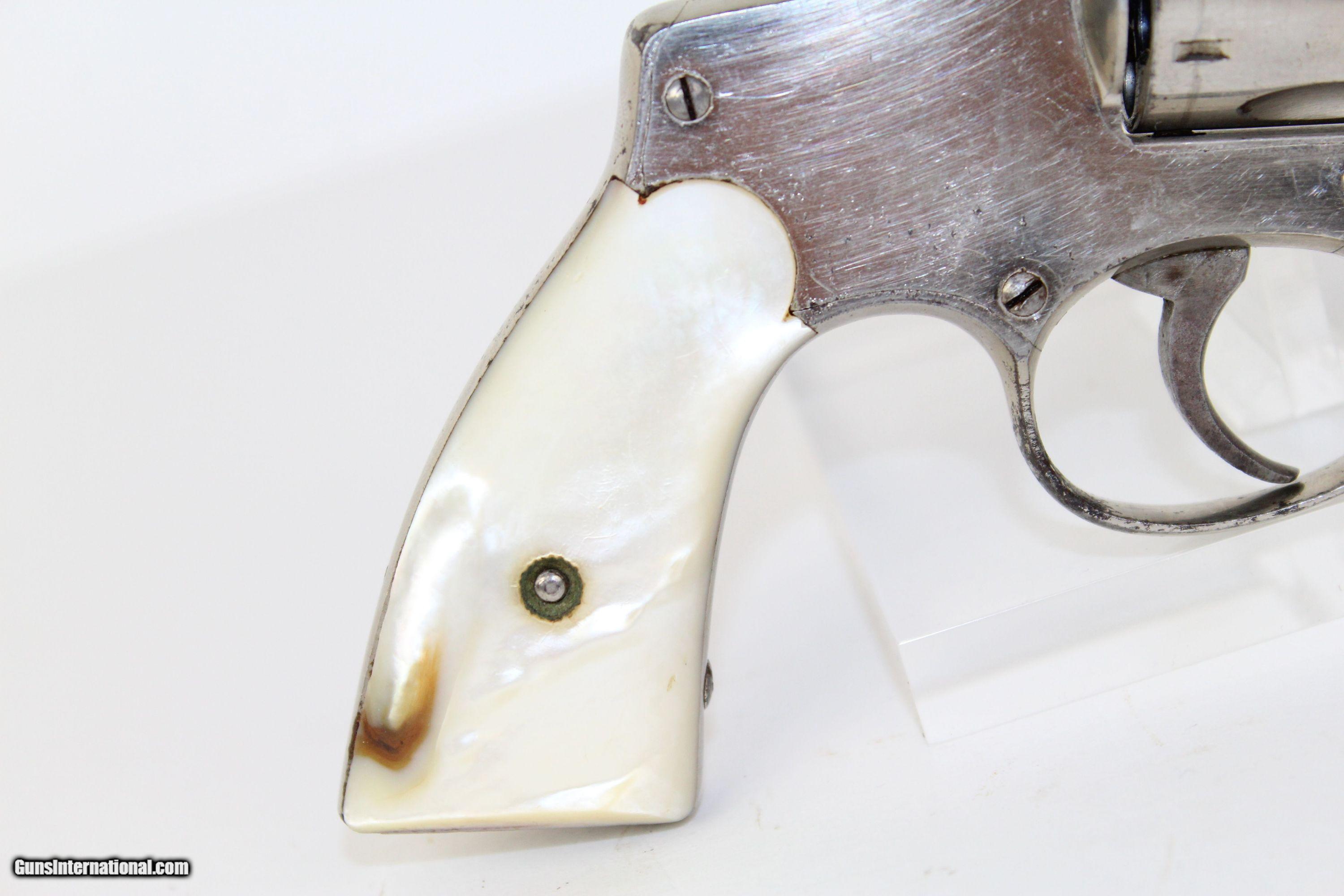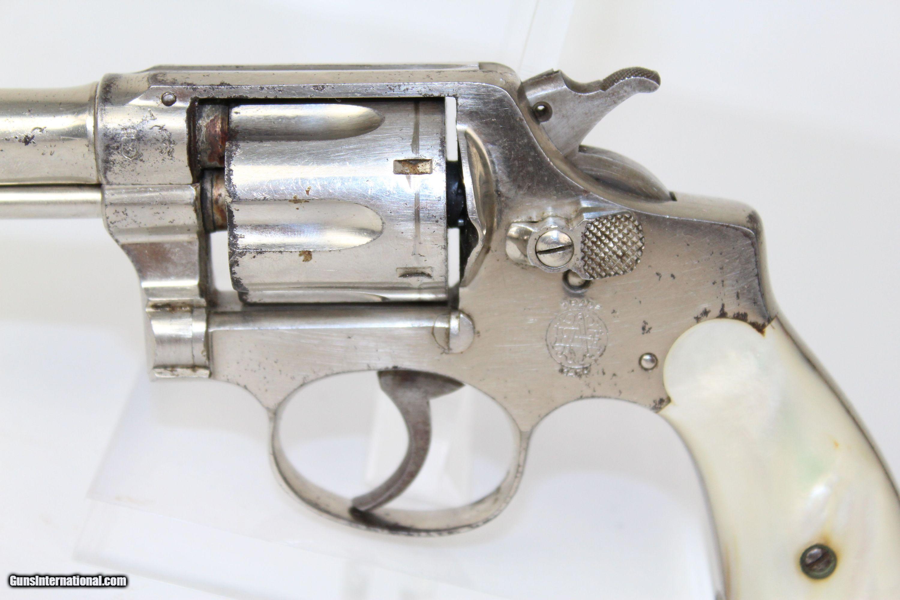 Description: Spanish “DREADNAUGHT” in 32 S&W by ANTONIO ERRASTI Early 19th Century Spanish Copy of Hand Ejector Here we present an Antonio Errasti Dreadnought Double Action Revolver with Pearl Grips and Holster, made circa the early 1900s in Eibar, Spain. This revolver was a clear copy of a Smith & Wesson Hand Ejector Revolver. Even the logo and other markings are similar to contemporary S&Ws. This same maker is also known to have copied other brands, such as Colt during the same period, some even on contract for militaries such as France. This specimen has had its barrel shortened a bit. It looks sharp with its nickel finish and mother of pearl grips. Markings as seen in photos. The overall condition is very good. The original nickel finish is about 90%. The markings are clear. The mother of pearl grips are in good condition. The bore is sharp and clean. The action is excellent. This firearm is classified as a Curio & Relic. Barrel is 2-5/8 inches. Caliber: .32 S&W Long Overall condition as seen in photos. Very Fast. Very Safe. FREE SHIPPING. Will need to be sent to your local FFL or C&R licensee. This firearm is classified as a Curio & Relic. Guaranteed AUTHENTIC & Includes CERTIFICATE OF AUTHENTICITY. ancestryguns $625 #6271 SOLD Curio/Relic: Yes |