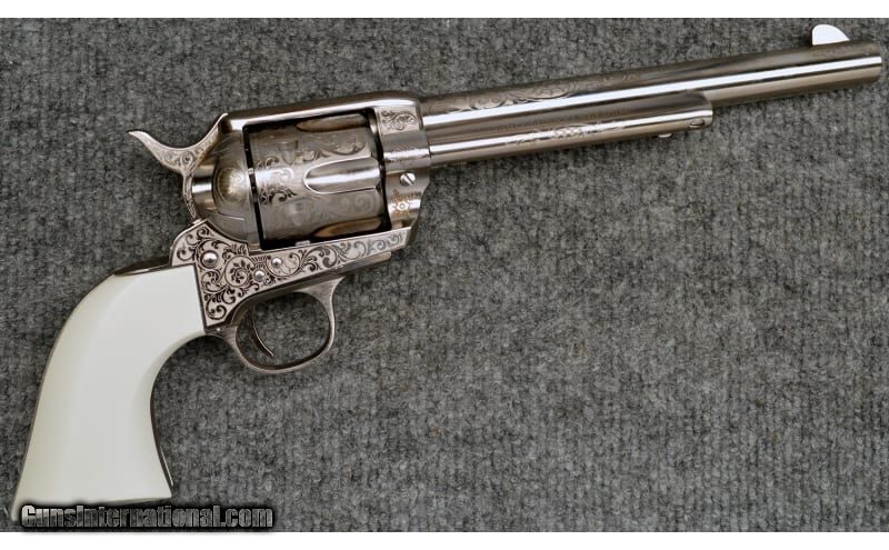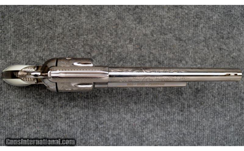 Description: For your consideration a Taylor's & Co. model 1873SA chambered in .357 Magnum. Roughly 75% of the gun is laser engraved with foliate scrollwork and fields of checkering. The finish is nickel plated. "GOD ? GUNS ? Freedom" is emblazoned on the ejector rod housing, while the backstrap reads, "OUTLAW LEGACY." This was manufactured by Pietta for Taylor's. .357 Magnum SOLD Chambers: 6 Metal Condition: Excellent Wood Condition: Excellent Bore Condition: Excellent Barrels: 7.5 Triggers: Smooth Face Weight: 2.75 lbs Sights: Iron Sights Item Location: Hamburg, PA |
