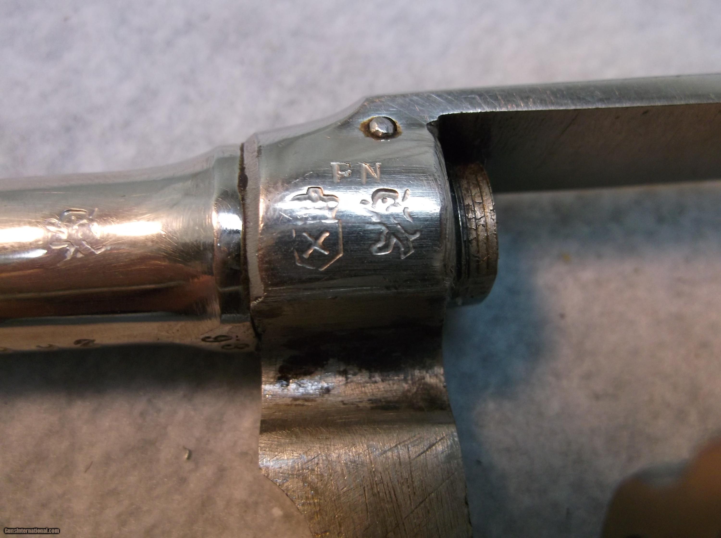 Description: Unbranded what I believe to be Spanish copy of a Smith and Wesson K frame revolver chambered in 32 Winchester CTG. Double action. Nickel plating is wearing in a few spots, Pachmayr grips. Bore looks good. Other than the caliber stamping on the barrel, there is "FN" (hard to see) stamped on the frame along with a lion and an "X" inside a shield with a crown on top. There are lion stamps on the cylinder and barrel also. I took this in on trade and haven't been able to find out anything about it. Our stock number A057, please use this number when referencing this item. Will ship anywhere in the USA to your FFL, buyer pays freight. SOLD Manufacturer: Unknown Caliber Info: 32-20 WIN Condition: Fair Item Location: Eugene, Oregon |