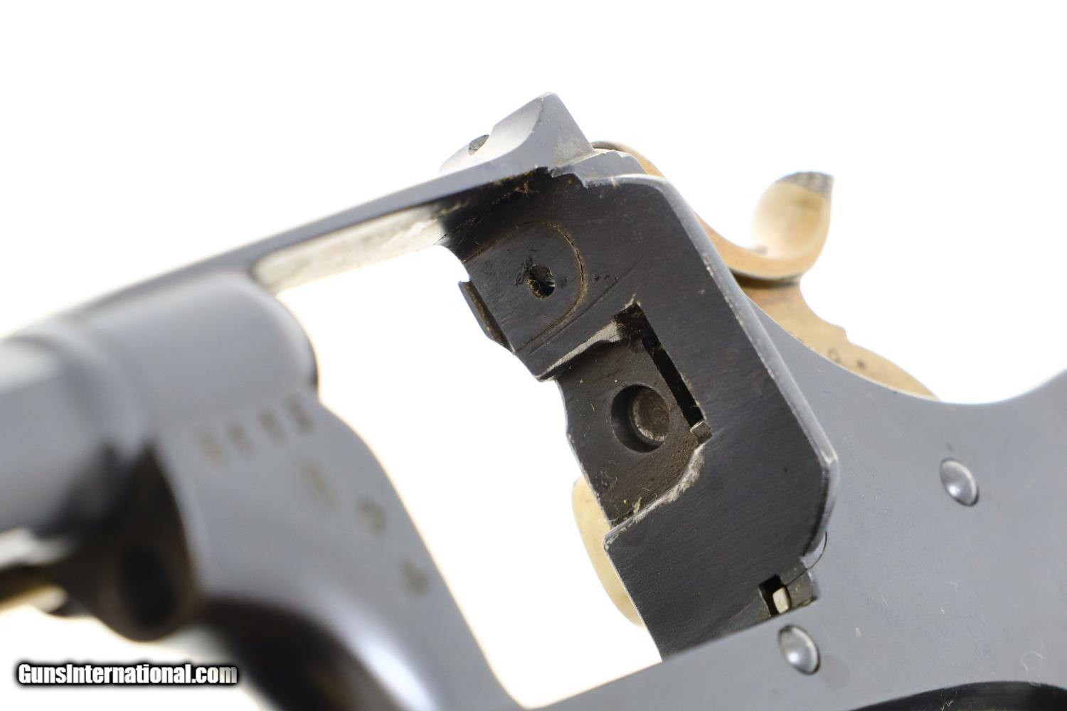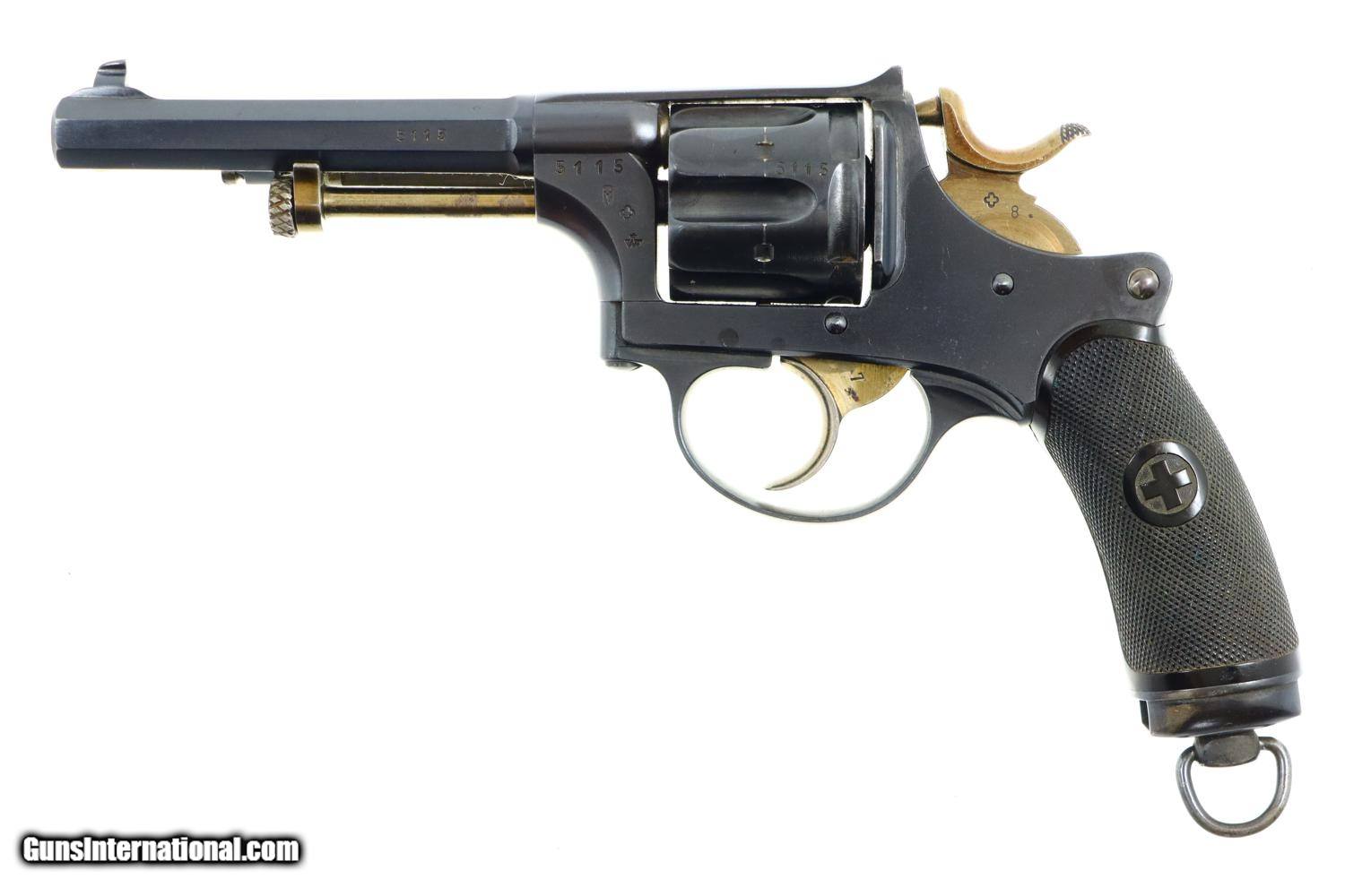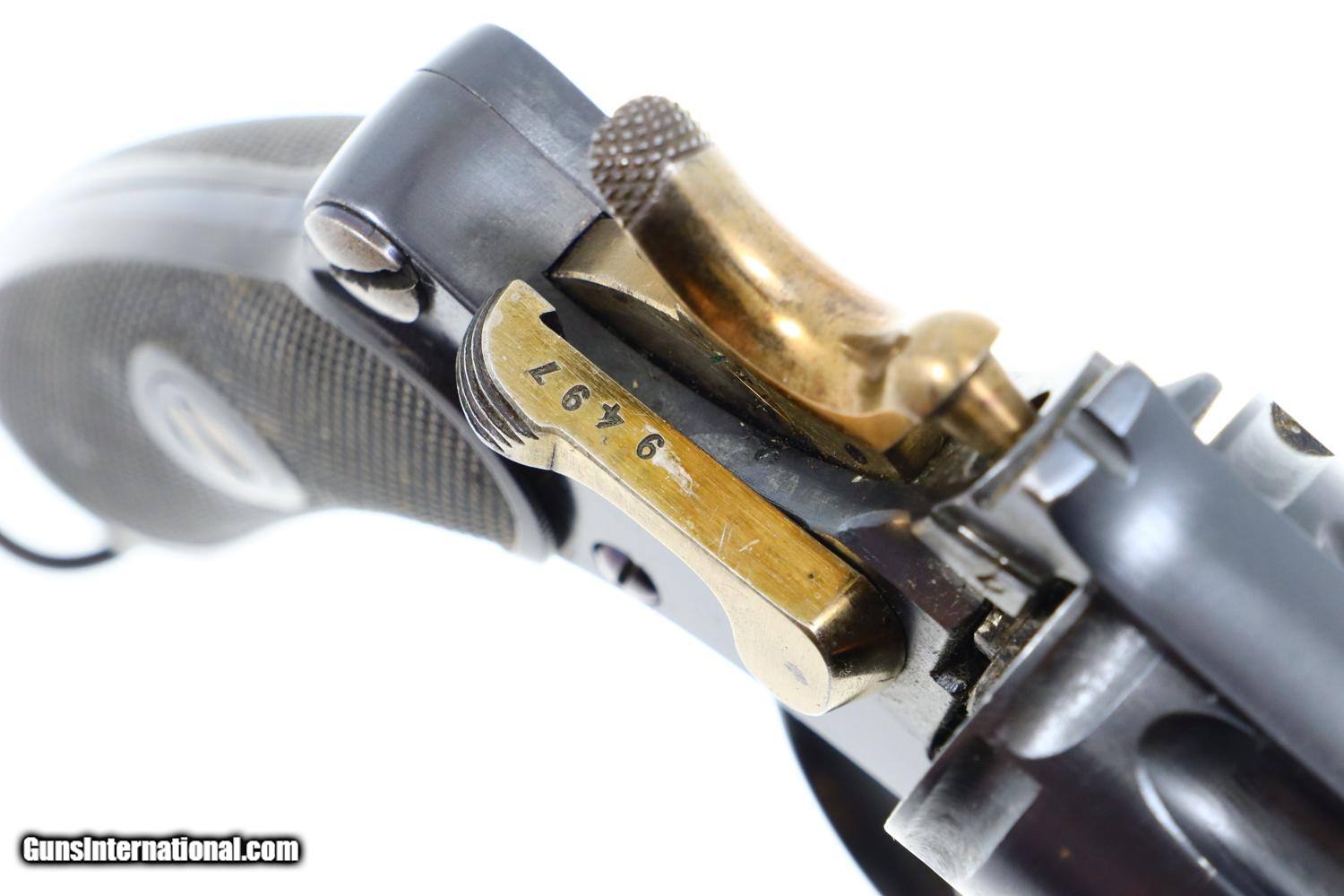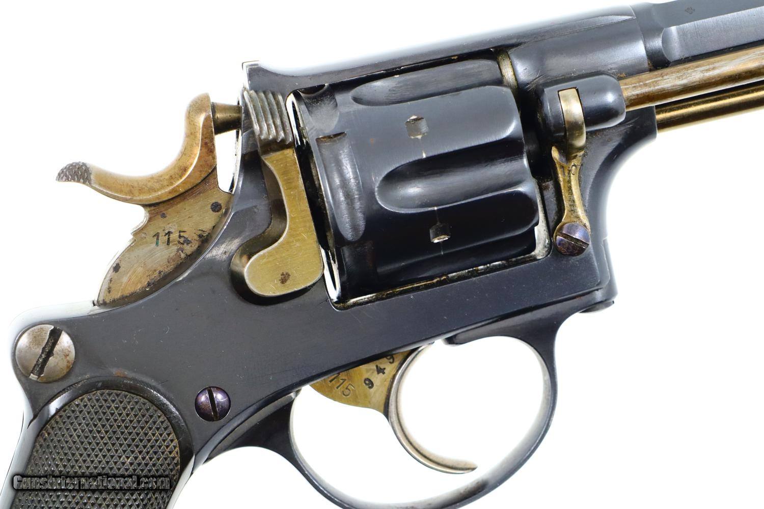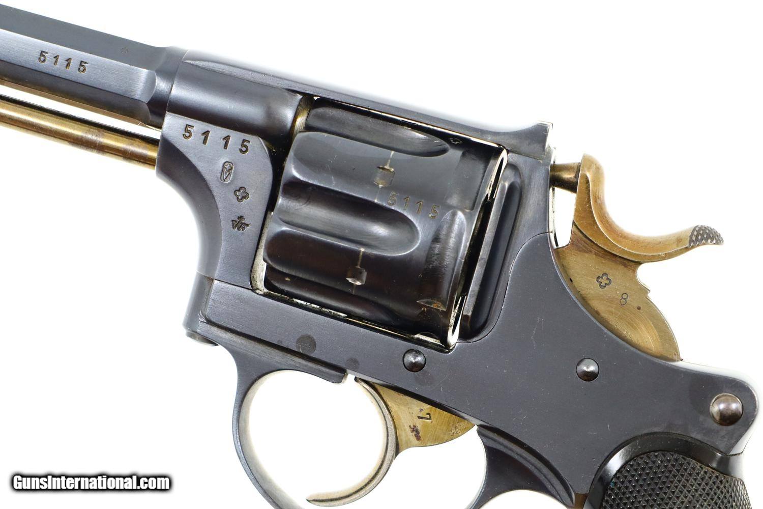 Description: Synopsis: W&F Bern, 1882, Swiss Military, 7.5mm, ANTIQUE, 5115, O-95 Description: Bern 1882 Swiss Military Revolver, caliber 7.5mm. Major and minor components are externally matching, most with assembly number “9497”. Correct hard rubber grips, rotatable lanyard ring. Condition: Excellent, with bright original rust blue. Minimal sharp edge/holster wear as imaged. Crisp grips with a few small areas of blunted checkering but no splits or cracks. All cylinders lock up tightly. Mirror bore. A excellent example of an early, classic, Swiss Military revolver, even better that it is an antique! ~~Insured shipping fee of $55; most packages shipped using FedEx 2nd Day.~~ SOLD Manufacturer: Bern Serial Number: 5115 Caliber Info: 7.5mm |