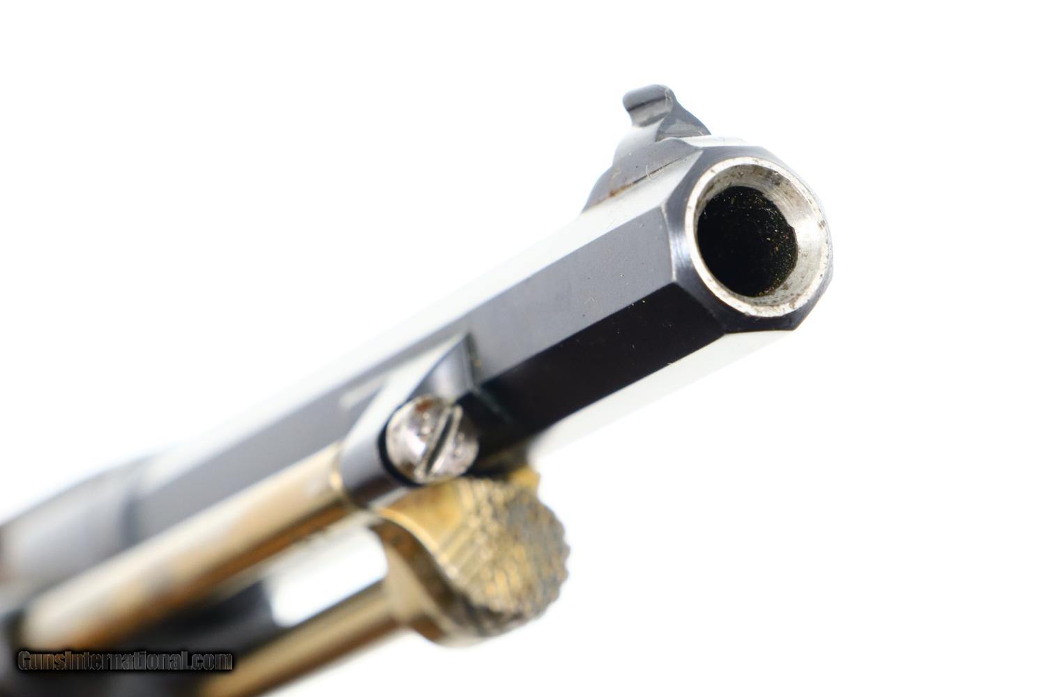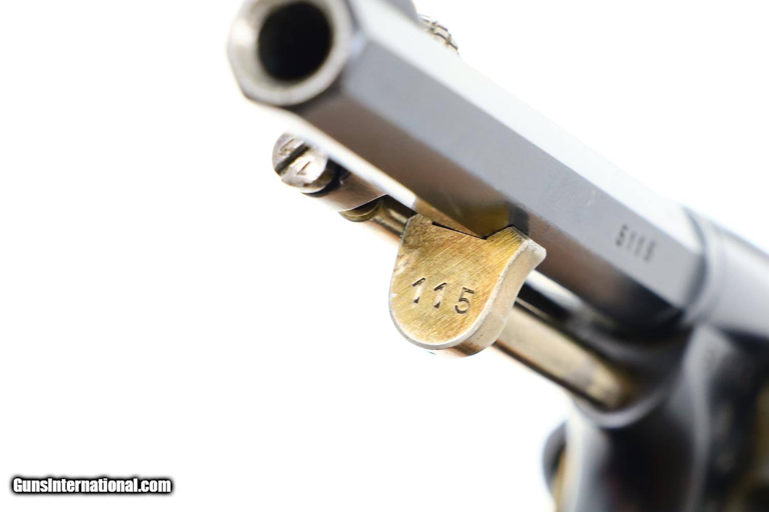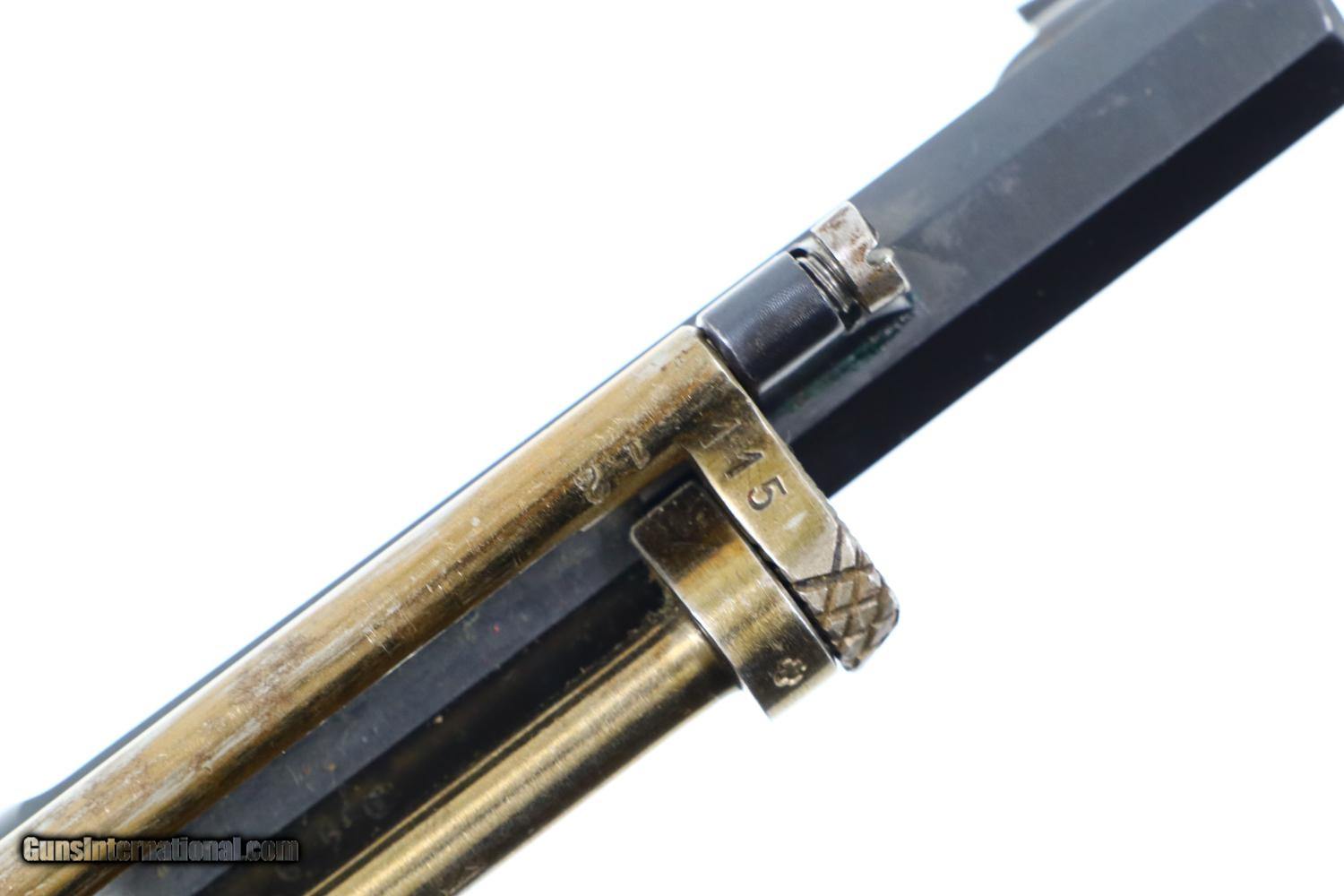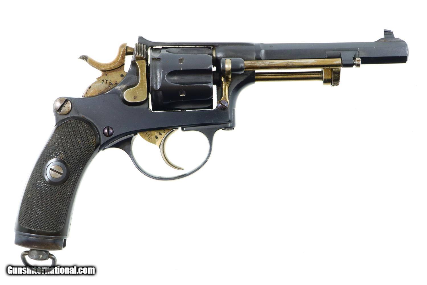 Description: Synopsis: W&F Bern, 1882, Swiss Military, 7.5mm, ANTIQUE, 5115, O-95 Description: Bern 1882 Swiss Military Revolver, caliber 7.5mm. Major and minor components are externally matching, most with assembly number “9497”. Correct hard rubber grips, rotatable lanyard ring. Condition: Excellent, with bright original rust blue. Minimal sharp edge/holster wear as imaged. Crisp grips with a few small areas of blunted checkering but no splits or cracks. All cylinders lock up tightly. Mirror bore. A excellent example of an early, classic, Swiss Military revolver, even better that it is an antique! ~~Insured shipping fee of $55; most packages shipped using FedEx 2nd Day.~~ SOLD Manufacturer: Bern Serial Number: 5115 Caliber Info: 7.5mm |