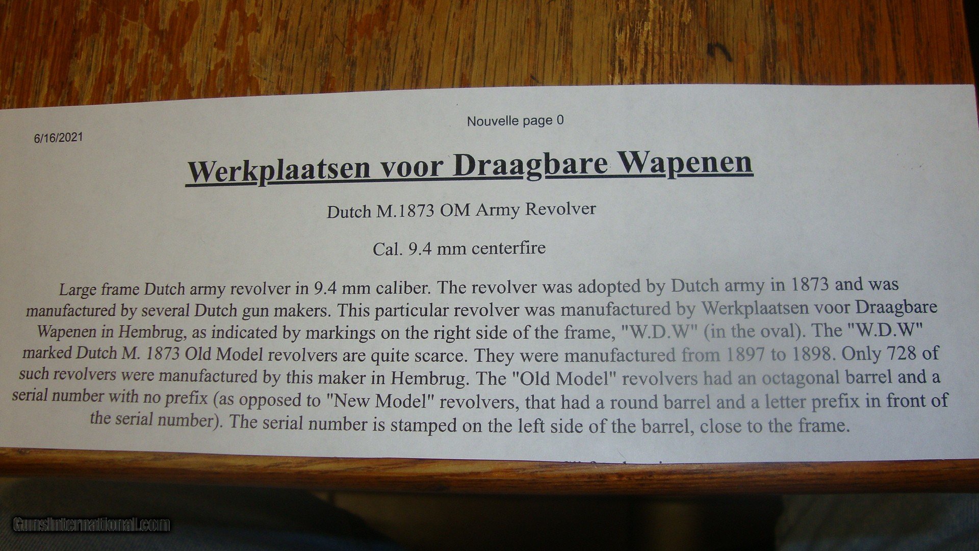 Description: RARE 1873 DUTCH MILITARY O M ARMY REVOLVER 9.4 MM CENTERFIRE MORE INFO AND PICS WE SHIP USPS PRIORITY WITH TRACKING C&R OK FOR THIS WEAPON. WE WILL TAKE PAY-PAL FRIENDS AND FAMILY ONLY FOR THIS ITEM. SHIPPING COST $ 30.00 LOWER 48 SOLD Curio/Relic: Yes |
