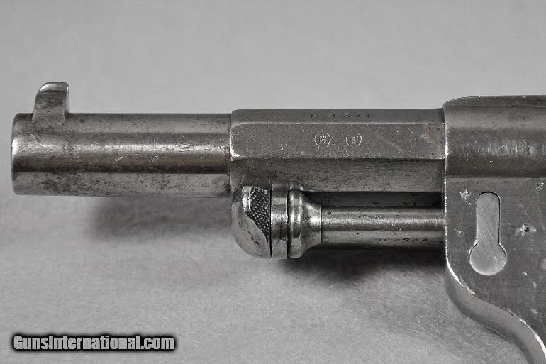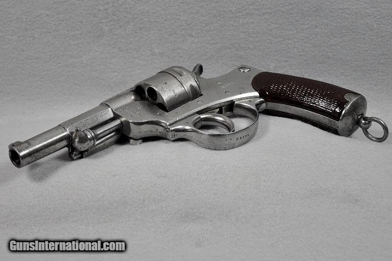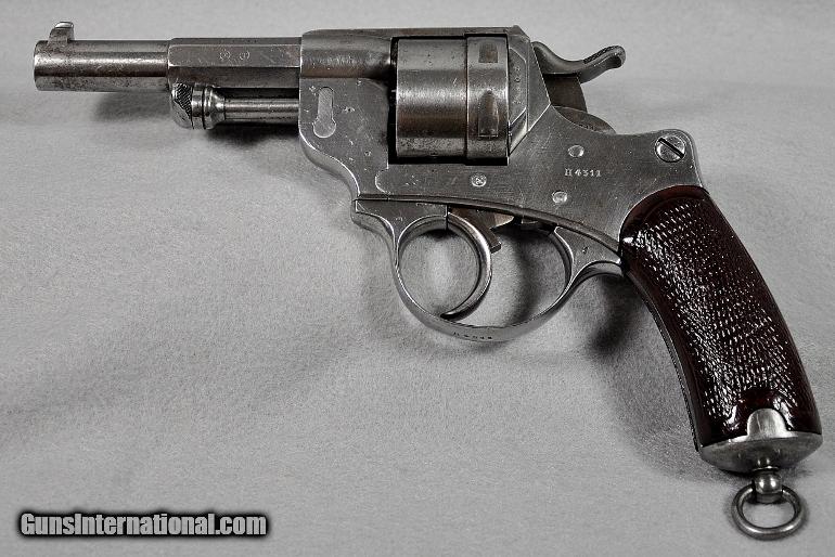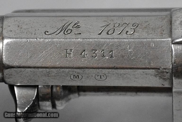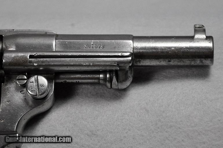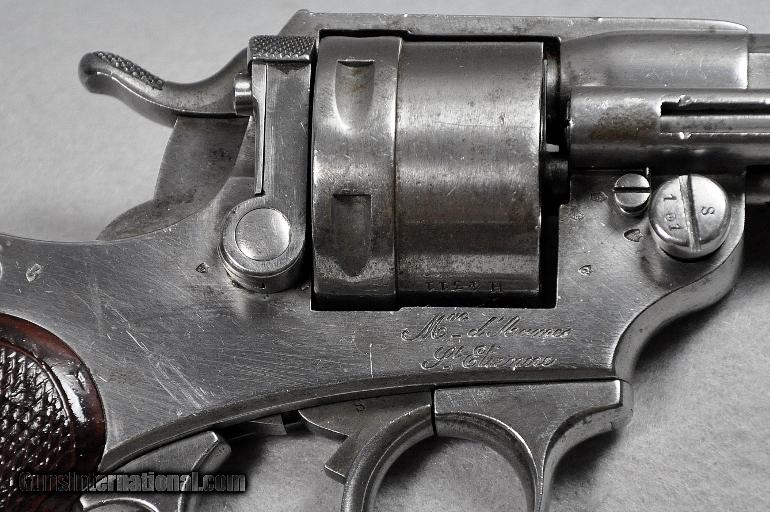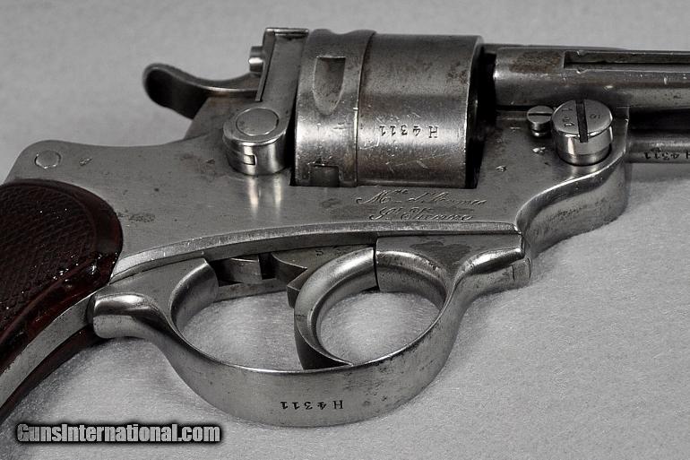 Description: Chamelot-Delvigne (French), ANTIQUE, revolver, Manufactured by "Mfg. d'Armes, de St. Etienne", Model 1873, caliber 11X17.8mmR, BRIGHT EXCELLENT BORE, s/n H4311 (mfg. first year 1873), correctly termed "Service Revolver Model 1873 Chamelot-Delvigne", manufactured for the military by the French state armory in St. Etienne, France from 1873-1887, VERY ADVANCED CONSIDERING WHAT THE AMERICAN MILITARY WAS ISSUED DURING THIS SAME EARLY MANUFACTURING PERIOD, IST DOUBLE ACTION REVOLVER USED BY THE FRENCH MILITARY, CONTINUED IN USE UP TO AND DURING WW I, Remains as originally finished in the white, scattered light/moderate tarnish on entire revolver, matching serial numbers, checkered wooden grips varnished over, THIS IS ONE EXTREMELY INTERESTING EARLY MILITARY PISTOL, mechanically perfect, tight, and solid as a rock, AS ARE ALL OUR ANTIQUE ARMS THIS ONE IS BEING SOLD AS A COLLECTORS ITEM ONLY, PURCHASER MUST AGREE TO HAVE IT CHECKED OUT BY A COMPETENT GUNSMITH IF HE INTENDS TO FIRE IT, Retail value $900.00, Sale priced at $695.00 Our firearms are best viewed on a desktop or laptop computer with at least a 15" high rez screen. Viewing on an I-phone, I-pad, or tablet just can't show the detail that our professional photographer exhibits in his photos. We have been in the firearms business for over 55 years under the same ownership. We are a Platinum dealer on GI. We are receiving up to 50 e-mails daily. All buyers are taken on a strict first come-first served basis depending on the date and time we receive their e-mail. We strive to describe all of our sale items accurately and fully and include professional quality photos of each item. We do our best to point out negatives (if any) regarding a sale item. Although we offer a 3-day, no questions asked, return policy it has rarely been used the entire time we have been in business. The first potential buyer who states that he definitely wants an item gets it. Those having questions who do not commit to purchase in their first inquiry will have their questions answered but may lose the sale if another buyer e-mails after they do and commits to purchase before we can get back to the first inquirer to answer their questions. This happens almost daily and disappoints a lot of people. If you see something you want- commit to buy it. You will not be disappointed. We cater to first time GI buyers. You can purchase from us with total confidence. We will guide you through the purchasing process if need be. We add guns and gun related items to GI virtually every day. WANT TO VISIT A GUN SHOW RIGHT ON YOUR COMPUTER? It’s as simple as 1, 2, 3........1.) Go to the GunsInternational homepage. 2) Look UNDER the search box on the homepage and CLICK DIRECTLY ON THE WORDS "Advanced Search (Help!)", (DO NOT ENTER INFORMATION INTO THE SEARCH BOX ITSELF). 3) Type “Maryland Arms Company” into the "Sellers Screenname" box and hit "enter" or click on the "Search" box at bottom of screen Over 100 guns and related items we currently have listed on GI will come up with photos and complete descriptions that are available for purchase right now. We keep our ads current. This stuffs for sale immediately. No fooling around wasting time trying to beat out other people. No stupid fees. Who has the time and money for that? That’s the beauty of GI. Tell all your friends. USA SALES ONLY. Thank you SOLD Antique: Yes |