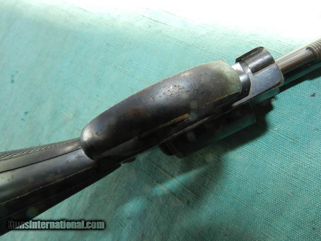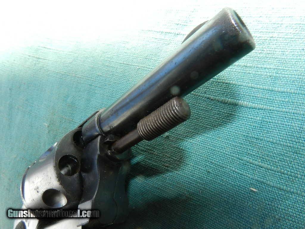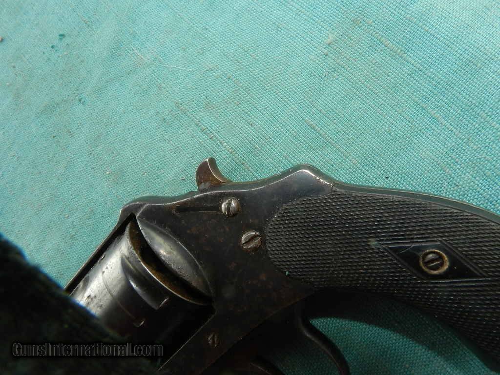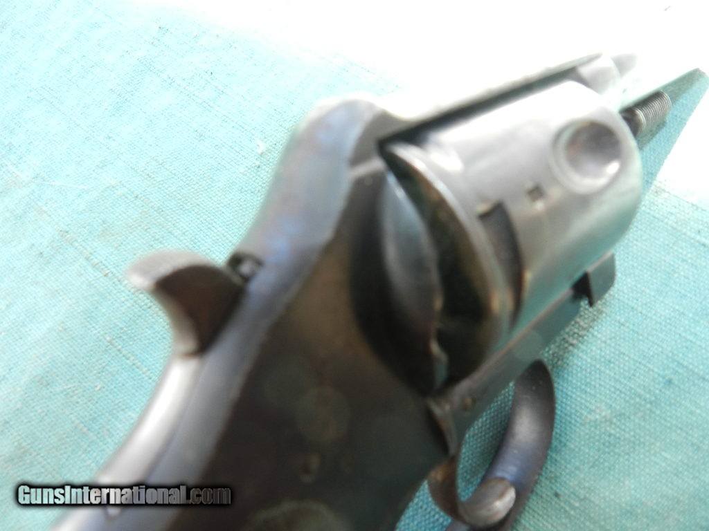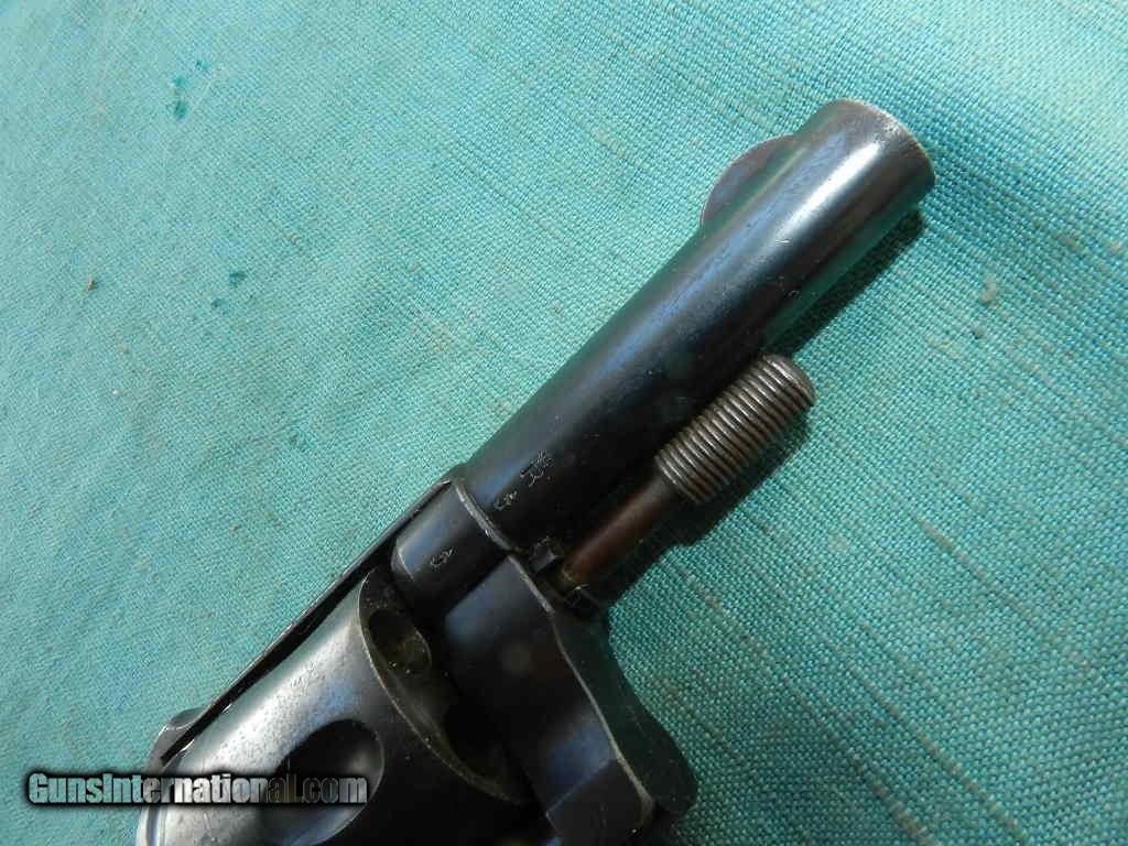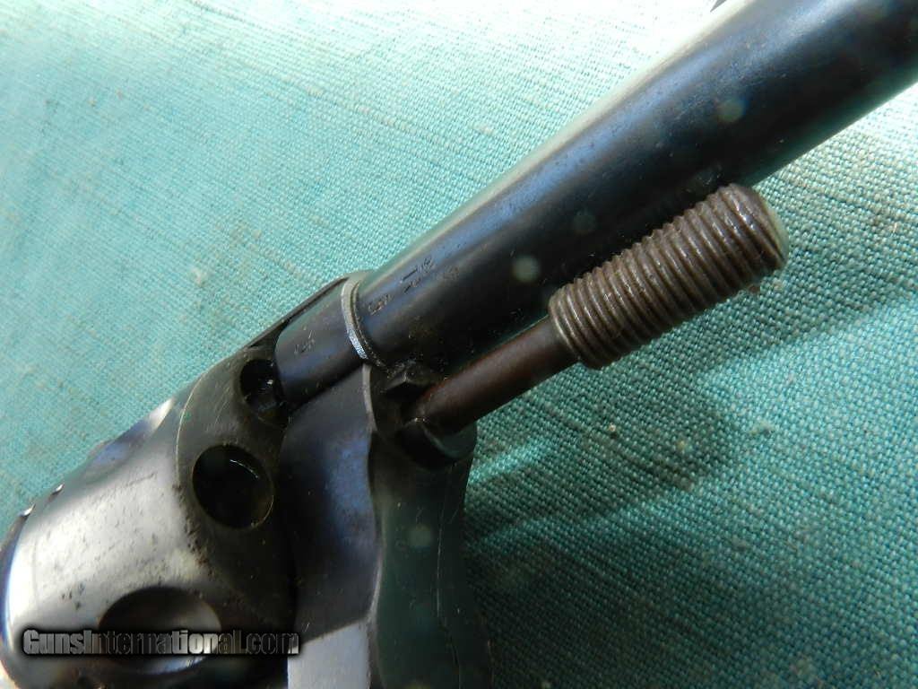 Description: An interesting turn of the century French Garant type revolver appearing to be an 8mm lebel caliber as best as I can tell., as the left side of frame has faintly marked 8mm. Mafg. by Cycles and Arms of St. Etienne. on the top strap, in very fine writing but clear. This fine gun has about 93% original arsenal blue, and a few spots of age corrion or frost., some near the muzzle from staying too long in a leather holster. Very good black hard rubber diamond checkered grips.The action is very good, strong mainspring, very good SA , and DA. he hammer is about hidden almost making this revolver a hide-away hammerles. The size of the revolver is about the size of a S&W 38 D.A. 3rd thru 5th model revolver. These guns were used by the French resistance in WWII. The cylinder swings to thw right to load and unload with a cyinder rod extractor. Bore on the 2 7/8" long barrel is excellent , shiny, and strong rifling.Check my inventory of rare grips, unusual gun parts, barrels and holsters. Shipping may be higher than stated as shippers raise their prices twice year without notice! When buying a gun always have it examined by a competent gunsmith before shooting. To buy a gun from me you must get a direct email for me, with details, and shipping cost. We don’t have a web site .I prefer money orders or a check. Item ships when funds come in. If you can only pay with a card let me know. I try to keep guns affordable, which means I make less money than most dealers. You won’t get altitude sickness, or nose bleed, with my prices! I consistently have the best selection of older guns If you attempt to buy, you must still contact us for details . Best to email to buy. Sometimes a local person can stop buy and purchase before the gun is removed. Sometimes not home to get calls. Some guns are required shipment to a gun dealer near you for a transfer to you when it arrives. Otherwise many older or black powder guns ship to your door. With the widest selection of older guns at great prices, We don’t have a store, and sell on the internet only. I’m easy to get along with. Thank You. SOLD Curio/Relic: Yes |