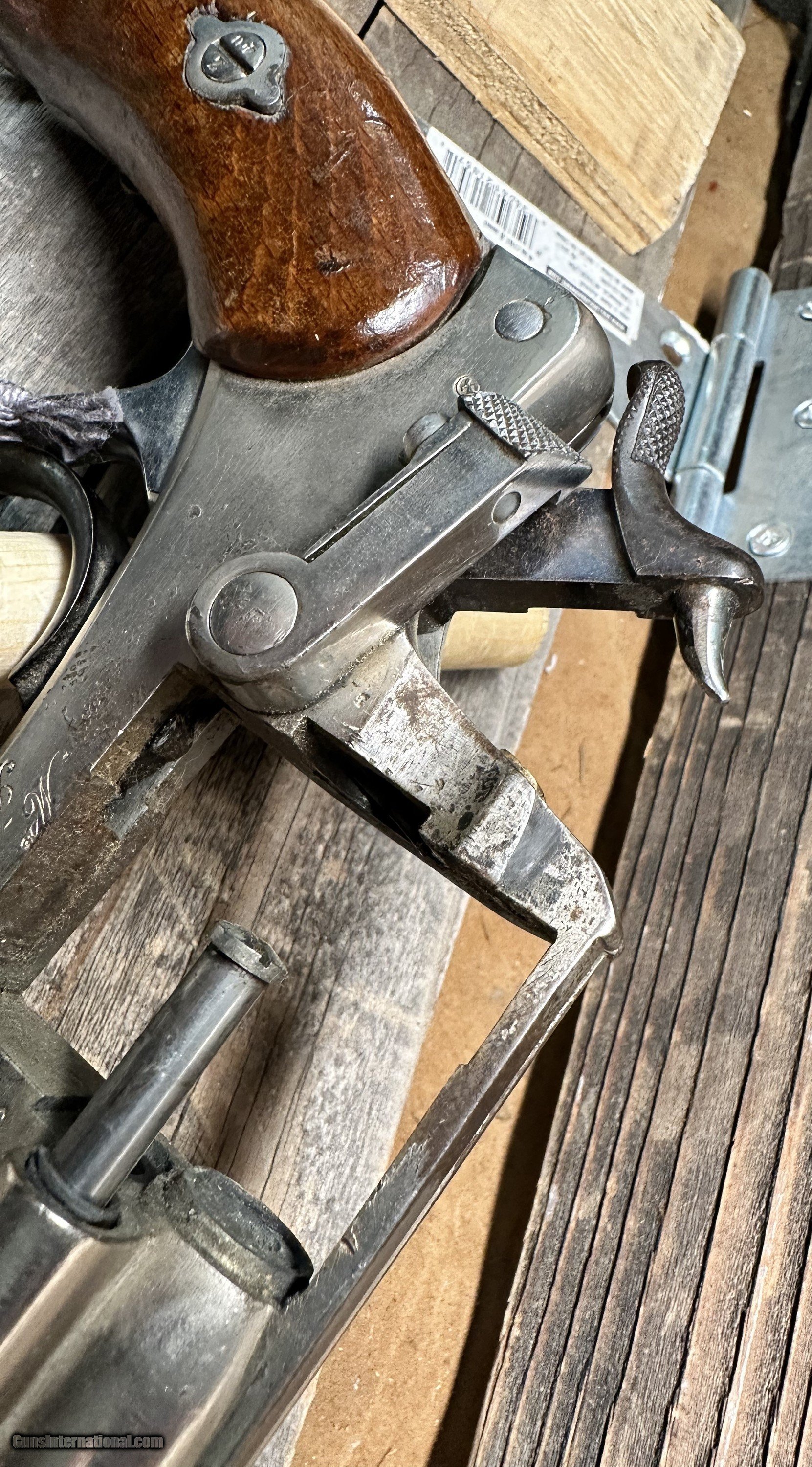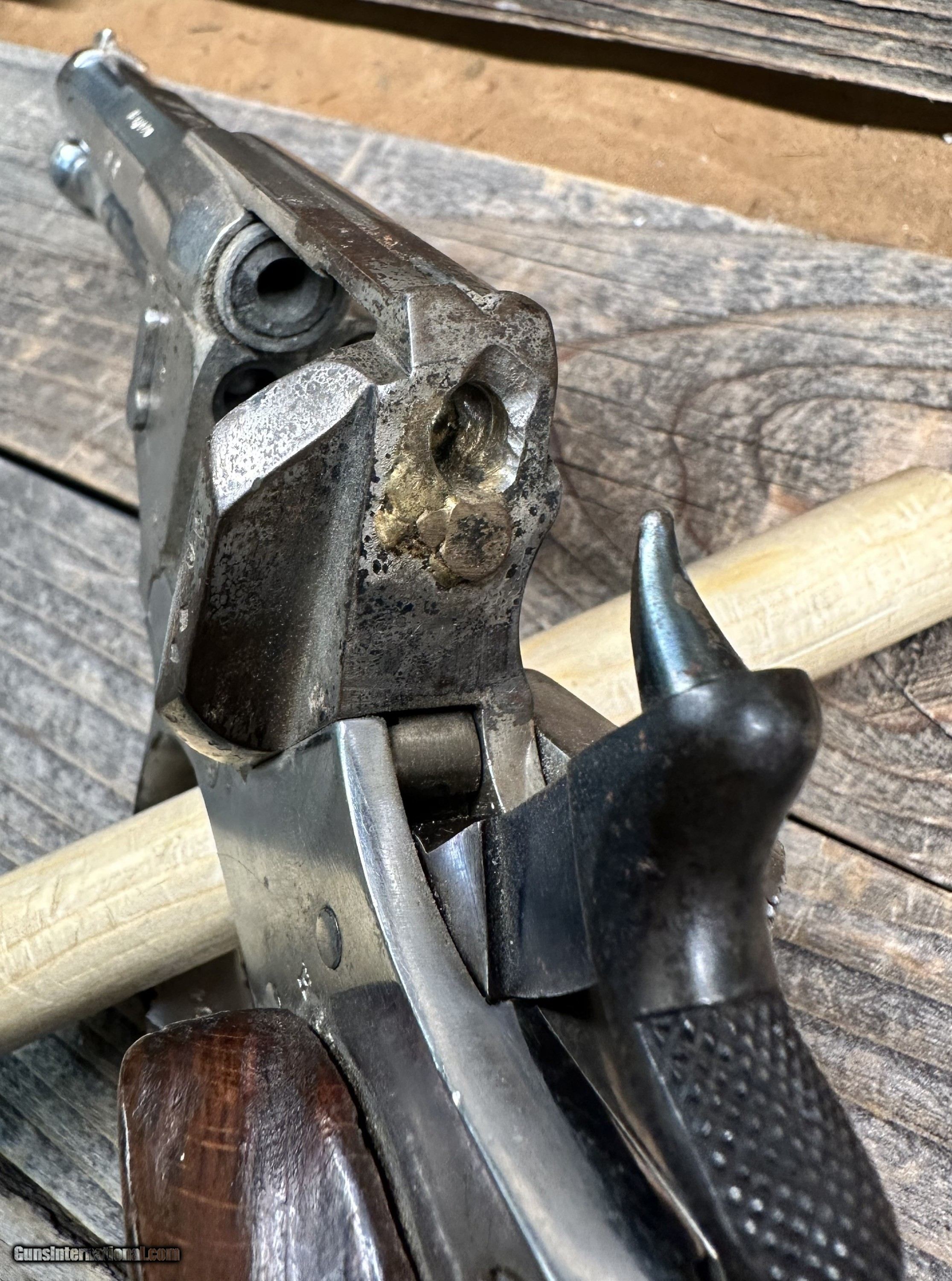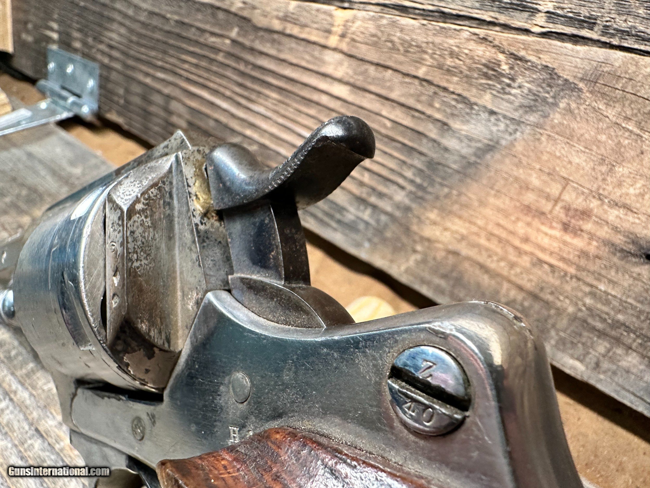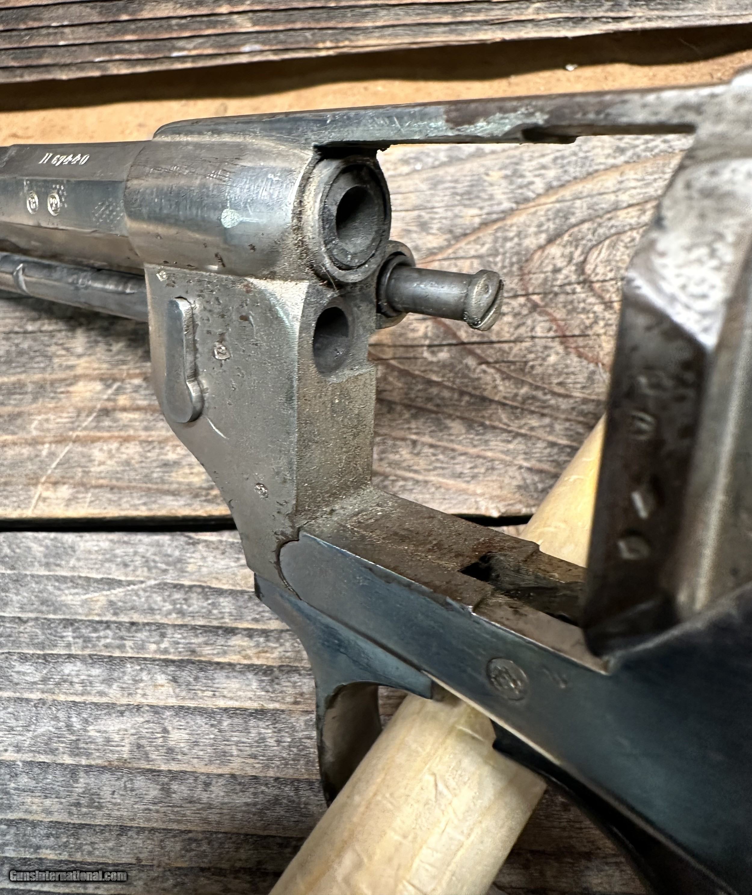 Description: MAS ST Etienne, Model 1873, .22 Conversion. Though this conversion is missing 3 of the cylinder inserts it is still incredibly interesting and looks like a fun piece of history. Internet sales are managed 10am to 6pm MST M-F. Our inventory listed for sale is not live, meaning just because you click “BUY NOW” doesn’t mean you have purchased the firearm. We consider a sale final once we have received payment. All our listings are also available for sale in our retail store. Shipping starts at $75 for long guns and $50 for handguns We ship to the contiguous United States and Alaska, with some state law restrictions. SOLD Antique: Yes Manufacturer: MAS Model: 1873 Serial Number: H67440 |