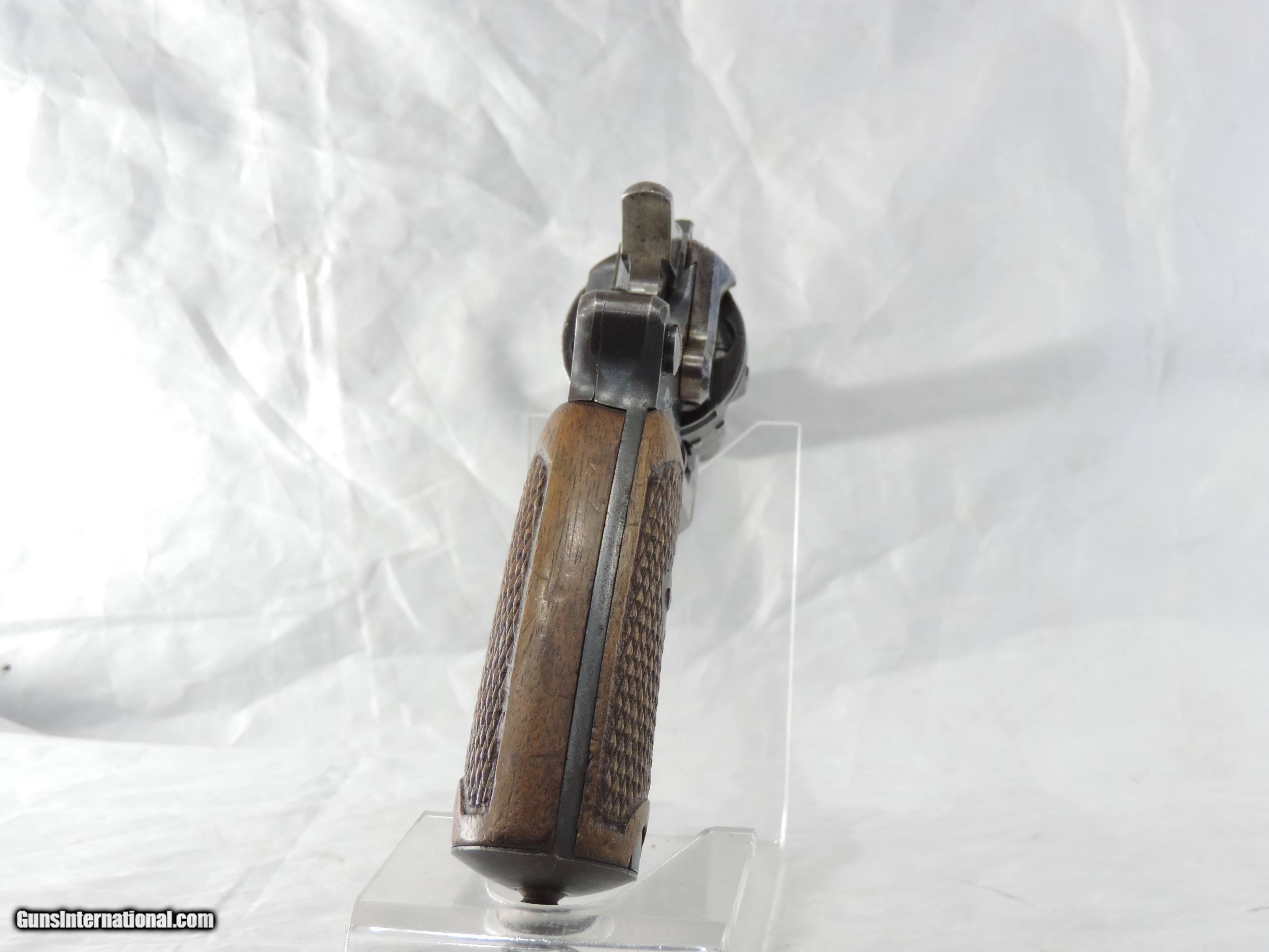Description: INV. 8966 PRISTINE ST. ETEINNE MDL 1892. CAL. 8MM LEBEL REVOLVER SER. H66345. MFG. 1914. THIS 108 YEAR OLD "ARSENAL QUEEN" IS IN AWESOME CONDITION. IT HAS RETAINED 97-98% OF THE ORIGINAL BLUE FINISH. THE LITTLE LOSS THERE IS, IS DUE TO SOME VERY SLIGHT SHARP EDGE SILVERING. THERE IS NO RUST SCRATCHES OR RUB MARKS JUST A FEW SCATTERED PIN PRICKS ANYWHERE. THE GRIPS STRAP SHOW NO SIGN OF GRAYING.THE HAMMER, TRIGGER AND EJECTOR ROD ARE IN THE WHITE AND SHOW SOME VERY SLIGHT TONING. ALL PARTS ARE CORRECT. THE CHECKERED WOODEN GRIPS ARE AS PERFECT AS THE GUN, NO SPLITS, CHIPS OR DINGS ANYWHERE. THE RECOIL SHEILD, CYLINDER FACE AND FORCE CONE SHOW VERY LITTLE USE. THE BORE IS AS PRISTINE AS THE REST OF THE GUN, MIRROR BRIGHT WITH RAZOR SHARP RIFLING. THE GUN LOCKS UP TIGHT, INDEXES AND FIRES PERFECTLY. THIS "ARSENAL QUEEN WOULD PLEASE THE MOST CRITICAL COLLECTOR AND WOULD BE A REAL FUN AT THE RANGE. VERY MODESTLY PRICED......$995.*** ***SATISFACTION GUARANTEED. To purchase this firearm or if you want to request more information contact us at: Email ckguns[at]ymail[dot]com Phone 201-512-0002 Cell 201-575-6838 FAX 201-215-4759 We accept most major credit cards. Prices shown are Discounted 3% for Cash or Check. The buyer must be familiar with all the laws governing the purchase and the ownership of firearms in their own city and state. The Yankee Armorer, Inc is not responsible for any failure to comply with or observe these laws. The Yankee Armorer, Inc will only ship after full payment and receipt of all required documents. Shipping: Add $35.00 for handguns, $45.00 for long guns. New Jersey buyers are subject to a 7% sales tax. The Yankee Armorer, Inc offers a 3 day inspection period with full refund upon return of intact firearm and in the original condition. The Yankee Armorer, Inc offers a no interest lay away program - 25% down; 25% in 30 days; 25% in 60 days; and full payment in 90 days. Any violation of this policy is subject to restocking and forfeiture of all payments. Any variation from this policy must be agreed to in advance. Unshipped Cancelled sales are subject to a 20% restocking fee. Be advised that all firearms sold by The Yankee Armorer, Inc. or the Gun Exchange, LLC (SELLER) are sold as collector’s items. They have not been fired or tested for safety and must be examined by a license gunsmith prior to use. By purchasing any item from the (SELLER), you are agreeing to hold the (SELLER) free from any damages or lawsuits of any nature. Any item left for transfer or storage will be charged to $25.00 per month, per item from the day of its receipt. Any variation from this policy must be agreed to in advance. Store hours 10:00 am to 5:00 pm Tuesday -Saturday. It's always best to call for appointment. Store 201-512-0002, cell 201-575-6838. SOLD Curio/Relic: Yes |
