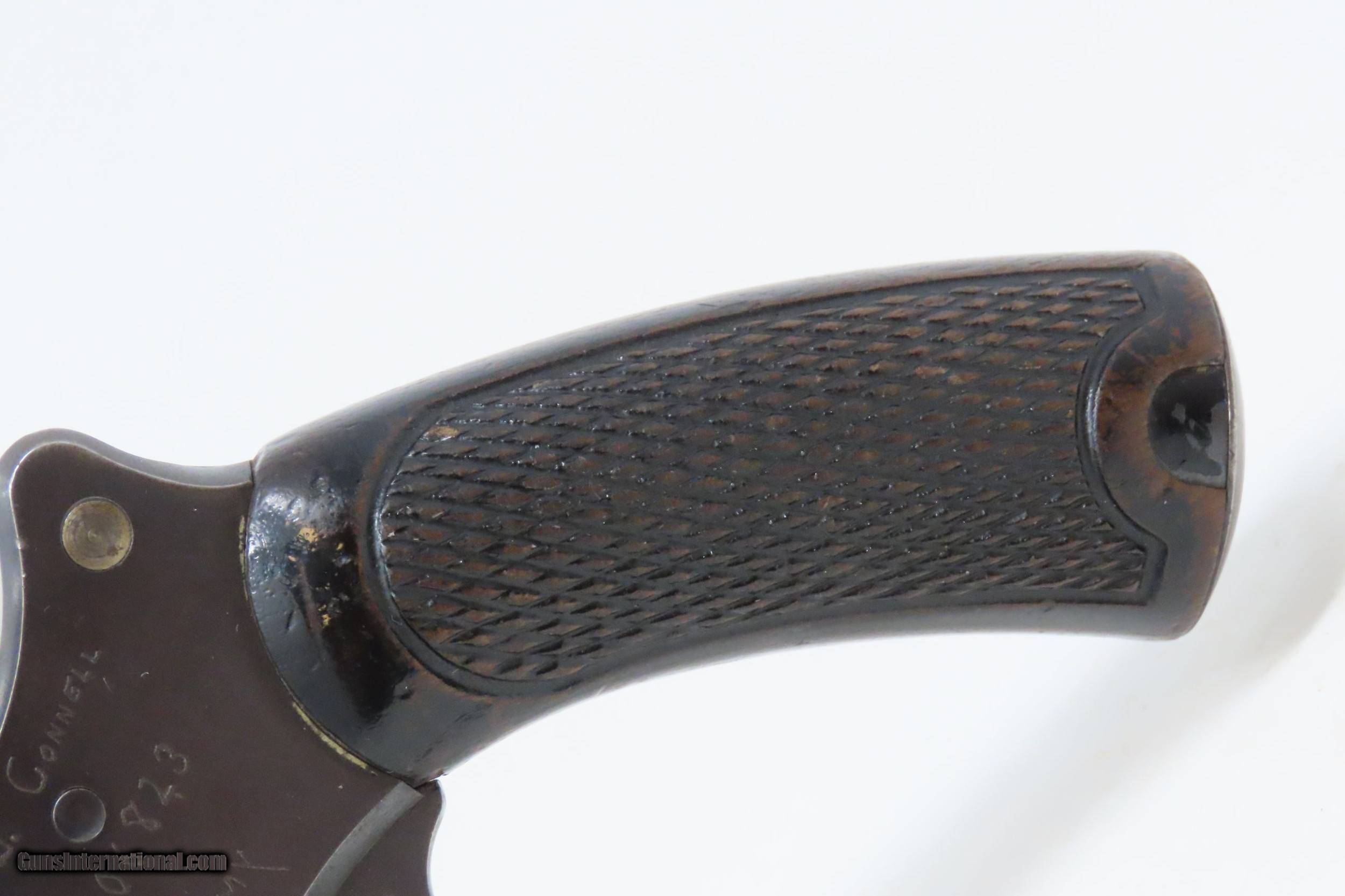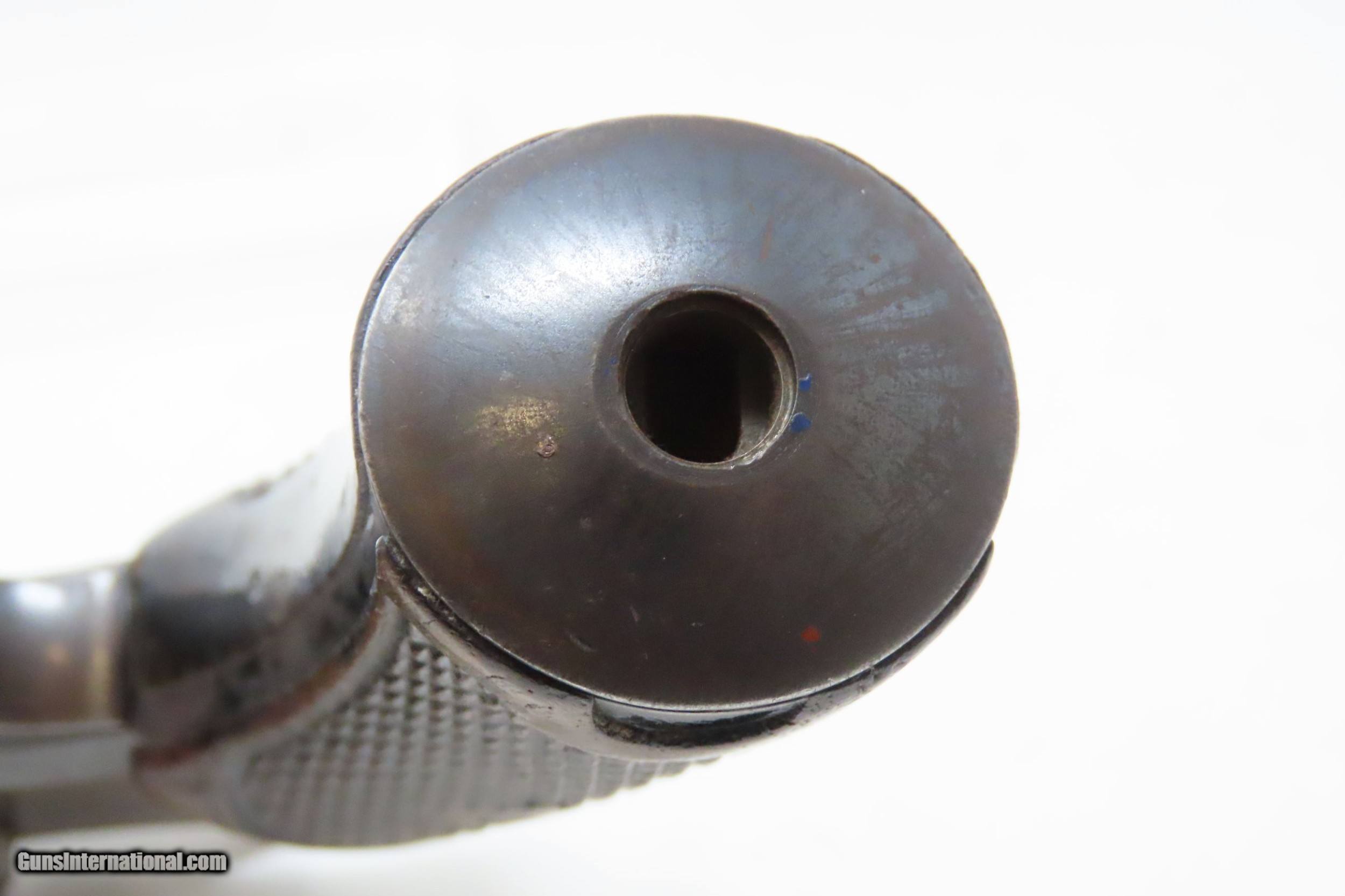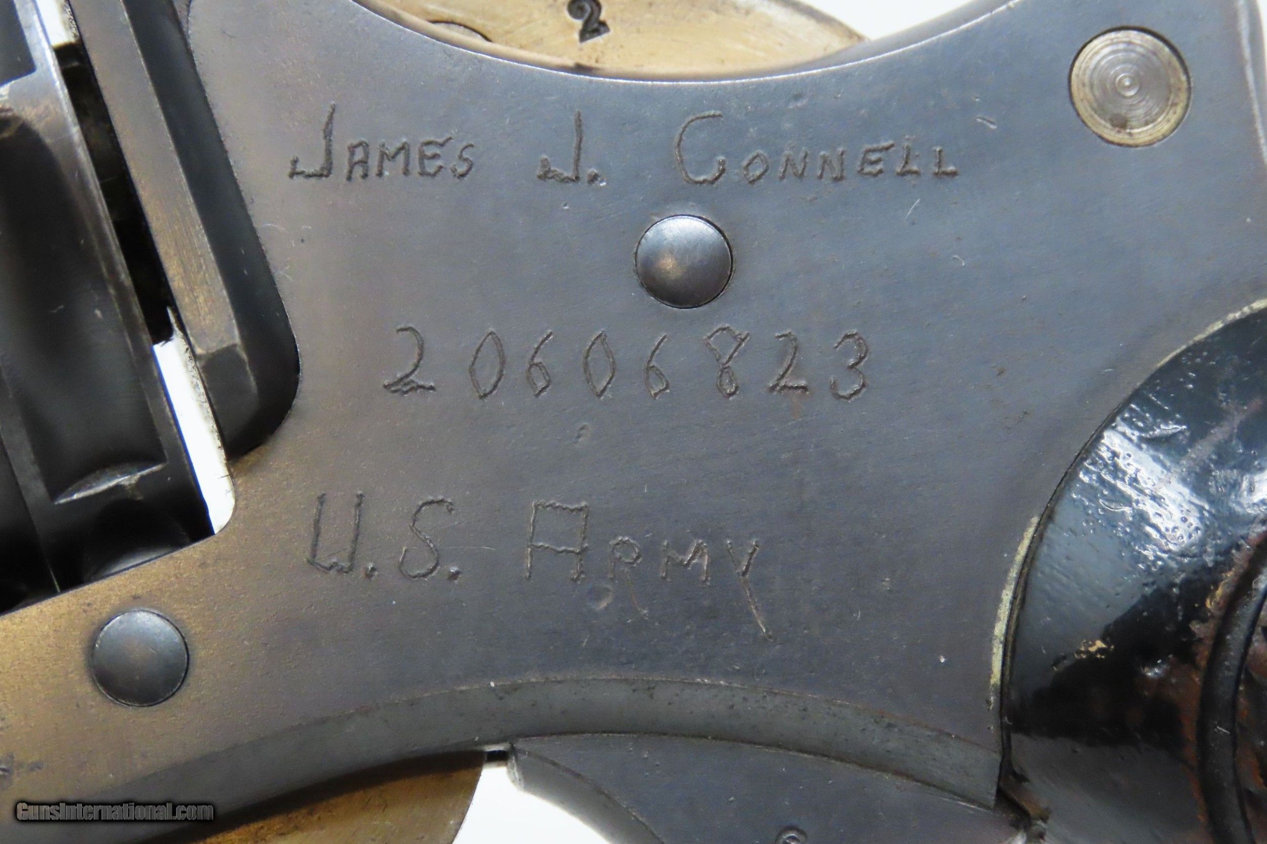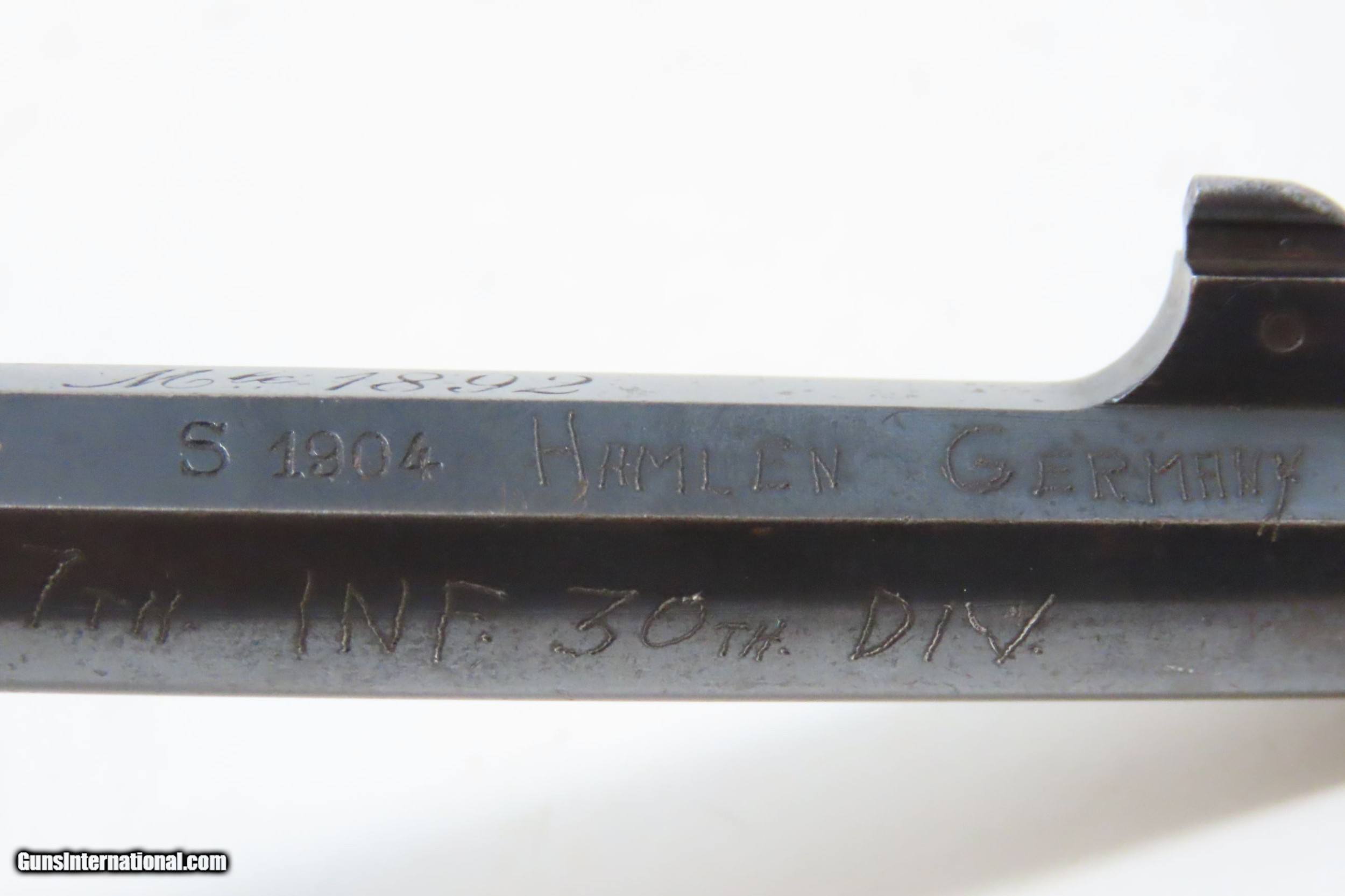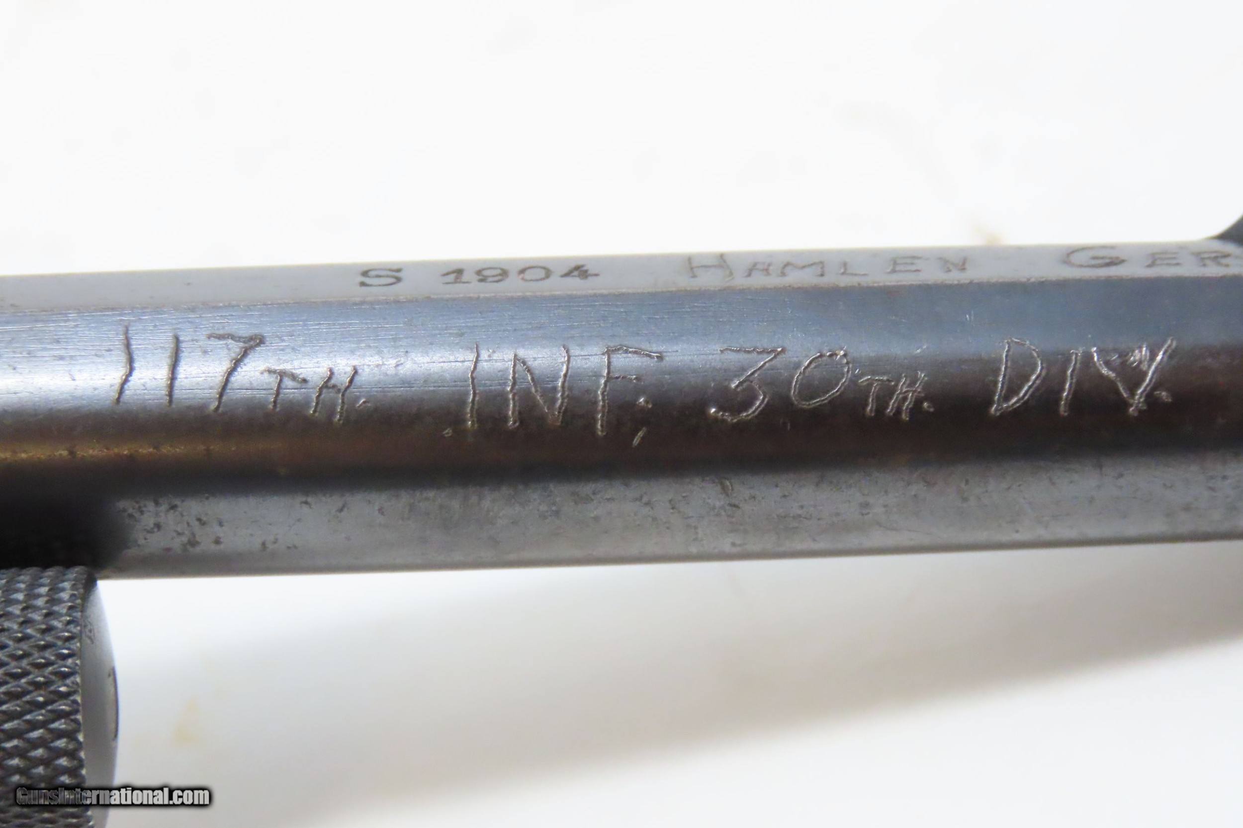 Description: WORLD WAR II BRINGBACK French ST. ETIENNE Revolver Hamelin Germany 1944 C&R 117th INFANTRY, 30th DIVISION Revolver Here we present a French Model 1892 Revolver, made in 1904 at the armory at St. Etienne. The Model 1892 was the standard issue sidearm for officers in the French military during the First World War. This one has been engraved by James J. Connell of the 117th Infantry Regiment, Part of the 30th Division—known as “Old Hickory” in honor of President Andrew Jackson. It also bears the place name of “Hamlen, Germany” which refers to the town of Hamelin where he picked up this souvenir as he and the 117th captured and cleared the town on April 7th, 1945. This was almost certainly a captured firearm from the Great War that was either a trophy for a German or perhaps still in use in Germany for a rear echelon soldier or prison guard. It also looks like Connell engraved his dog tag number and “U.S. Army” along with the date of 1944, which is probably significant of the year that he entered Europe during the war. The German nickname during World War II given to this division was "Roosevelt's SS". The 30th Infantry Division was regarded by a team of historians led by S.L.A. Marshall as the number one American infantry division in the European Theater of Operations, involved in 282 days of intense combat over a period from June 1944 through April 1945. It landed at Omaha Beach, Normandy, on June 11,1944, five days after the initial D-Day landings of June 6, 1944. The overall condition is fine. Original finish. The action is excellent. The bore is shiny bright with sharp rifling. The grip is solid. Lanyard ring is absent. This firearm is classified as a Curio & Relic. Barrel is 4-5/8 inches. Caliber: 8mm Lebel Overall condition as seen in photos. Very Fast. Very Safe. FREE SHIPPING. Will need to be sent to your local FFL or C&R licensee. This firearm is classified as a Curio & Relic. Guaranteed AUTHENTIC & Includes CERTIFICATE OF AUTHENTICITY. ancestryguns $1600 #217520 SOLD Curio/Relic: Yes |