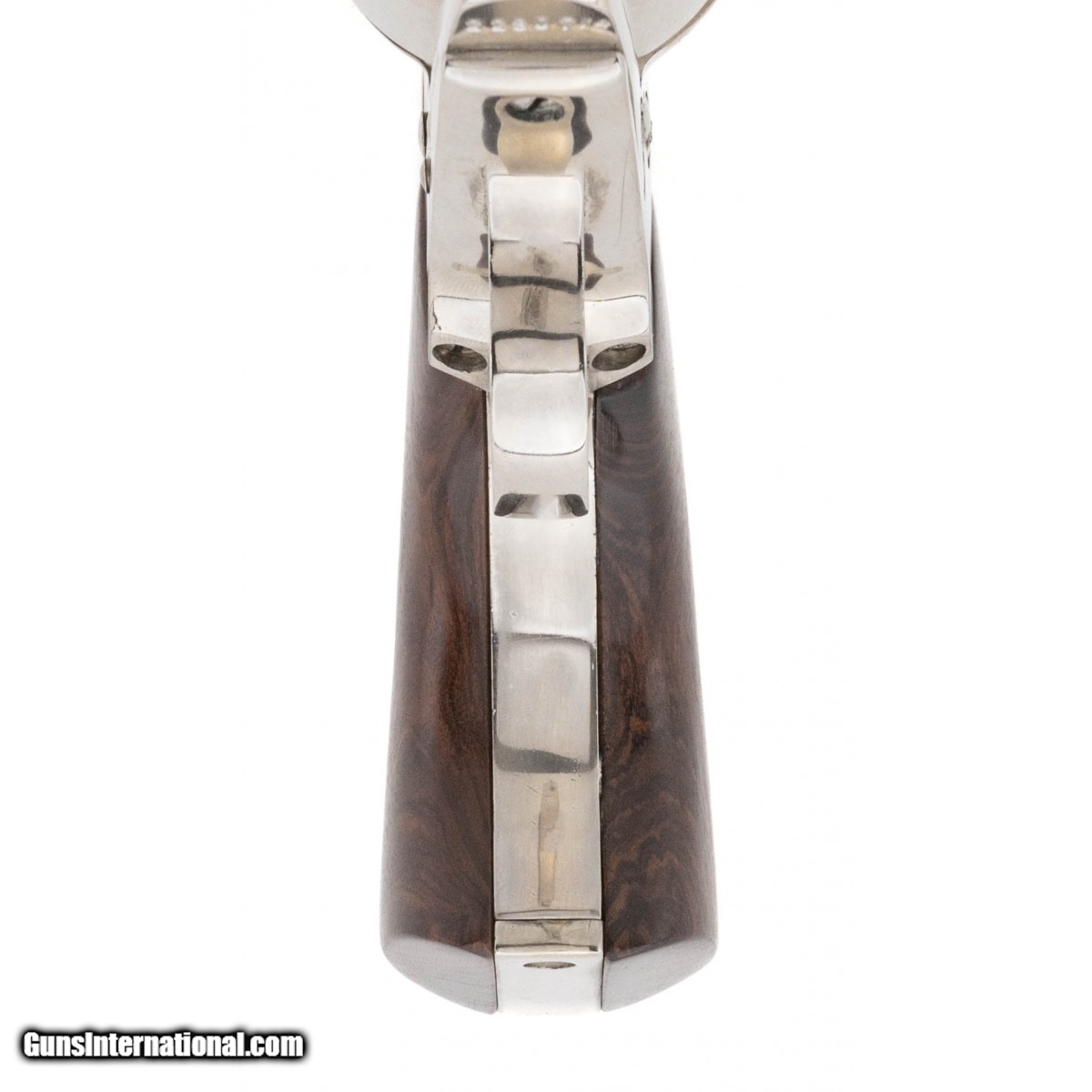 Description: " SN: 22807/4. W. German single action revolver made by JP Sauer for Hawes. Has a 6"" barrel and nickel finish. Excellent condition. SOLD |