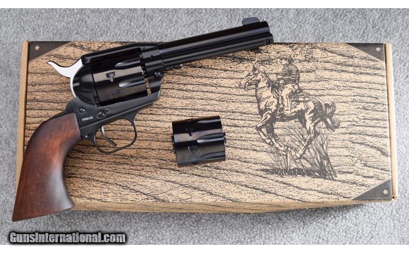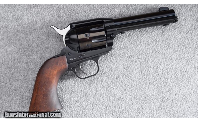 Description: This Hermann Weirauch Small Bore Bounty Hunter Combo remains in excellent overall condition showing little use. Complete with original box, 8 round .22 Mag. cylinder and .22 LR cylinder. Gun has a light cylinder drag ring and a tiny scratch on ejector rod housing. Very nice gun. .22 MAG SOLD Metal Condition: Excellent Wood Condition: Excellent Bore Condition: Excellent Barrels: 4 3/4 Triggers: Factory - Single Action Butt Pad: Uncheckered Walnut Grips Weight: 40 oz Sights: Blade Front - Integral Notch Rear Item Location: Wheeling |
