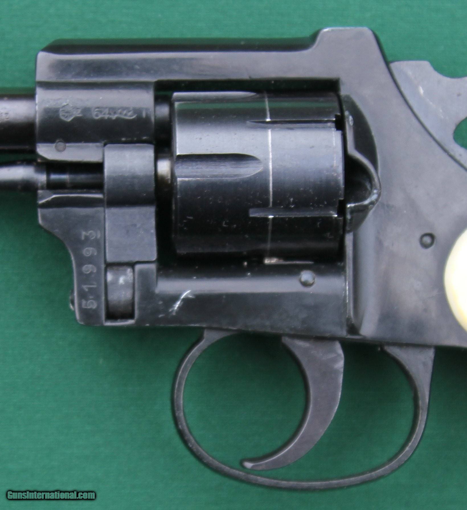 Description: This RG-24 is a single-action/double-action, six shot revolver, with a 3 ½ inch barrel, swing-out fluted cylinder, 3/8-inch-wide hammer, a 3/8-inch-wide smooth-face trigger, original plastic checkered grips, and fix front and rear sights. The gun was manufactured in Germany (stamped on the barrel) sometime before 1968 when, due to U.S. importation restrictions. the company opened production operations in Miami, Florida under RG Industries. The overall condition of this gun is about 98 percent, pretty good for a 50+-year-old gun. It retains 99 percent of its original blued finished. There is a cylinder lock scar completely around the cylinder, but that does not affect the operation of the gun. On the left side of the revolver, on the frame, just below the front of the cylinder, there is a ¼ inch scratch. The original plastic grips are in excellent condition - 98 percent. There is a touch of wear on the thumb rest on the left-side grip panel. There is no damage or wear to the checkering. The photos are high resolution, so zoom to see details. Contact me for additional photos or even higher resolution versions the posted pictures. Buyer pays $25 USPS Priority mail and $5.95 insurance. Virginia buyers must pay 5.3% sales tax. The fastest way to get this gun is to pay with USPS (U.S. Postal Service) money orders, as they are like cash. I will ship the revolver immediately upon receipt of a USPS money order and an FFL. I will also accept a personal check or other type money, as well as bank checks and cashier's checks, but I will hold the gun until it clears my bank; this includes bank checks and cashier’s checks. I do not accept credit cards, debit cards, or PayPal. Check or money order must be made out to Jerry Pownall or Barboursville Arms. Price: $300.00 Contact Seller |