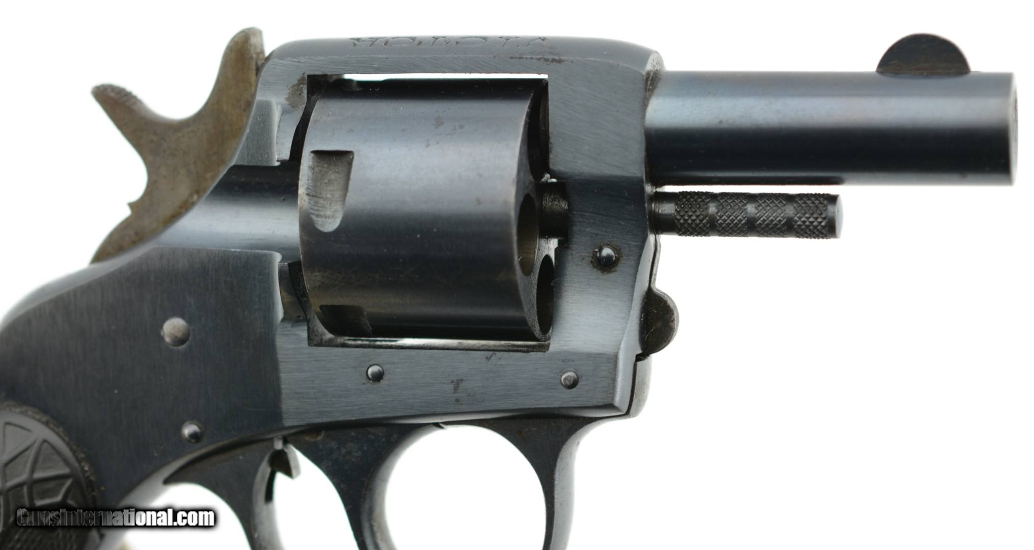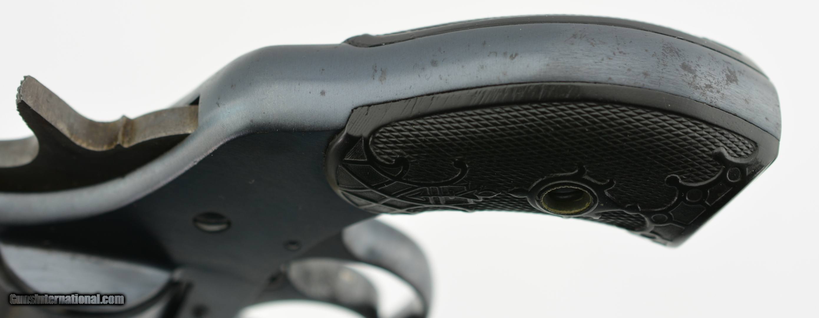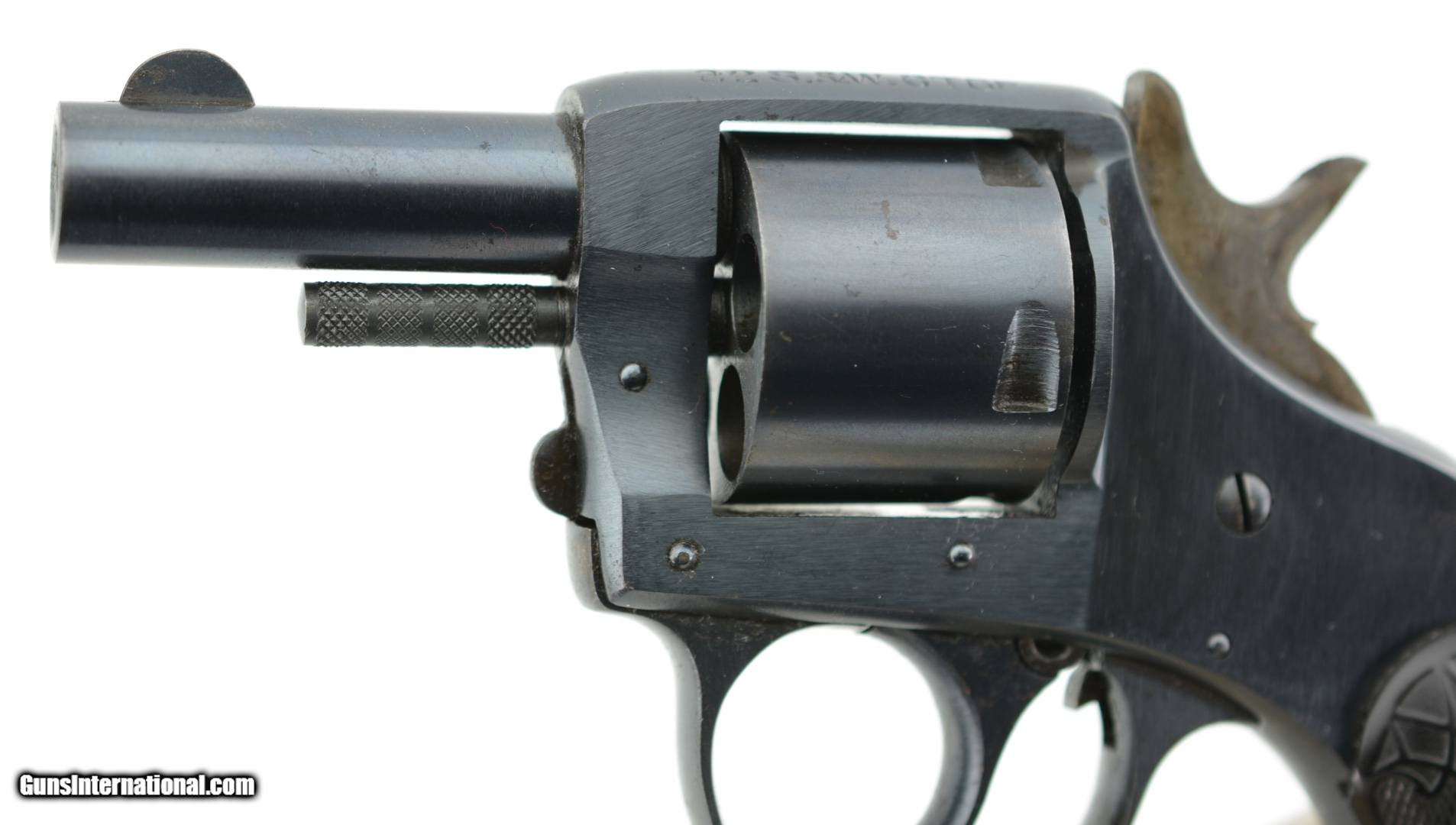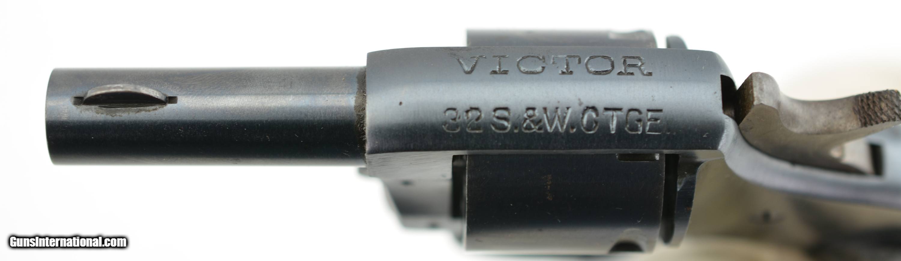 Description: Serial #117677, 32 S&W, 2" round barrel with a bright, excellent bore. This is a late model, medium frame, Victor revolver manufactured by Harrington & Richardson from approximately 1913 to 1936. Most often encountered with nickel finish this scarce blued example is in excellent condition retaining about 97-98% of the original bright blue finish showing some faint thinning and a few freckles on the cylinder, and the triggerguard and backstrap. The hammer shows smoky case-hardened colors and the markings remain crisp. The black checkered hard rubber crown motif grips remain in excellent condition and are numbered to the gun. The butt is marked with "H. & R Arms Co. / Worcester. Mass. U.S.A." with the serial number on the inside of the grip strap and on the inside frame under the grip. Single action does not currently hold but the double action seems to function well mechanically with very good timing and lock-up. An excellent example of this little pistol. FFL or C&R; SOLD |