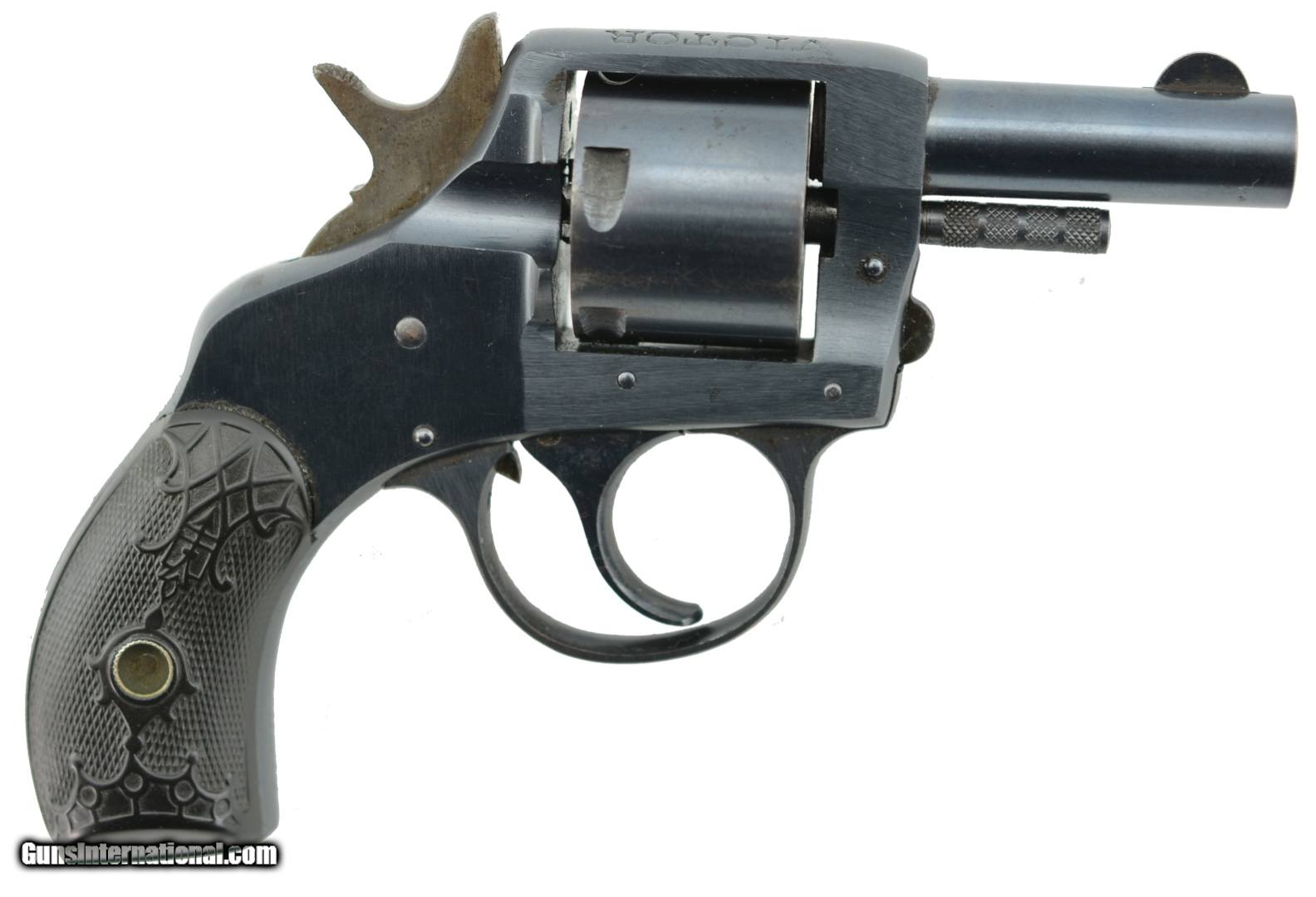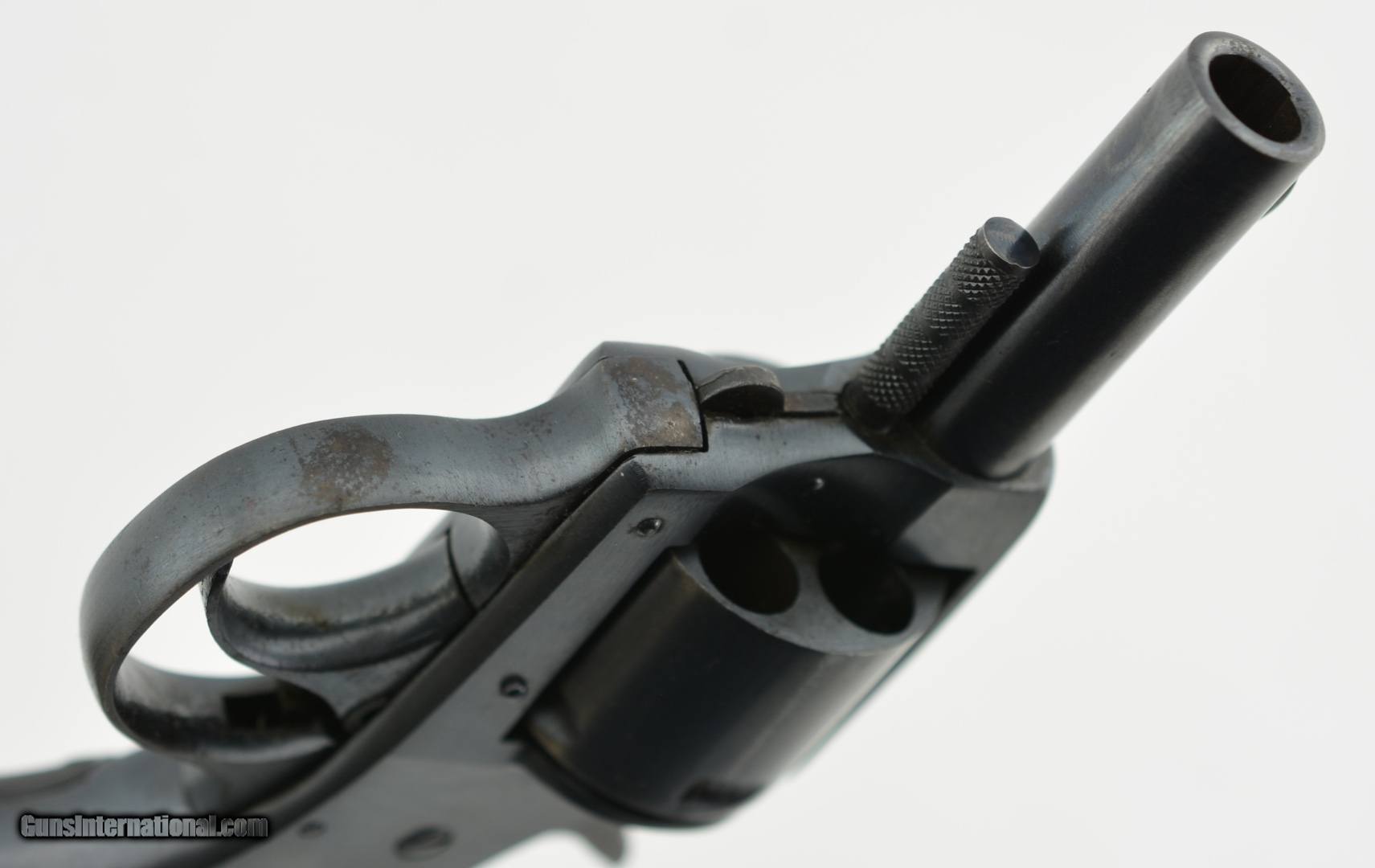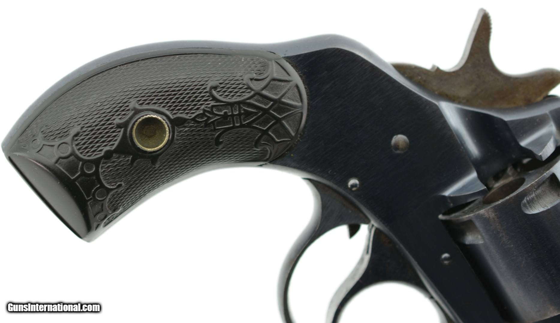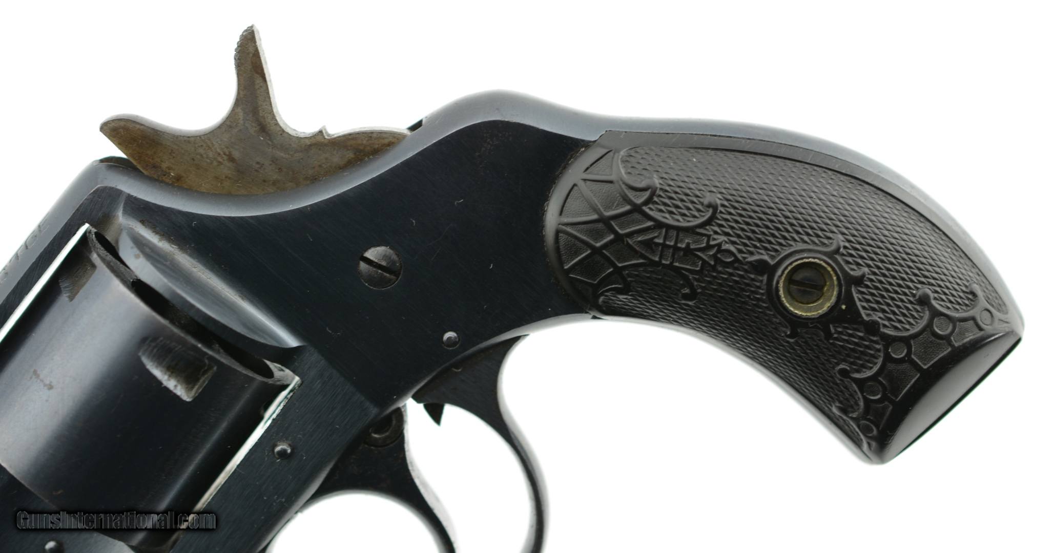 Description: Serial #117677, 32 S&W, 2" round barrel with a bright, excellent bore. This is a late model, medium frame, Victor revolver manufactured by Harrington & Richardson from approximately 1913 to 1936. Most often encountered with nickel finish this scarce blued example is in excellent condition retaining about 97-98% of the original bright blue finish showing some faint thinning and a few freckles on the cylinder, and the triggerguard and backstrap. The hammer shows smoky case-hardened colors and the markings remain crisp. The black checkered hard rubber crown motif grips remain in excellent condition and are numbered to the gun. The butt is marked with "H. & R Arms Co. / Worcester. Mass. U.S.A." with the serial number on the inside of the grip strap and on the inside frame under the grip. Single action does not currently hold but the double action seems to function well mechanically with very good timing and lock-up. An excellent example of this little pistol. FFL or C&R; SOLD |