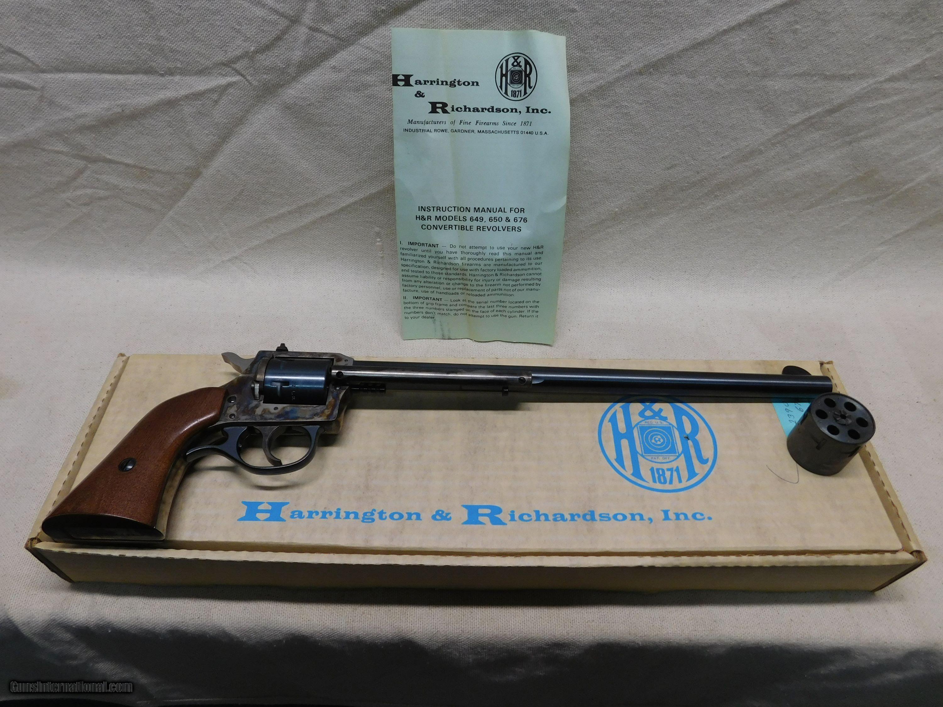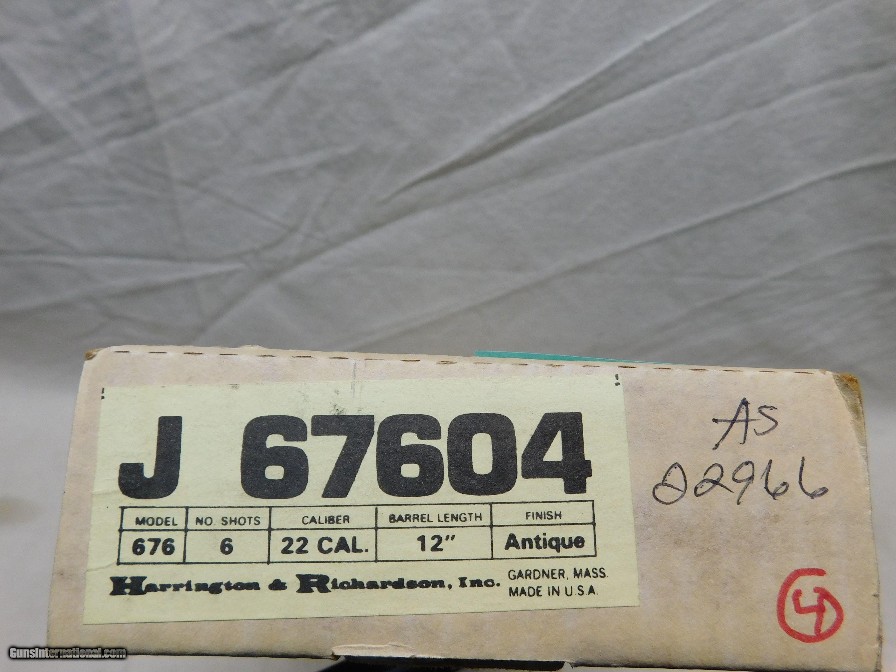 Description: H& R 676 Revolver, 22 Combo,12" Barrel,Antique CC Finish, NEW UNFIRED in ORIGINAL BOX with MANUAL, Beautiful GUN! Store Hours Thurs- Fri -10AM-8PM Sat-9AM-12PM All Otherr Times Please Leave a Message, Thank You! No California Sales Lower 48 State Sales Only Shipping $ 35.00 SOLD Manufacturer: H & R Model: Model 676 Serial Number: AS22966 Caliber Info: 22 Combo |